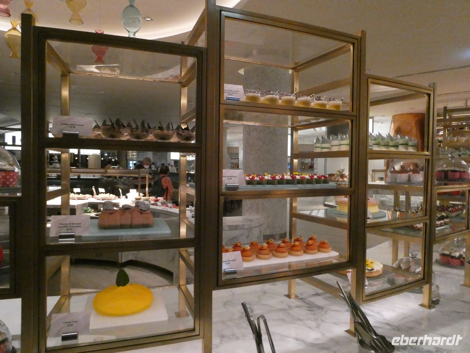 Die Gruppe trifft sich dann am frühen Nachmittag, um einem weiteren Höhepunkt entgegenzusehen: der „Teestunde“ im Emirates Palace, welches wohl eines der luxuriösesten Hotels der Welt ist. Viel Gold und traditionelle Gediegenheit erwartet uns in diesem Prachtbau. Diskretion ist Ehrensache, neugierige Fotografen wünscht man sich hier nicht. Gold bestimmt denn auch unser Nachmittagsmahl. Was auf Etageren gereicht wird und eigentlich für mehrere Personen reichen würde (unter Normalbedingungen) ist für eine Person bestimmt. Da wir das schon ahnten haben die meisten von uns heute Mittag nichts gegessen. Das entpuppt sich als weise Entscheidung. Salziges und Süßes wird von uns brav abgearbeitet wobei so mancher an seine Aufnahmekapazität gelangt. Wenn wir jetzt schon wüssten, dass uns heute Abend noch ein üppiges arabisches Abendessen erwartet, würden wir uns ein wenig zurückhalten……aber so …… treffen wir uns ziemlich gesättigt zur Abfahrt vor dem Hotel.