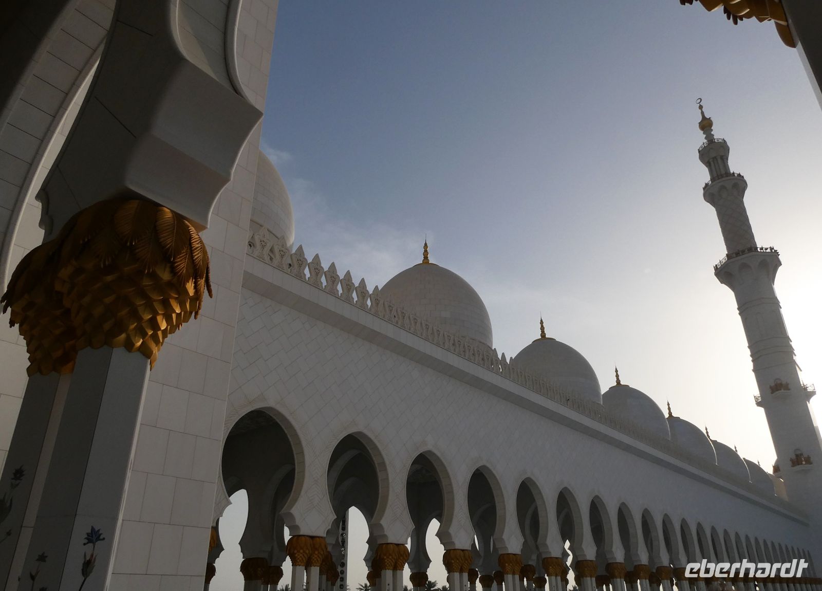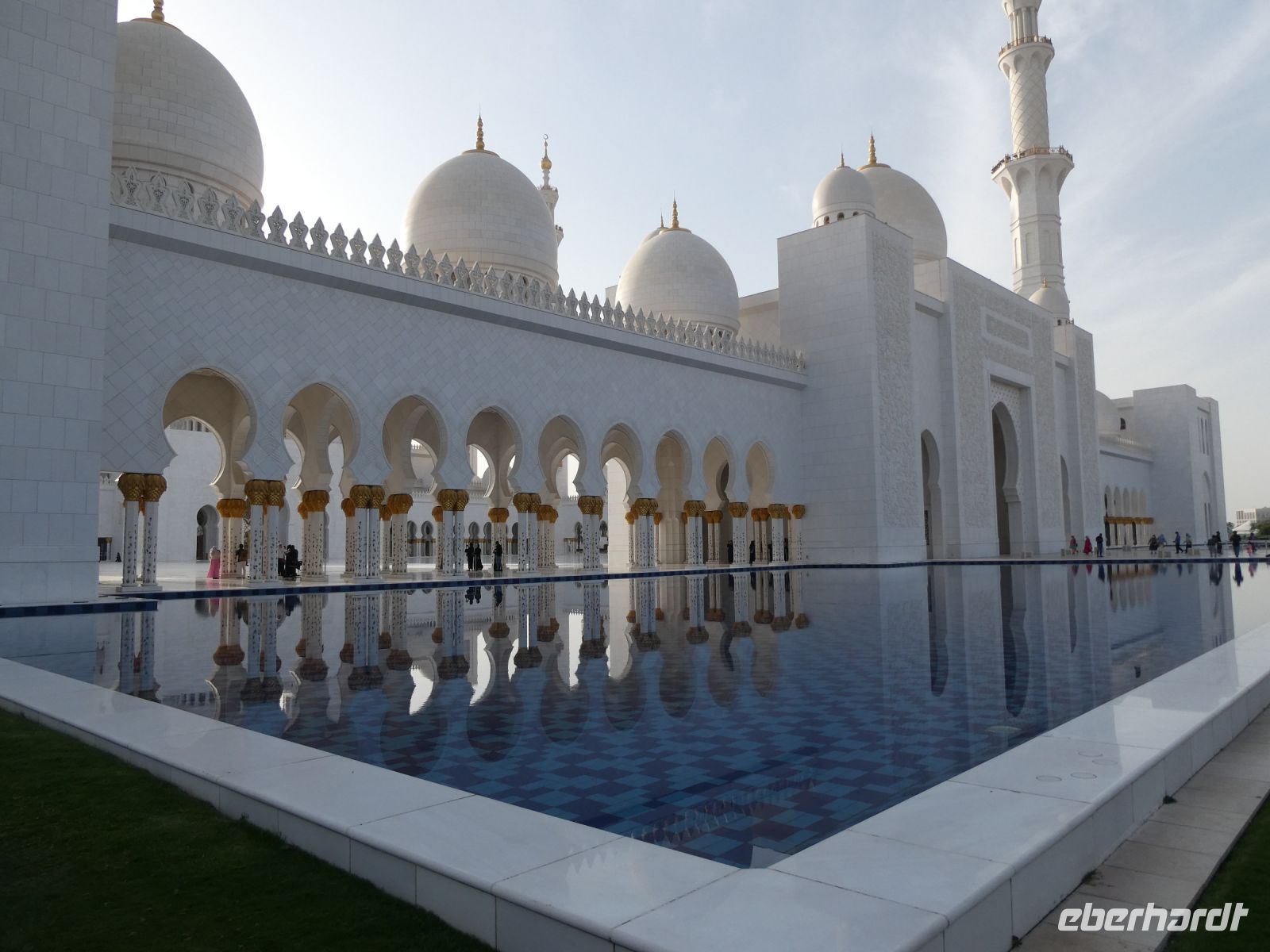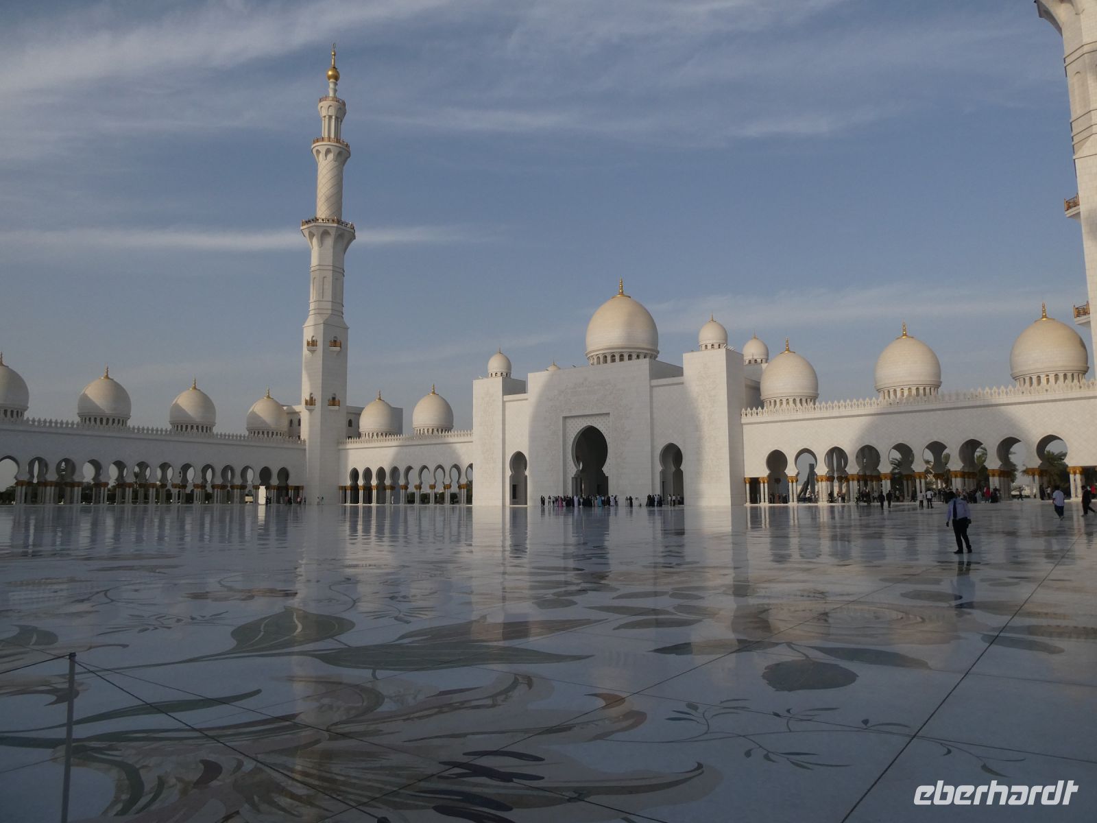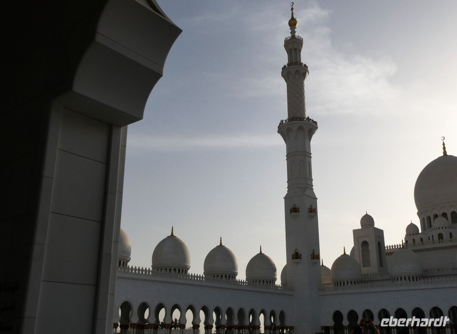 Abu Dhabi hat sich in den letzten Jahren große Mühe gegeben, dem Emirat Dubai einige Attraktionen entgegenzusetzen. Dazu gehört auch der Bau einer neuen großen Moschee. Sie ist benannt nach dem ersten Präsidenten der VAE "Emir Zayid bin Sultan Al Nahyan". Das Grundstück auf dem sie sich befindet ist ca. 56 Hektar groß. 2007 im Ramadan, dem Fastenmonat der Muslime, wurde die Moschee offiziell eröffnet.