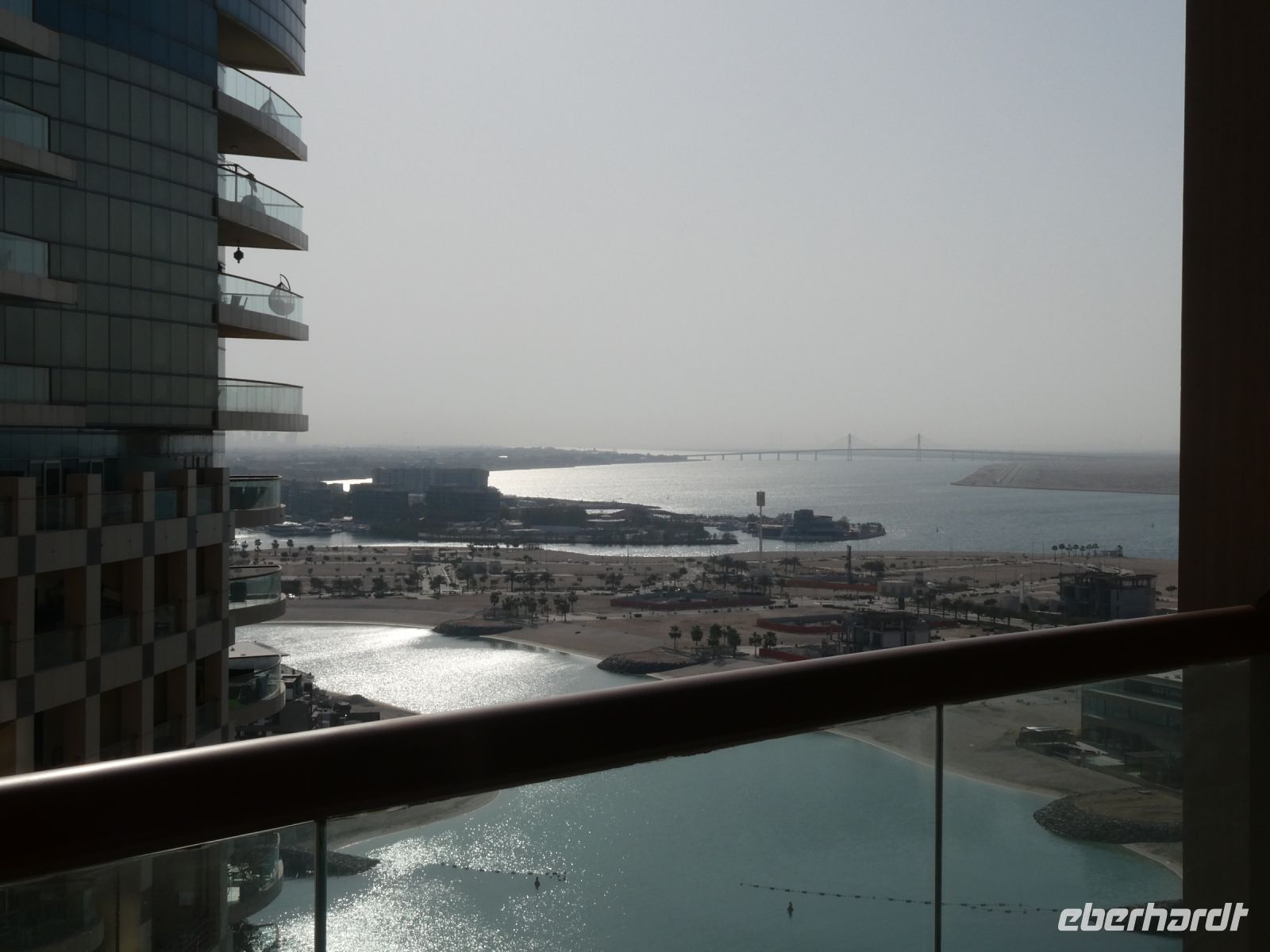 Wir wohnen in unterschiedlichen Stockwerken. Die meisten von uns schauen auf die aufgeschüttete Insel "Blue Water Island" mit dem größten Riesenrad der Welt: "Ain Dubai". Mit ihm wollen wir auch eine Fahrt unternehmen - jedenfalls steht das in unserem Programm.