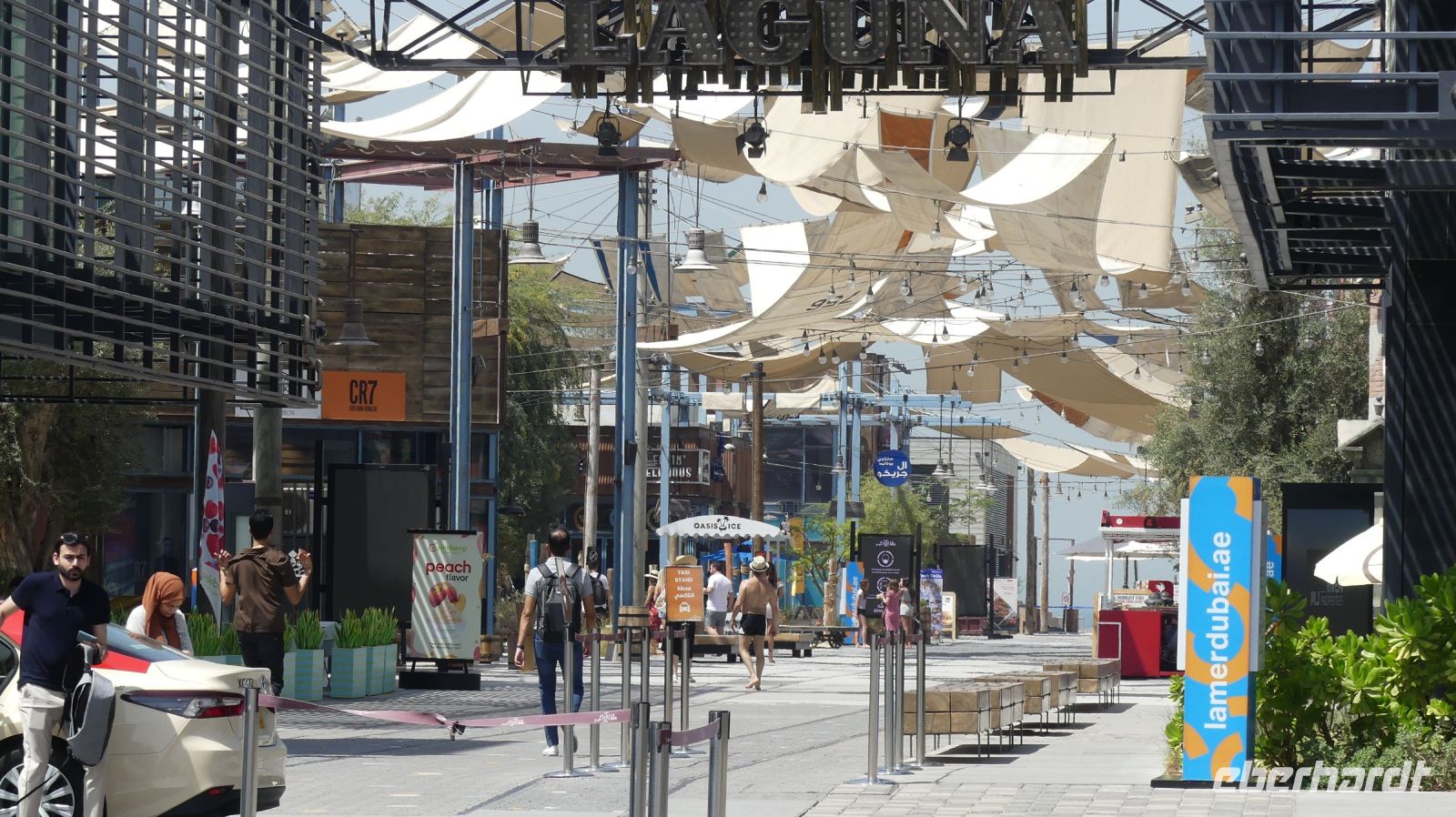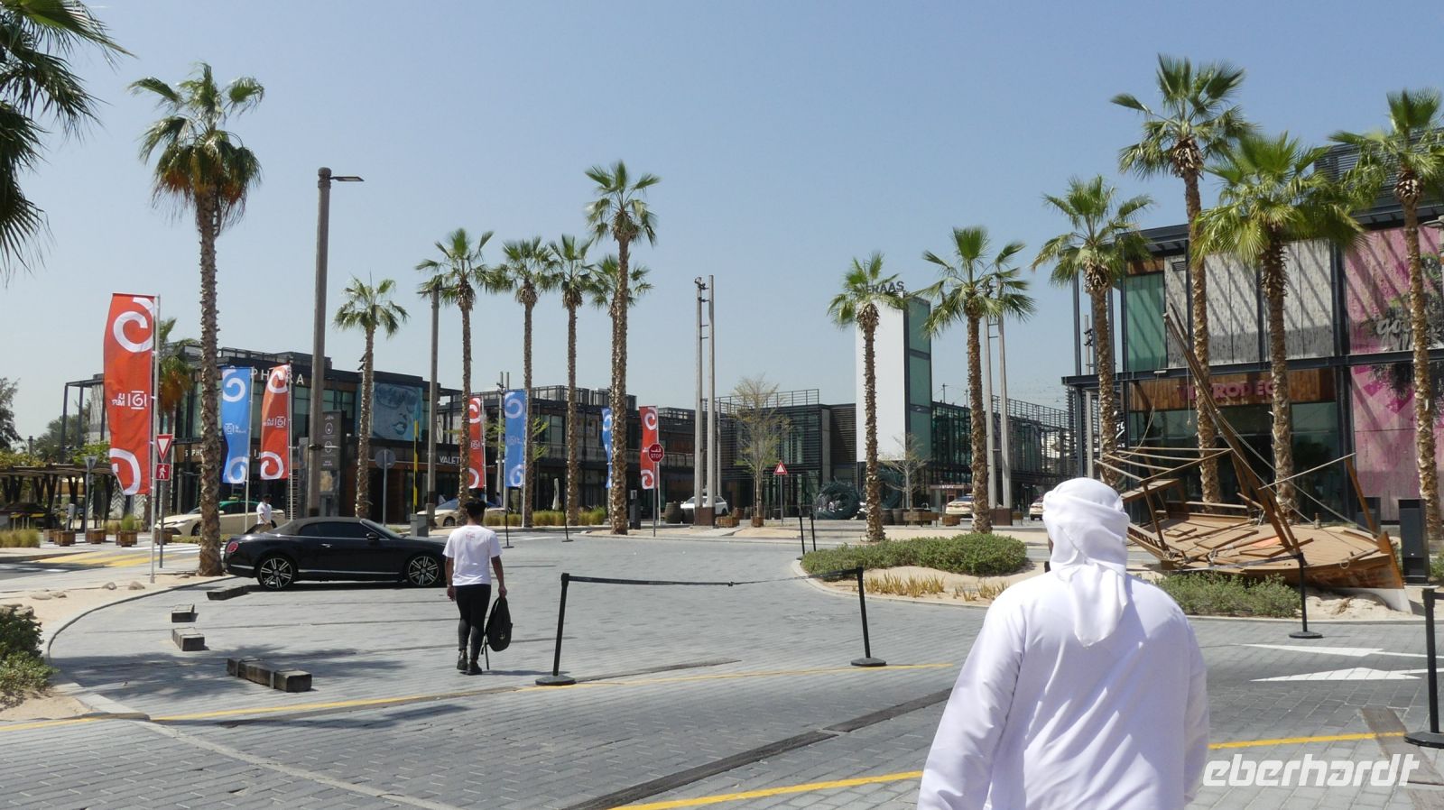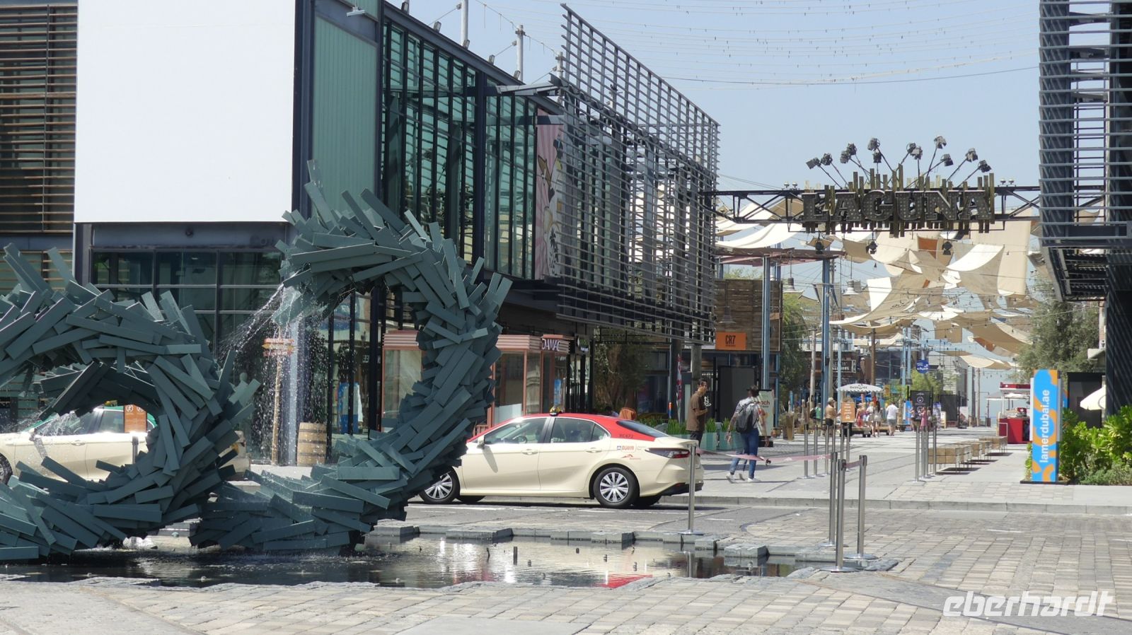 Der Rest des Tages gehört der EXPO 2020. Mit einigen Gästen verschaffen wir uns mit der Aussichtsplattform „Garden in the Sky“ einen ersten Überblick über das Ausstellungsgelände. Die erste Orientierung ist insofern etwas schwierig, weil die Länderpavillons erstmals bei einer Weltausstellung nicht nach ihrer geographischen Lage angeordnet sind, sondern einem der drei Themen Nachhaltigkeit, Mobilität oder Möglichkeiten zugeordnet sind. Dreh- und Angelpunkt für unsere EXPO-Aufenthalte wird der deutsche Pavillon. Der German Campus, wie er richtig heisst, gehört zu den interessantesten und damit beliebtesten Pavillons. Heute zum Sonntag* sind besonders viele Besucher anzutreffen, so dass es besser ist, beliebte Pavillons zu meiden, sich auf die erste Orientierung zu konzentrieren, vorzugsweise kleinere Länderpavillons zu besichtigen und leicht zugängliche Attraktionen wie die „Water Features“ (Wasserfall), den Al Wasl Dome, Parks oder Pavillons von außen (z. B. Saudi Arabien) zu besichtigen. Auch eine Entdeckungstour in den schmalen Nebengassen mit Kleinbühnen und kleinen Länderpavillons lohnt sich. So kann man nach dem ersten Orientierungstag schon mal planen, was man sich die nächsten Tage anschaut.