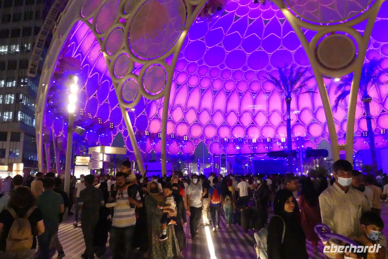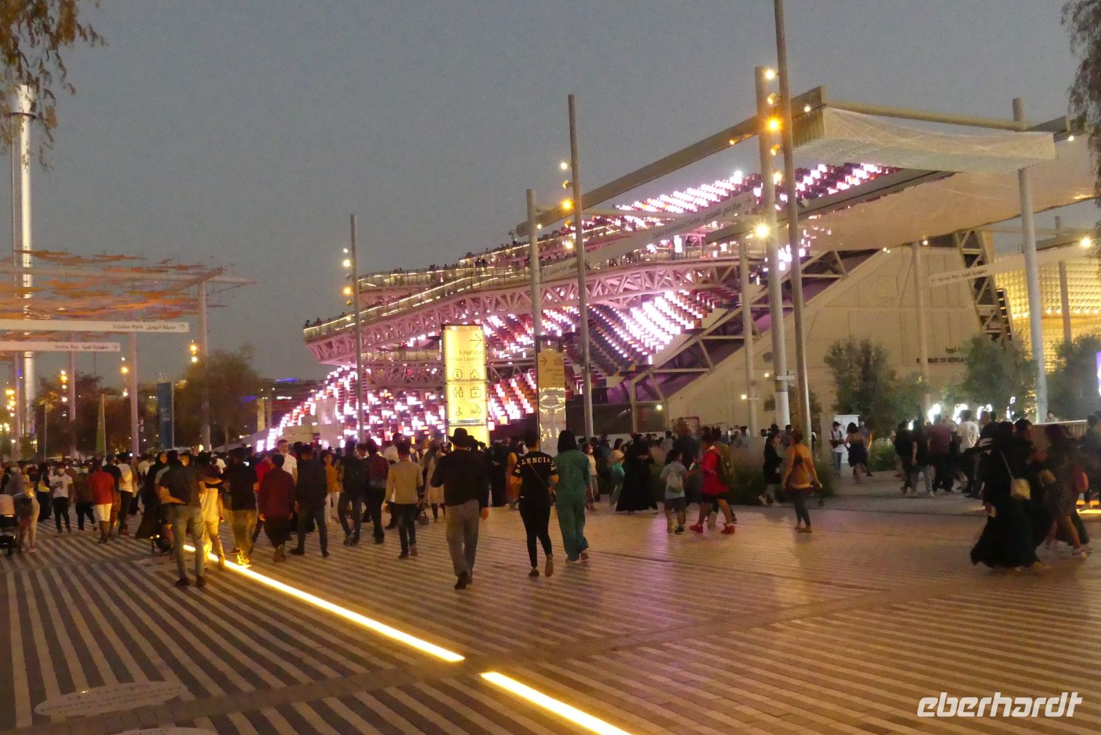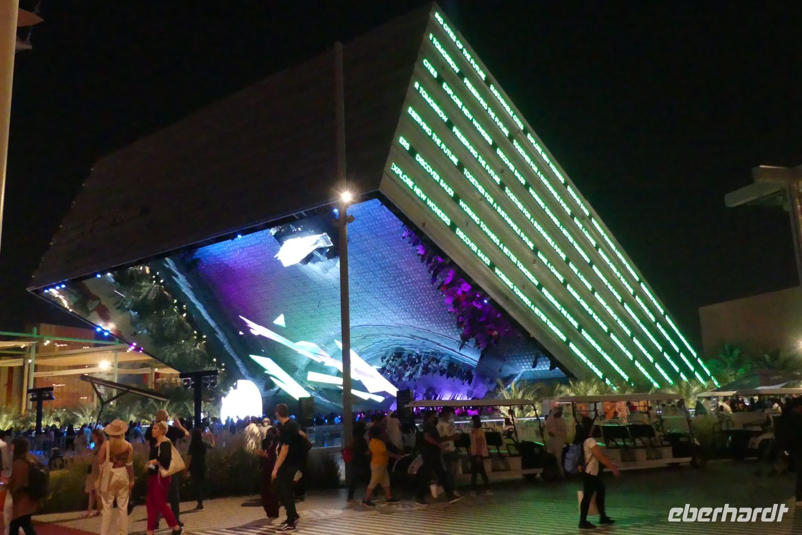 Am Abend zieht es mich wieder ins EXPO-Zentrum, zum „Al Wasl“ Dome. Dieser ist sowohl am Tag als auch am Abend Ort verschiedener Aufführungen mit Liveauftritten oder Multimediashows.