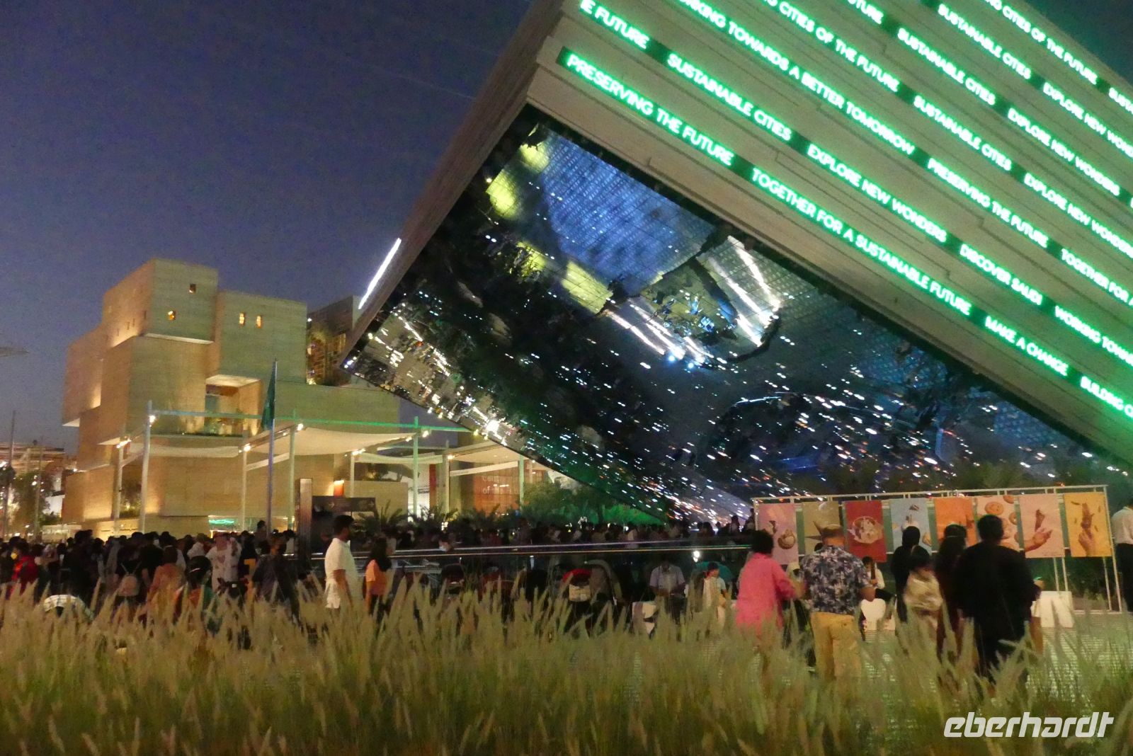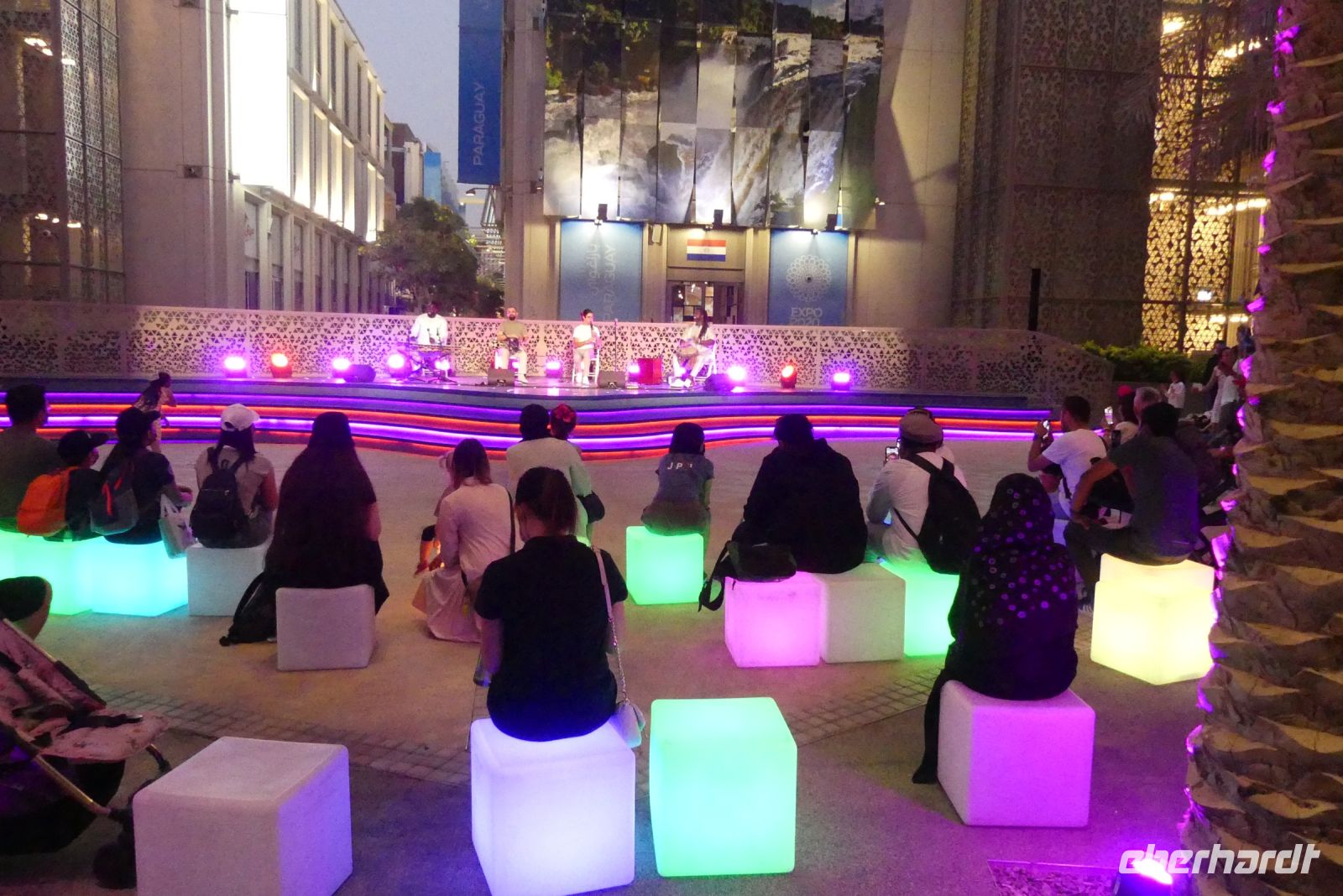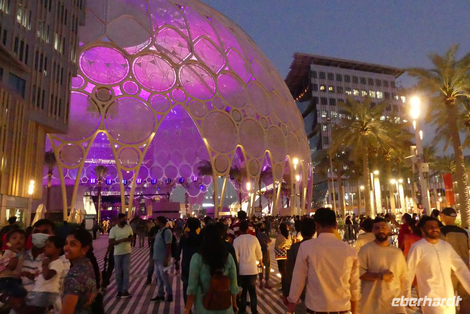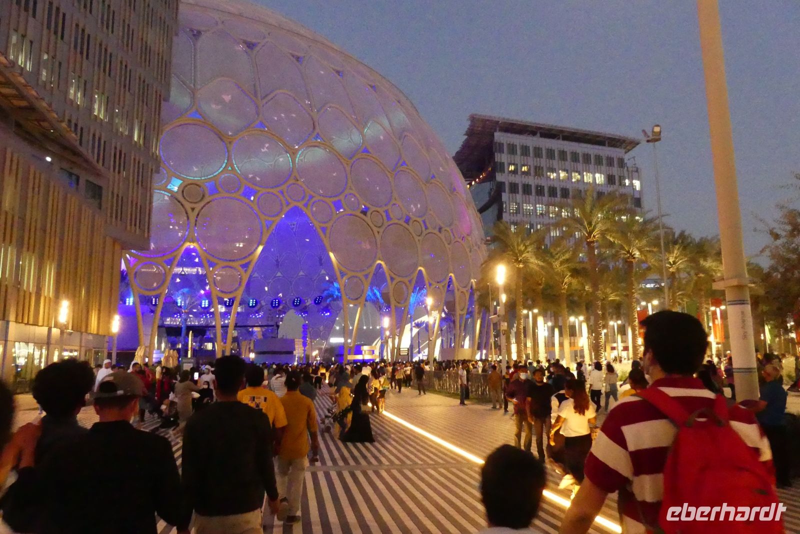 Am Abend zieht es mich wieder ins EXPO-Zentrum, zum „Al Wasl“ Dome. Dieser ist sowohl am Tag als auch am Abend Ort verschiedener Aufführungen mit Liveauftritten oder Multimediashows.