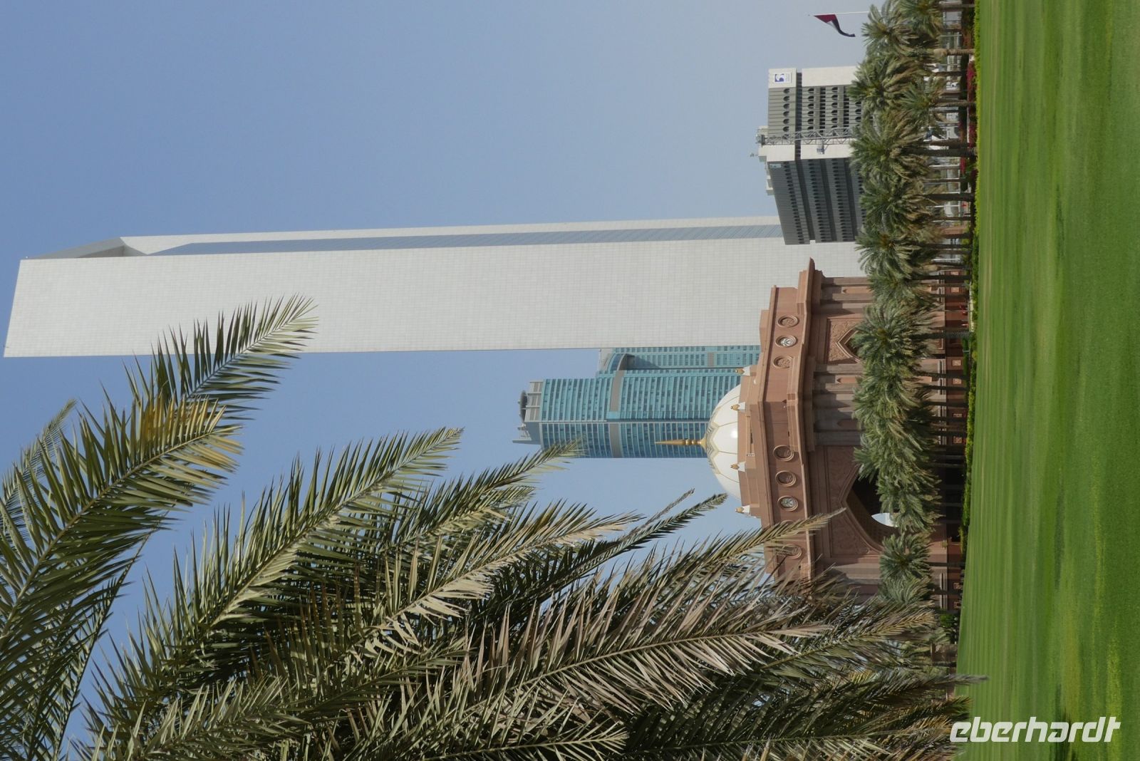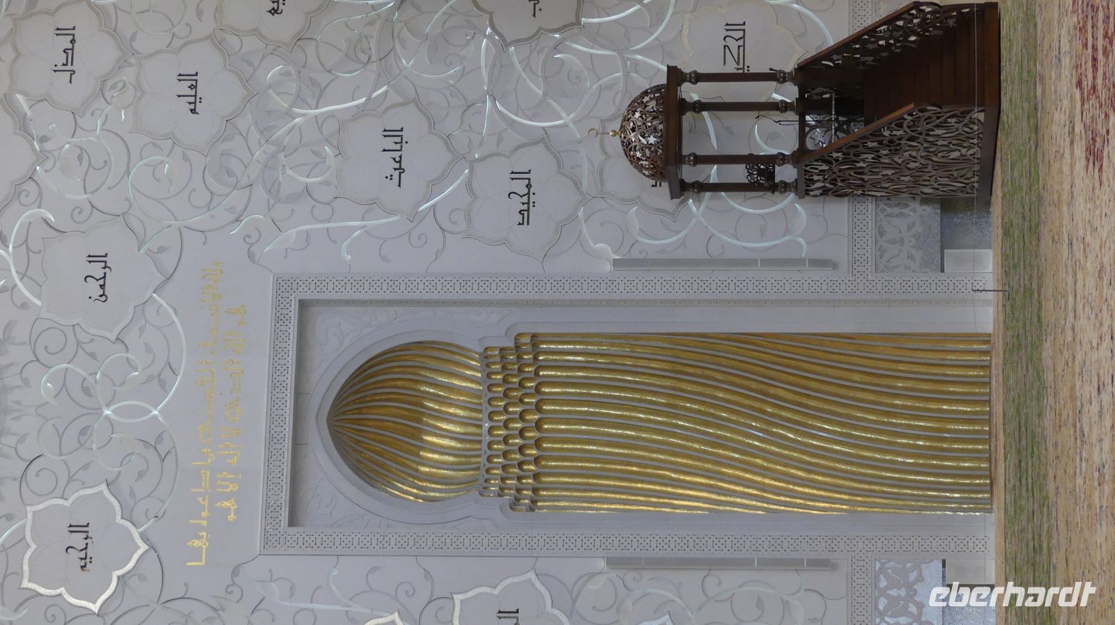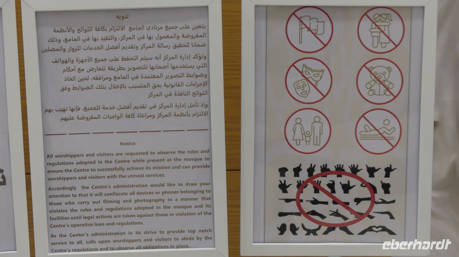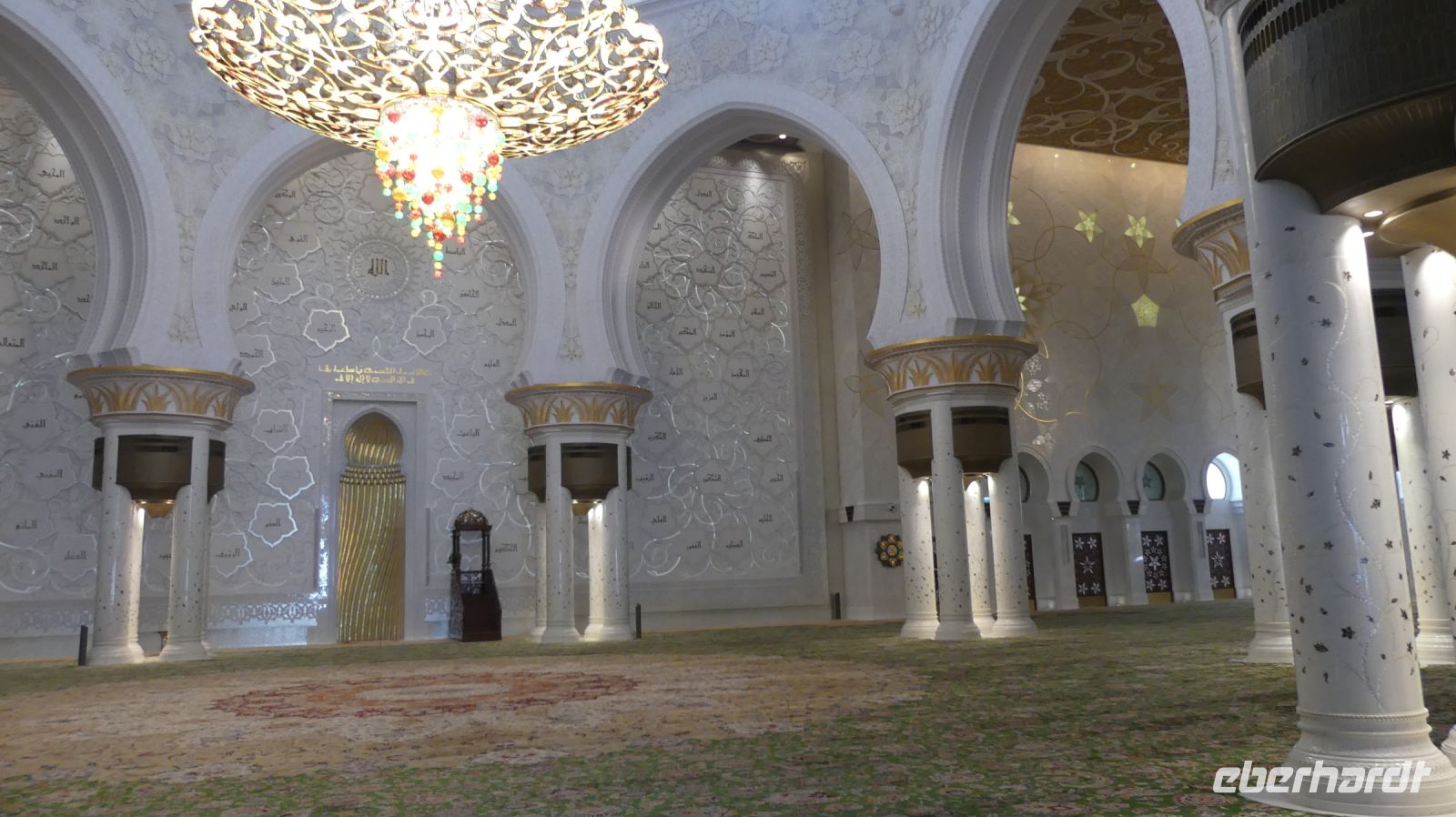 Nach unserem Aufenthalt im Emirates Palace fahren wir zur Großen Shaikh Zayed Moschee, die zu den bekanntesten Sehenswürdigkeit von Abu Dhabi zählt. Auf dem Weg dahin passieren wir den schiefen Turm von Abu Dhabi, eigentlich heißt er Capital Gate Tower. An der Moschee angekommen, müssen alle Frauen ihre Reize zu bedecken, also Kopftuch aufsetzen und lange Kleidung anlegen. Die Moschee gehört mit Platz für 40.000 bis 50.000 Muslime zu den weltgrößten Moscheen. Die Freitagsmoschee mit ihren 82 Kuppeln strahlt im weißen italienischen Marmor. Nachdem vor einigen Wochen sich ein Tourist aus Israel mit einer Regenbogenfahne vor der Moschee fotografiert und diese Bilder in sozialen Netzwerken online gestellt hatte, haben die hiesigen Behörden neue, m. E. völlig überzogene Regeln eingeführt: dazu zählt zum Beispiel, dass jegliche Handzeichen auf Fotos verboten sind. An den neuerdings eingerichteten „Fotopoints“ sollen jetzt Sicherheitskräfte kontrollieren, dass nur „anständige“ Fotos gemacht werden. Schade, aber dennoch eine sehr sehenswerte Moschee.