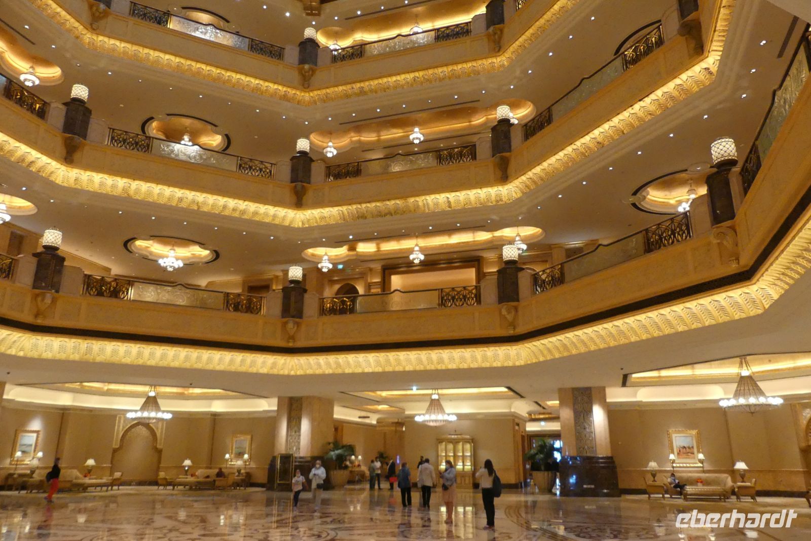 Mittags treffen wir uns und laufen zum gegenüber liegenden Emirates Palace, um dort zur „Tea Time“ einzukehren. Nach Vorlage von Impfnachweis und PCR-Test können wir das berühmte Hotel betreten. Im luxuriösen Ambiente genießen wir unseren mit Blattgold verzierten Kaffee, dazu gibt es herzhafte und süße Leckereien.