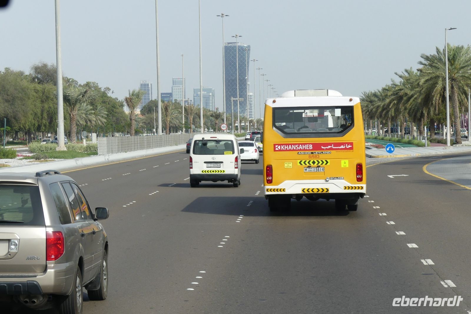 Am Morgen verlassen wir Dubai Richtung Abu Dhabi. Die Busfahrt bietet eine gute Gelegenheit, um sich über Themen wie Gastarbeiter, Steuern, Rente, Scharia…auszutauschen. Die Arbeits- und Lebensbedingungen von Gastarbeitern in den Golfstaaten werden bei uns in Deutschland immer wieder kritisiert. Ich frage mich nur, wie gründlich Journalisten eigentlich recherchieren und warum sie kaum zwischen den Ländern differenzieren? Wie auch immer, Ibrahim hat für uns zu diesem Thema viele interessante Informationen, die so bei uns gar nicht ohne weiteres erhältlich sind. So kann sich jeder seine eigene Meinung bilden.