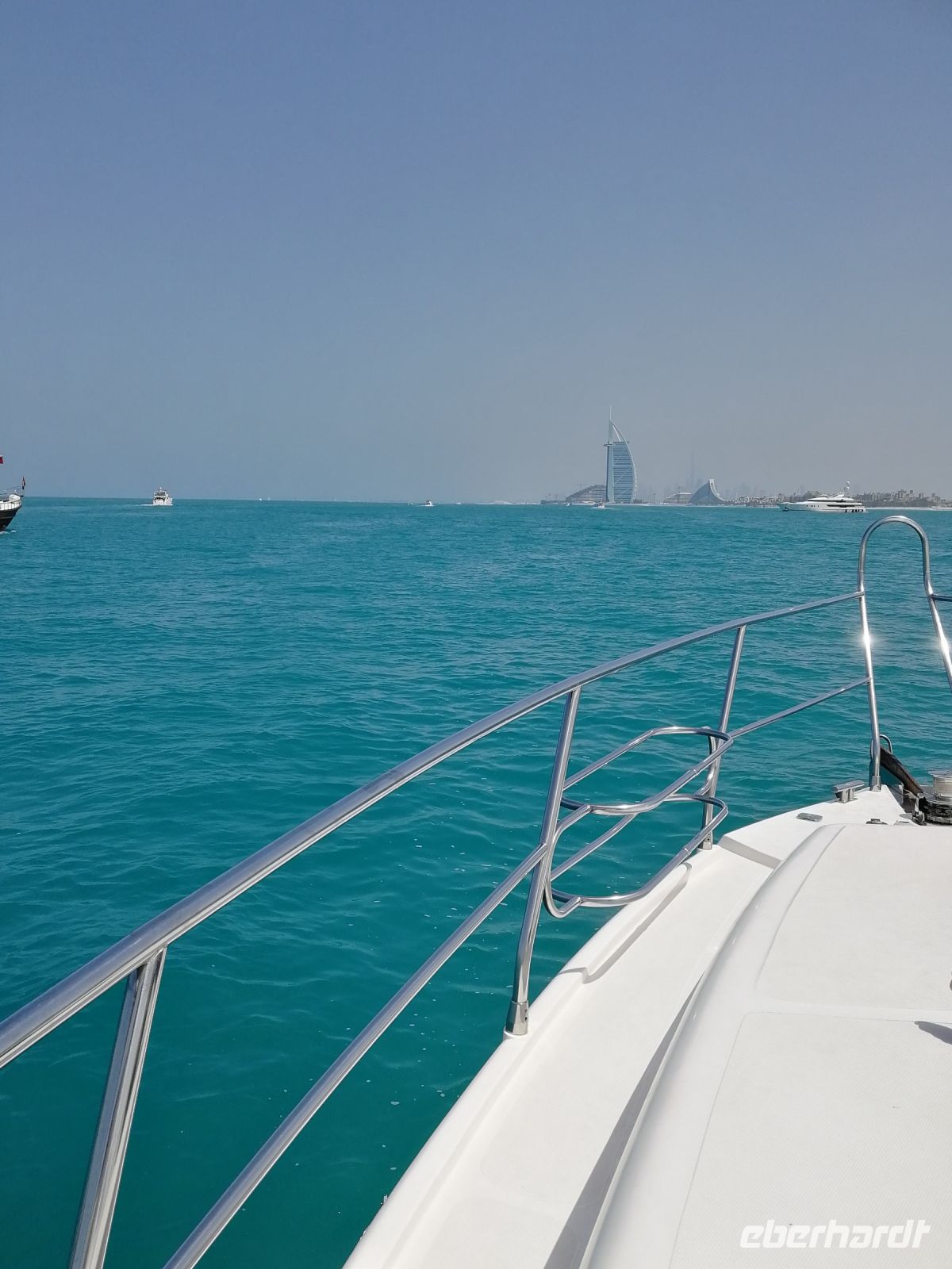 Am heutigen Sonntag beginnt unser Programm mit einem Ausflug auf einer privaten Yacht durch Dubai Downtown und weiter bis zum Luxushotel Burj Al Arab. Mit einer Höhe von über 321 Metern ist es eines der höchsten Hotelgebäude der Welt und ein Wahrzeichen der Metropole Dubai. Wir können uns während der Fahrt einen guten Überblick über die Stadt und die bekannten (neuen) Sehenswürdigkeiten skizzieren. Wieder an der Marina Mall angekommen bestand etwas Zeit für den ersten Geldtausch in Dirham. Diese Währung existiert auch in anderen arabischen Staaten wie Marokko, Libyen, Katar oder im Sudan. Anschließend führte uns Ibrahim, unser Reiseleiter, in den Souk Madinat Jumeirah, welcher eine moderne Nachbildung eines traditionellen arabischen Souks darstellt. Am Nachmittag geht es weiter zur Weltausstellung EXPO. Unter dem Motto Connecting Minds, Creating the Future (zu Deutsch: Köpfe verbinden, die Zukunft schaffen) präsentierten über 192 Nationen die Errungenschaften und Ziele von nachhaltigen Wirtschaften, modernster Mobilität und Chancen für die Zukunft. Zum ersten Mal in der Geschichte der EXPO Weltausstellung findet diese in einem arabischen Land statt. Im Vergleich zu den anderen EXPOs der vergangenen Jahre soll diese eine universelle Ausrichtung einnehmen. Jedes Land hat seinen eigenen Pavillon. Nach der EXPO wird dieser Bezirk ein eigener Stadtteil, EXPO 2020. Das Areal der Ausstellung umfasst 438 Hektar zwischen den Städten Dubai und Abu Dhabi. Bereits 2011 begann die Auswahl des Austragungsortes. Dabei stand Dubai im Wettbewerb mit Sao Paulo (Brasilien), Izmir (Türkei) und Jekaterinburg (Russland).