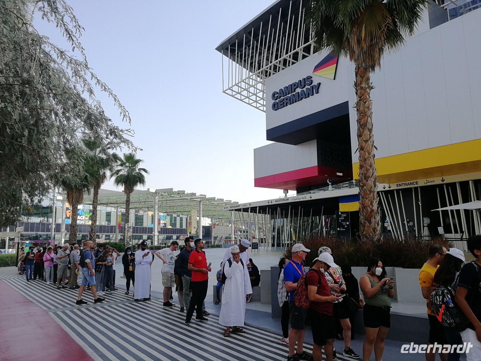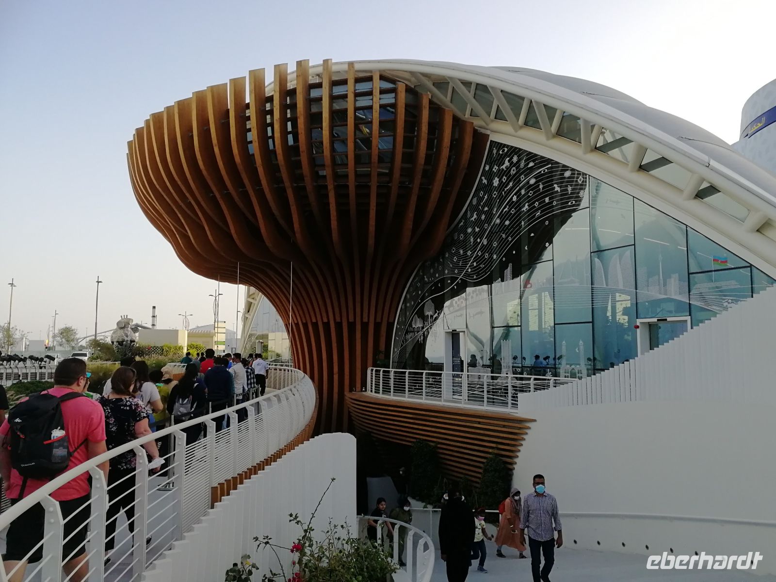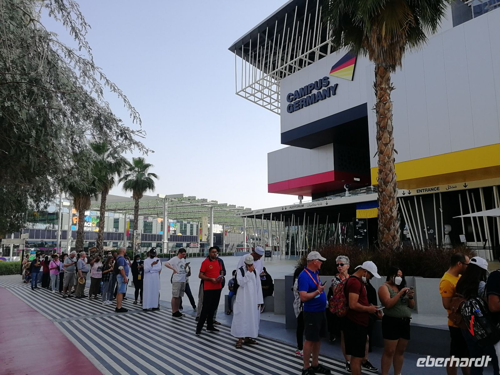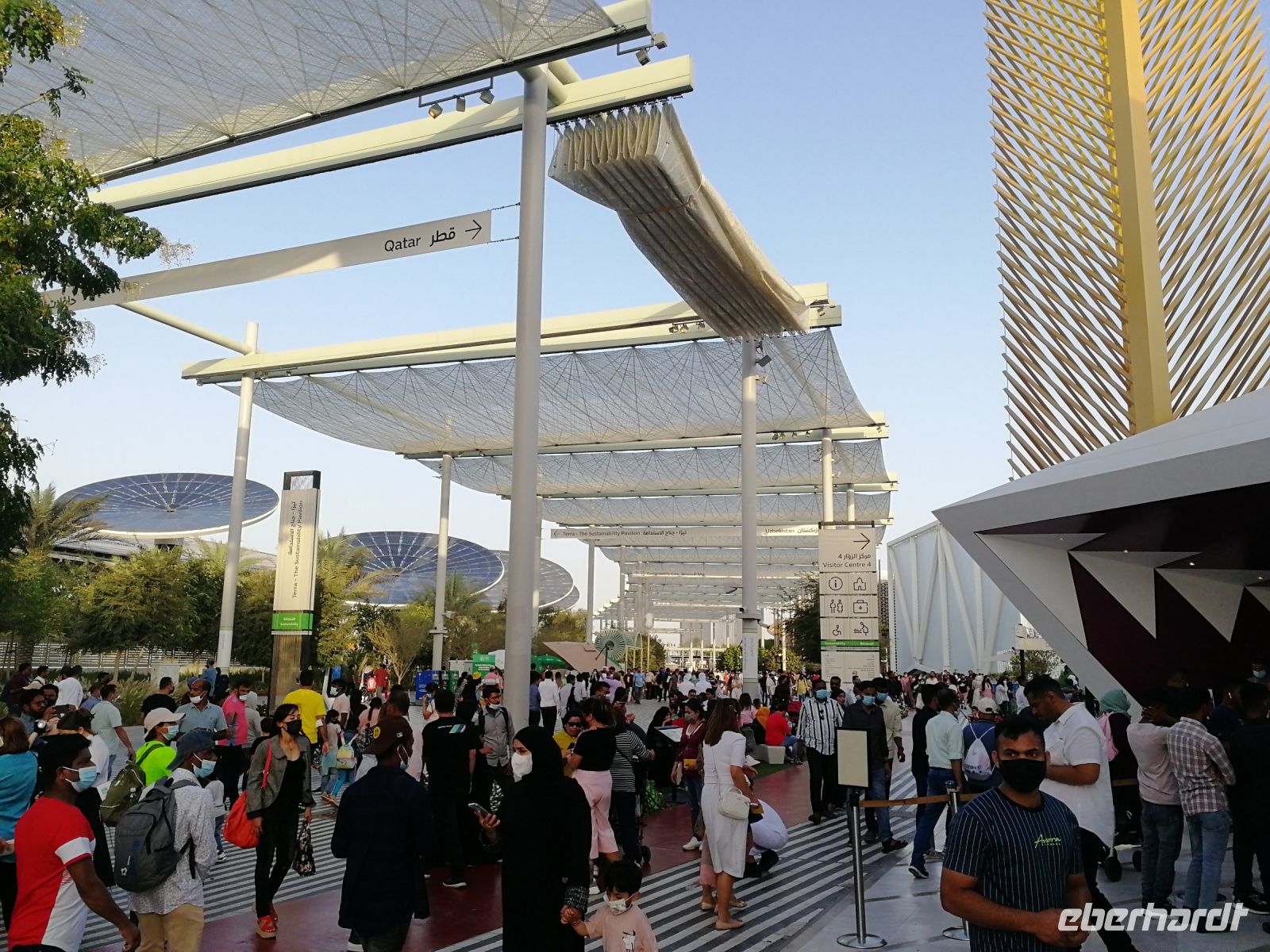 Der heutige Tag führte uns erneut auf die EXPO. Nachdem Motto: Der frühe Vogel fängt den Wurm, begannen wir unser Tagesprogramm auf vier Rädern bereits kurz nach 8 Uhr mit dem Ziel, den Deutschland Campus zu besuchen. Eine kurze Warteschlange und wir waren drin: im Pavillon unseres Heimatlandes. Interaktiv und anschaulich wurde der aktuelle Status Quo der neuen wissenschaftlichen Erkenntnisse zu erneuerbaren Energien und laufenden Forschungsprojekten zu futuristischer Mobilität, Energieerzeugung, Ressourcenschonung und weiteren globalen Trendthemen den Besuchern der EXPO vor die Augen geführt. Die hohe Nachfrage vor dem Deutschen Pavillon bestätigt das exzellente Image in allen Teilquellmärkten der Welt, unter anderem bedeutend für das Deutschland Incoming. Der Deutsche Pavillon ist im Sustainability District angesiedelt. Und umfasst Themenbereiche wie das Energielabor, das Labor der Stadt der Zukunft und das Labor der biologischen Vielfalt. Studierende der Köln Messe haben unser Land vertreten. Schön, wenn junge Menschen unser Land repräsentieren! Einige Studierende gaben mir besondere Einblicke zur Nachfrage des Standes wie auch spannende Erklärungen zu den gegenwärtigen Megatrends und Leitthemen des Deutschland Pavillons. Jeder von uns konnte am Vormittag bis in den Mittag hinein seine bevorzugten Länder- oder Themenpavillons besichtigen. Jedes Land hatte seine eigenen Reize und kreative Projektideen.
