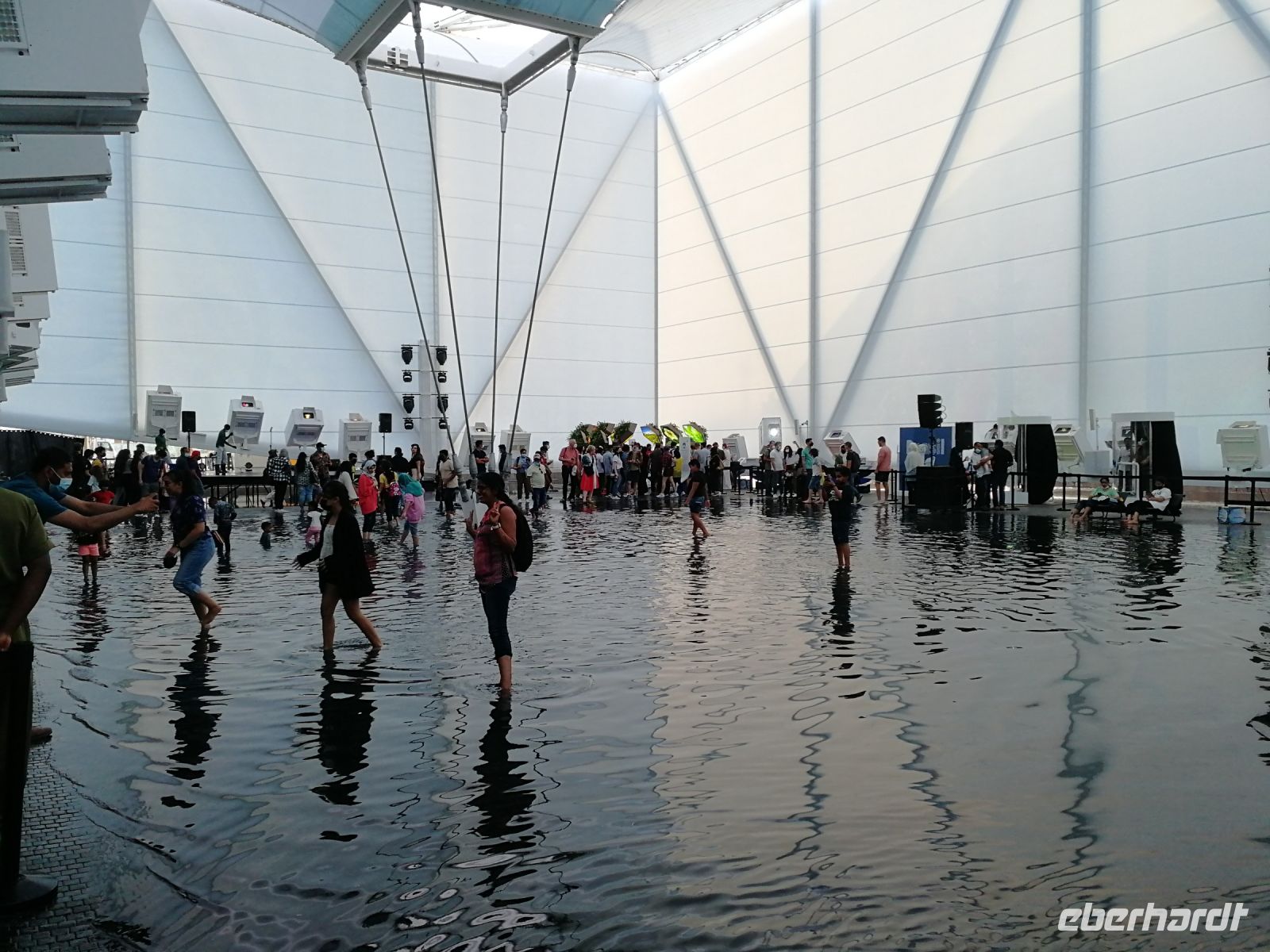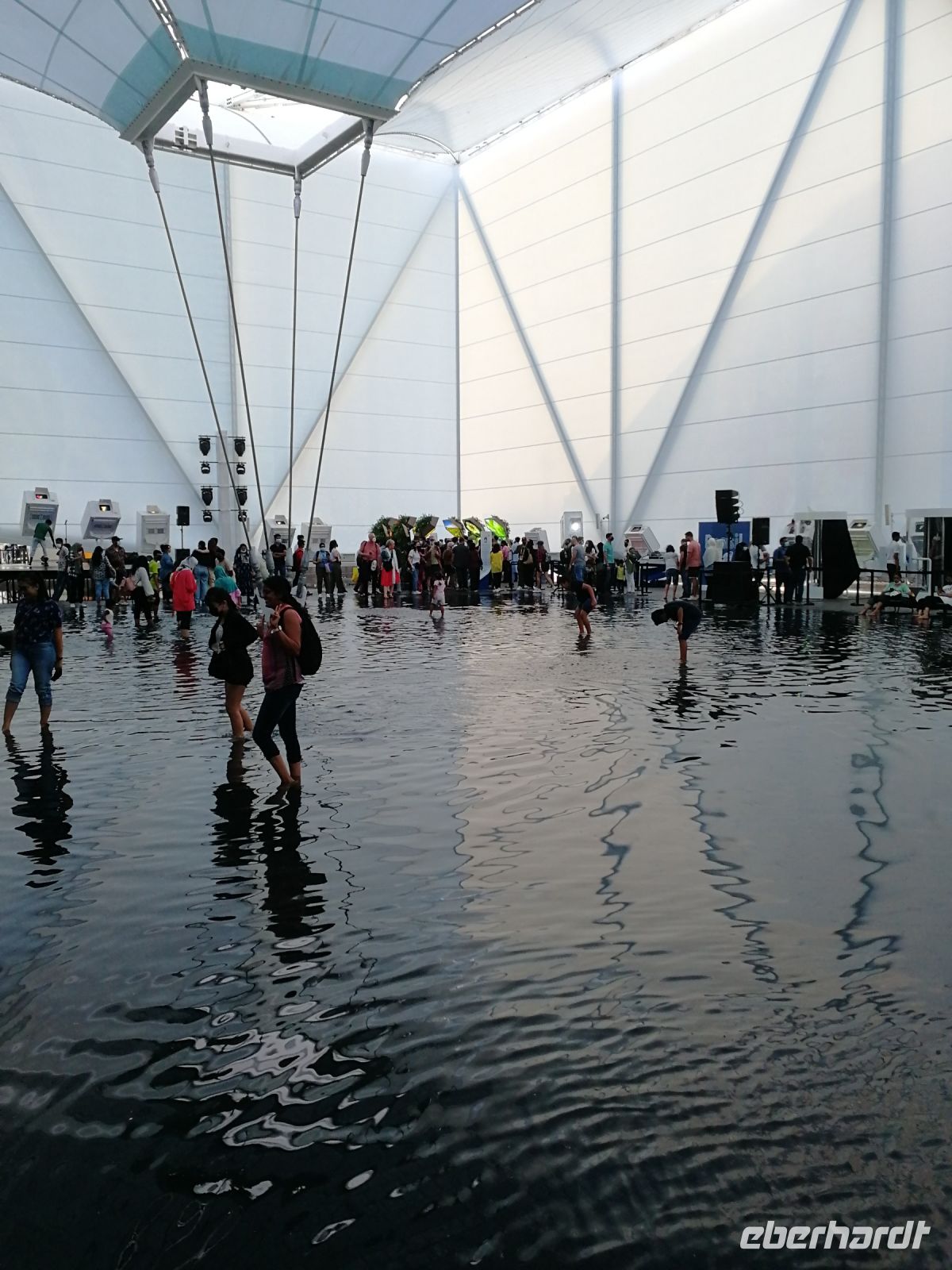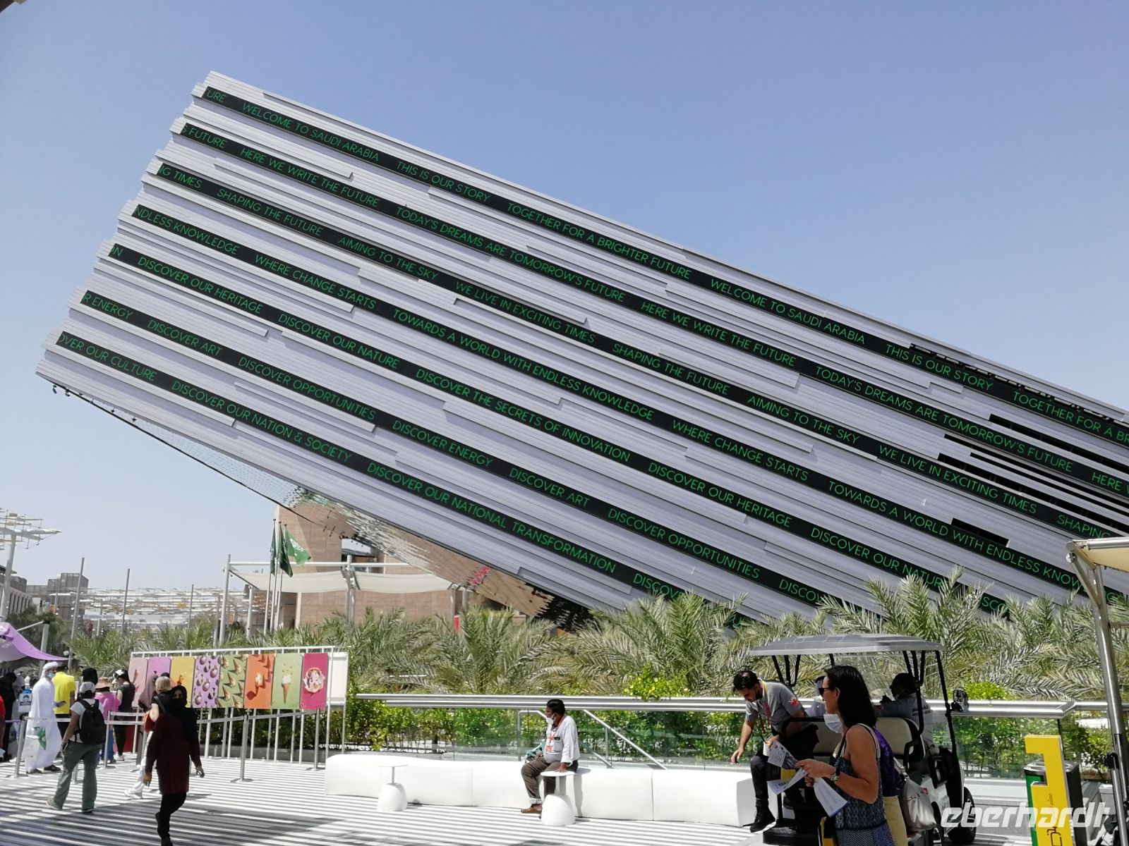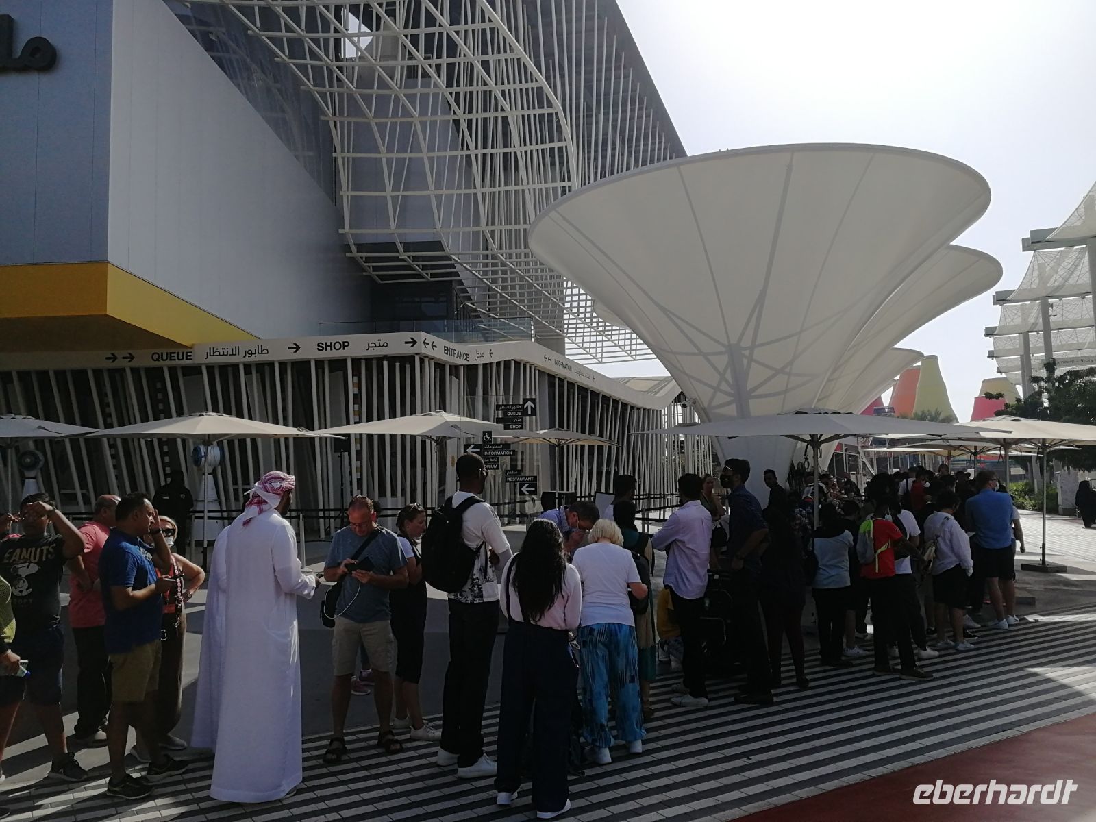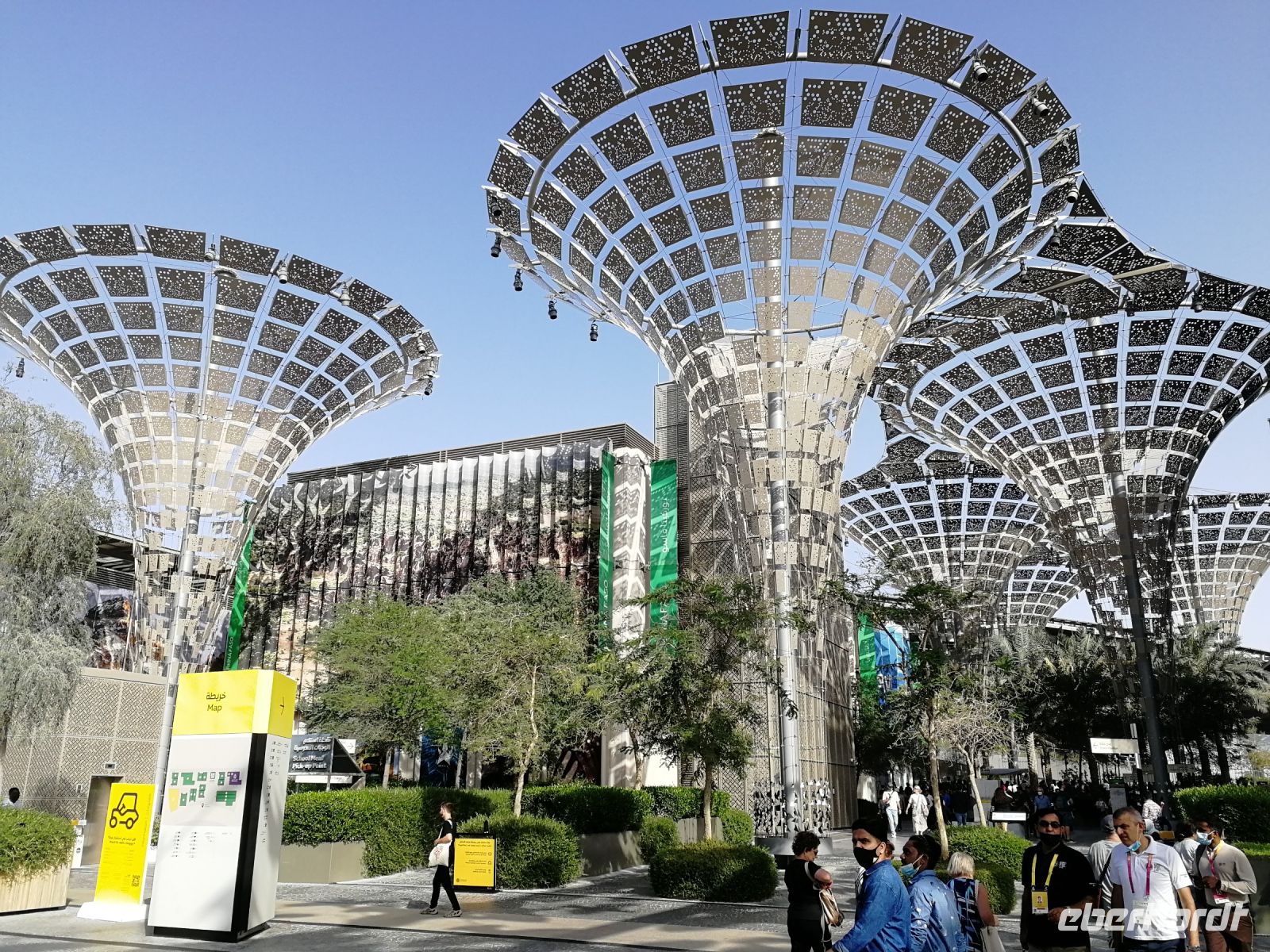 Der heutige Tag führte uns erneut auf die EXPO. Nachdem Motto: Der frühe Vogel fängt den Wurm, begannen wir unser Tagesprogramm auf vier Rädern bereits kurz nach 8 Uhr mit dem Ziel, den Deutschland Campus zu besuchen. Eine kurze Warteschlange und wir waren drin: im Pavillon unseres Heimatlandes. Interaktiv und anschaulich wurde der aktuelle Status Quo der neuen wissenschaftlichen Erkenntnisse zu erneuerbaren Energien und laufenden Forschungsprojekten zu futuristischer Mobilität, Energieerzeugung, Ressourcenschonung und weiteren globalen Trendthemen den Besuchern der EXPO vor die Augen geführt. Die hohe Nachfrage vor dem Deutschen Pavillon bestätigt das exzellente Image in allen Teilquellmärkten der Welt, unter anderem bedeutend für das Deutschland Incoming. Der Deutsche Pavillon ist im Sustainability District angesiedelt. Und umfasst Themenbereiche wie das Energielabor, das Labor der Stadt der Zukunft und das Labor der biologischen Vielfalt. Studierende der Köln Messe haben unser Land vertreten. Schön, wenn junge Menschen unser Land repräsentieren! Einige Studierende gaben mir besondere Einblicke zur Nachfrage des Standes wie auch spannende Erklärungen zu den gegenwärtigen Megatrends und Leitthemen des Deutschland Pavillons. Jeder von uns konnte am Vormittag bis in den Mittag hinein seine bevorzugten Länder- oder Themenpavillons besichtigen. Jedes Land hatte seine eigenen Reize und kreative Projektideen.