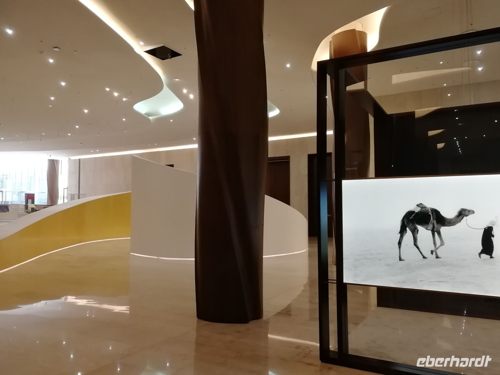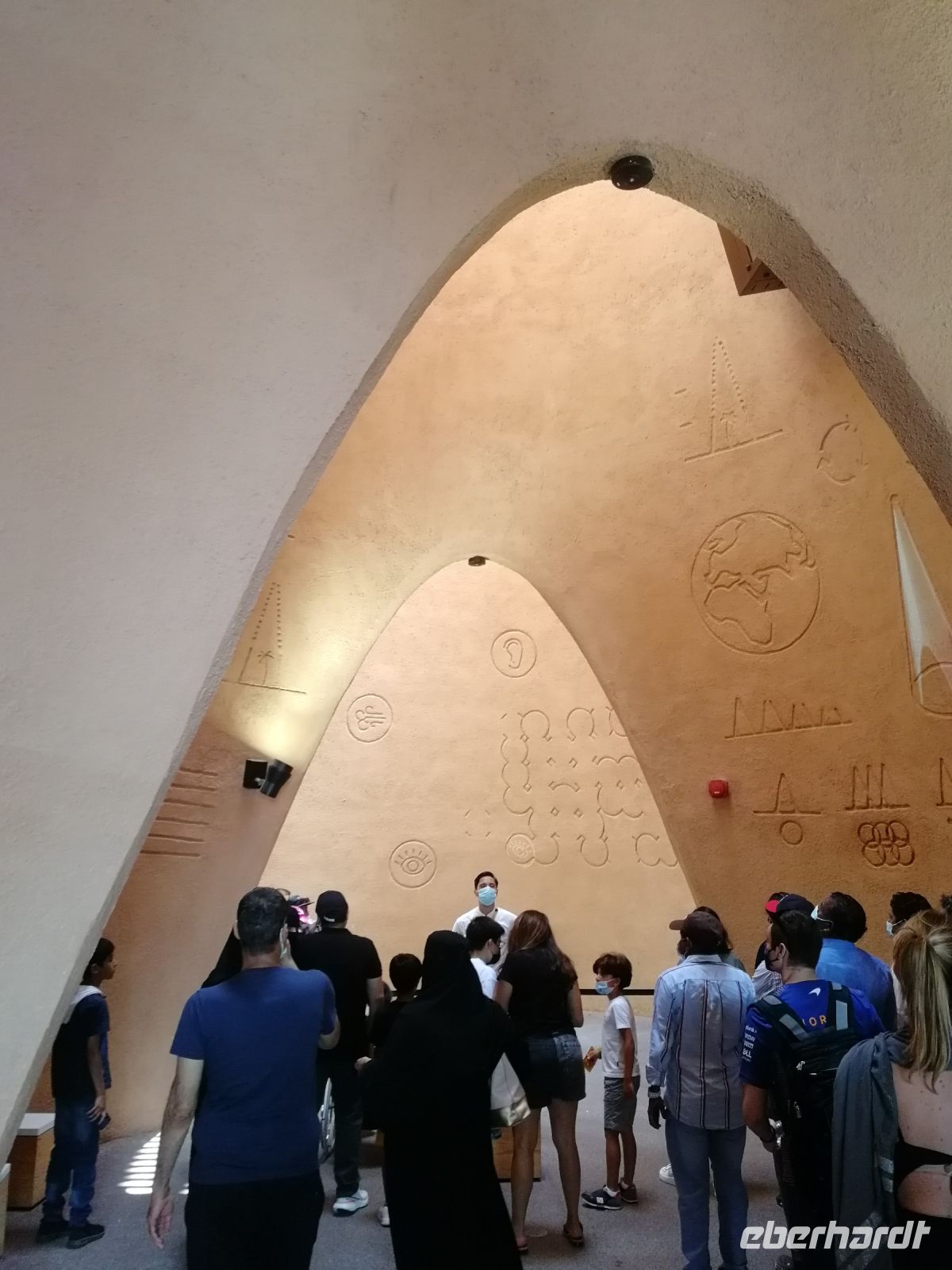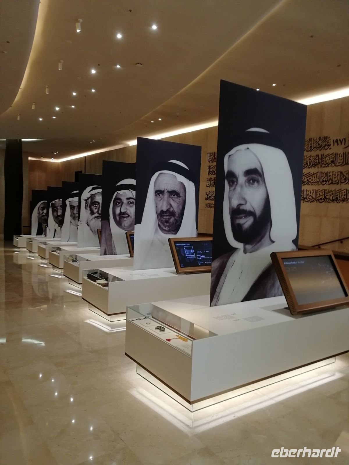 Nachfolgend besuchten wir das Etihad Museum. Ibrahim vergegenwärtigte uns das Wort Etihad, es hat keineswegs mit der nationalen Airline Etihad Airways zu tun. Im Wortsinn bedeutet es „Vereinigung“ oder „Zusammenschluss“ im Kontext der Vereinigung/Fusion der sieben Emirate. Im Rahmen eines geführten Museumsrundgangs bekommt man Einblicke in die Geschichte der Gründung der Vereinigten Arabischen Emirate im Jahr 1971. Direkt an diesem Ort des Museums wurde der Zusammenschluss der Emirate vollzogen. Von Museumseingang bis Museumsausgang gleicht dieses Museum einer Chronologie, die die historischen Ankerpunkte der VAE widerspiegelt. Unsere Museumsführerin klärte uns auf anschaulicher Weise auf, was es mit der Nationalverfassung und den daraus resultierenden Rechten sowie Privilegien, welche die Einwohner der VAE genießen, auf sich hat.