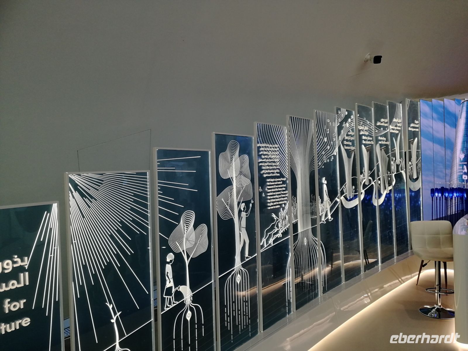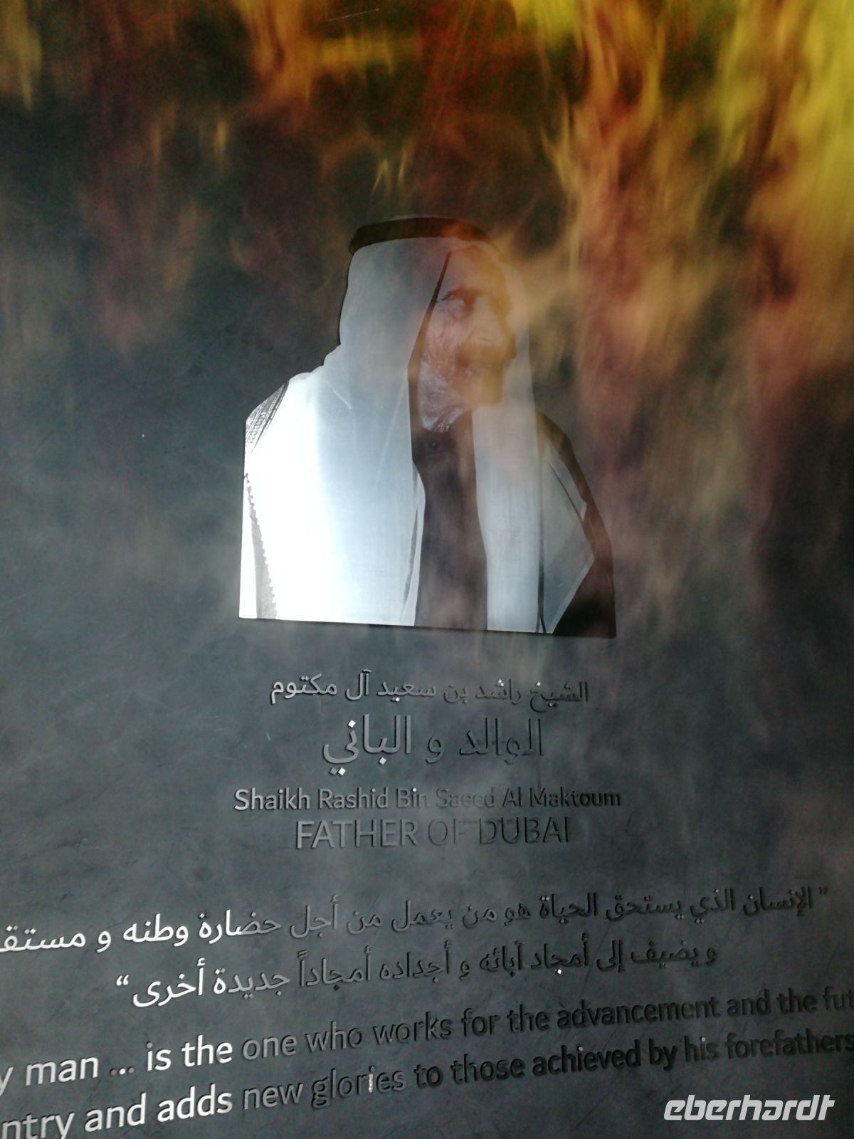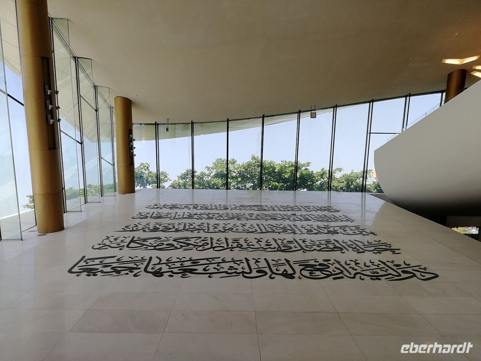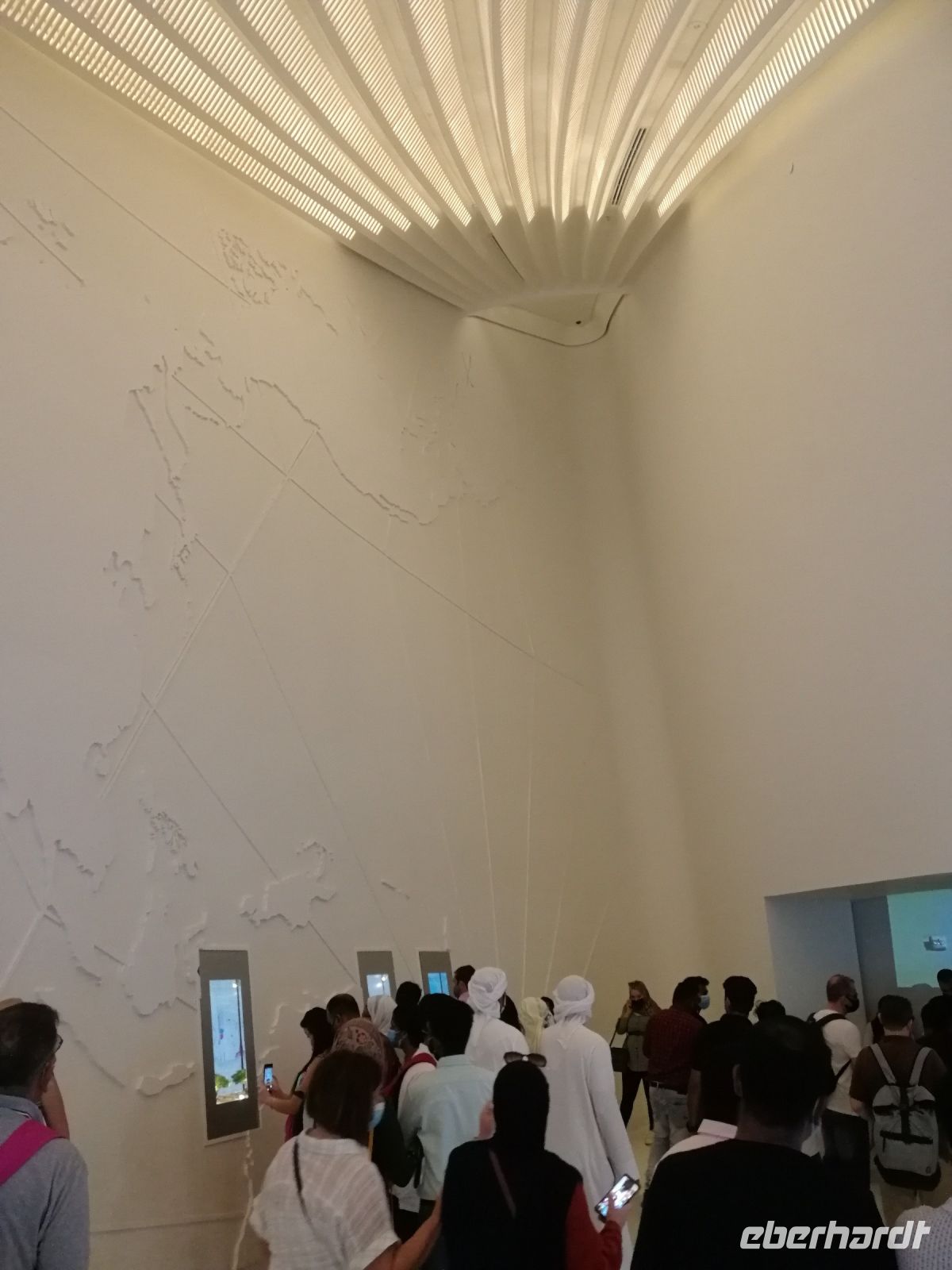 Nachfolgend besuchten wir das Etihad Museum. Ibrahim vergegenwärtigte uns das Wort Etihad, es hat keineswegs mit der nationalen Airline Etihad Airways zu tun. Im Wortsinn bedeutet es „Vereinigung“ oder „Zusammenschluss“ im Kontext der Vereinigung/Fusion der sieben Emirate. Im Rahmen eines geführten Museumsrundgangs bekommt man Einblicke in die Geschichte der Gründung der Vereinigten Arabischen Emirate im Jahr 1971. Direkt an diesem Ort des Museums wurde der Zusammenschluss der Emirate vollzogen. Von Museumseingang bis Museumsausgang gleicht dieses Museum einer Chronologie, die die historischen Ankerpunkte der VAE widerspiegelt. Unsere Museumsführerin klärte uns auf anschaulicher Weise auf, was es mit der Nationalverfassung und den daraus resultierenden Rechten sowie Privilegien, welche die Einwohner der VAE genießen, auf sich hat.
