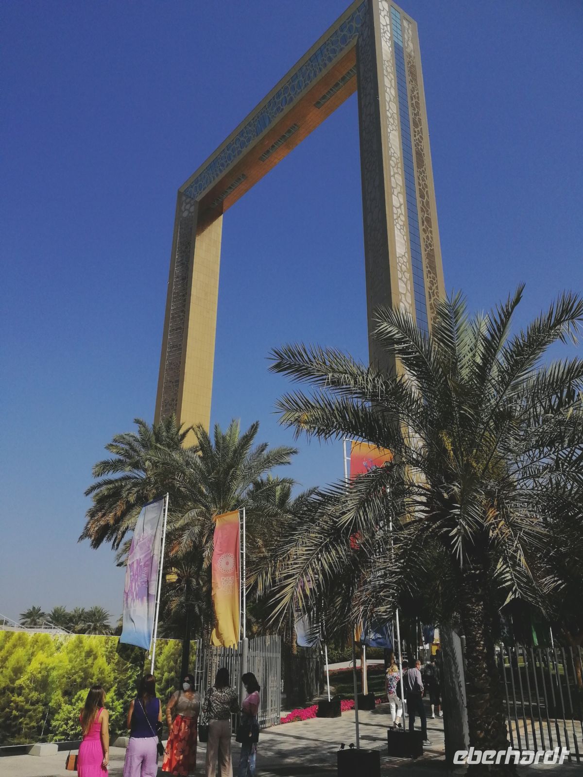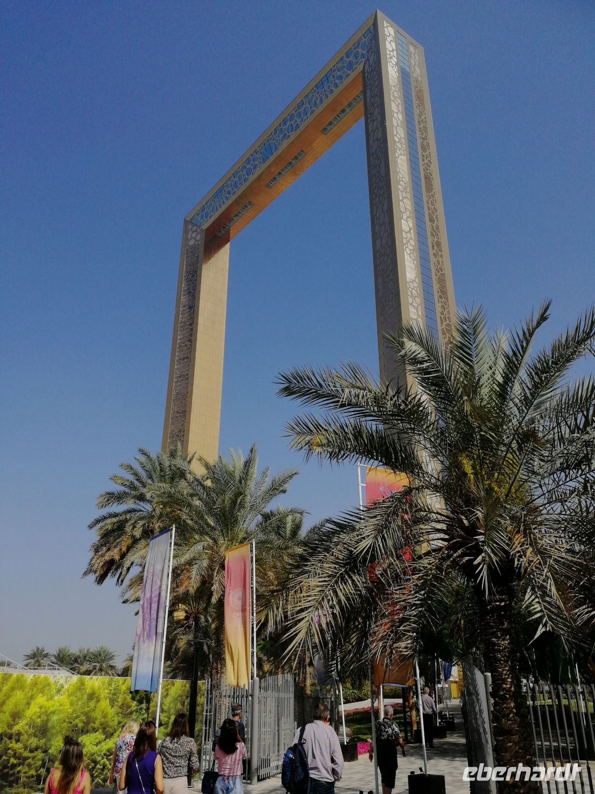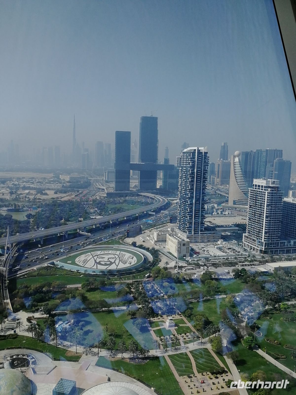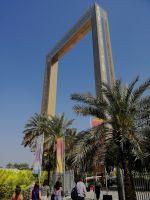 Zunächst besuchten wir den Dubai Frame, welcher zu Deutsch „Rahmen von Dubai“ bedeutet. Es ist der größte Bilderrahmen der Welt. Im Jahr 2018 wurde dieser zwischen neuen und alten Dubai eröffnet. Er wurde vom Architekten Fernando Donis entwickelt und konstruiert. Der Bilderrahmen besteht aus 150 Meter hohen Türmen und gibt Blicke in das neue Dubai mit dem Burj Khalifa sowie den alten Stadtteilen mit dem Bezirk von Deira frei. Unterhalb des Glasfußboden waren wir vom Zabeel Park beeindruckt. Während der Auffahrt zur Aussichtsplattform versetzten wir uns in die Entstehungsgeschichte Dubais, angefangen von einem kleinen Fischerdorf bis hin zu einer 3,3 Millionen einwohnerstarken urbanen Agglomeration.