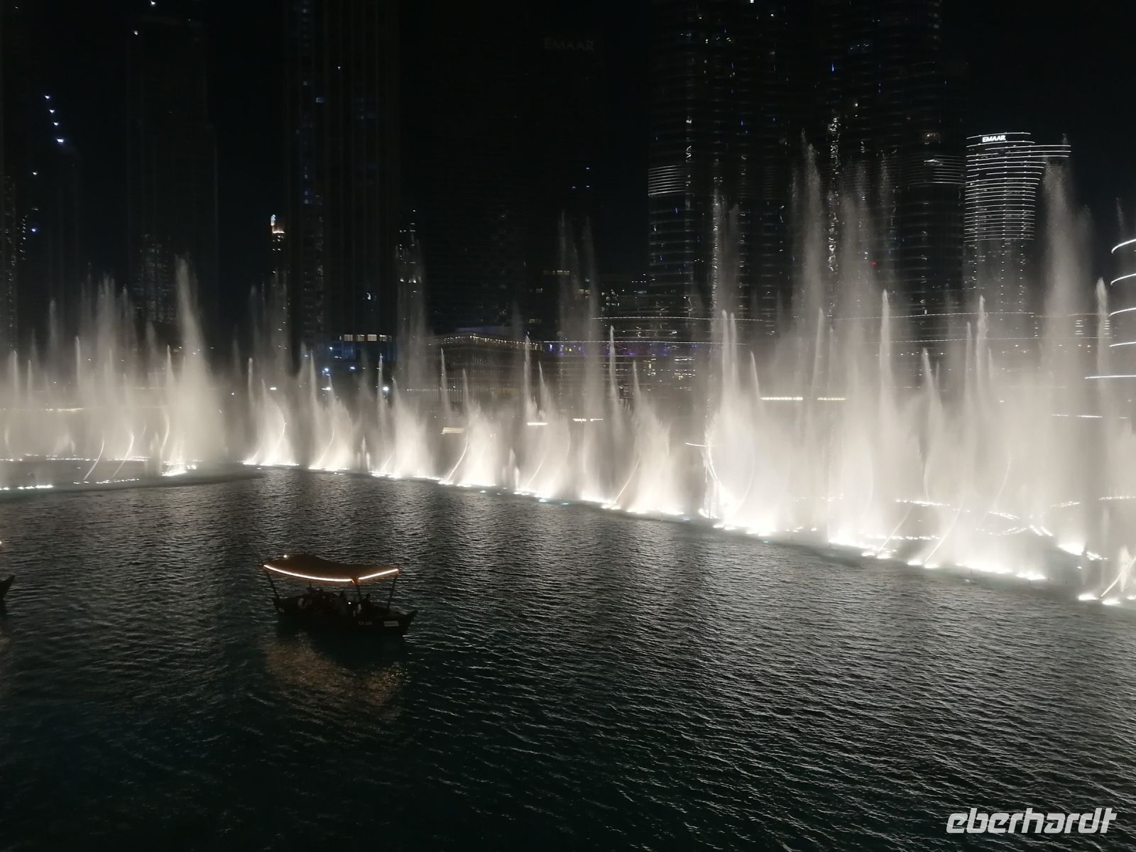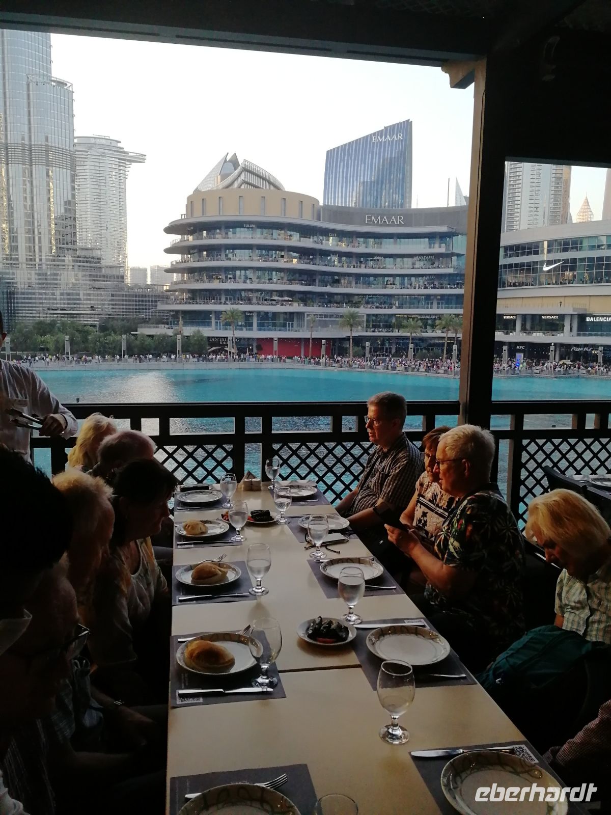 Individuell konnte jeder die Abfahrtszeit wählen, noch etwas Freizeit in der Dubai Mall verbringen, bis es zum gemeinsamen traditionellen libanesischen Abendessen im Souk al Bahr mit Blick auf die größten Wasserspiele mit den höchsten Wasserfontänen der Welt, der Dubai Fountains ging. Ein eindrucksvoller Tag bei einem gelungenen Abendessen aus einem Zusammenspiel von Wasser, Musik und Licht geht zu Ende.