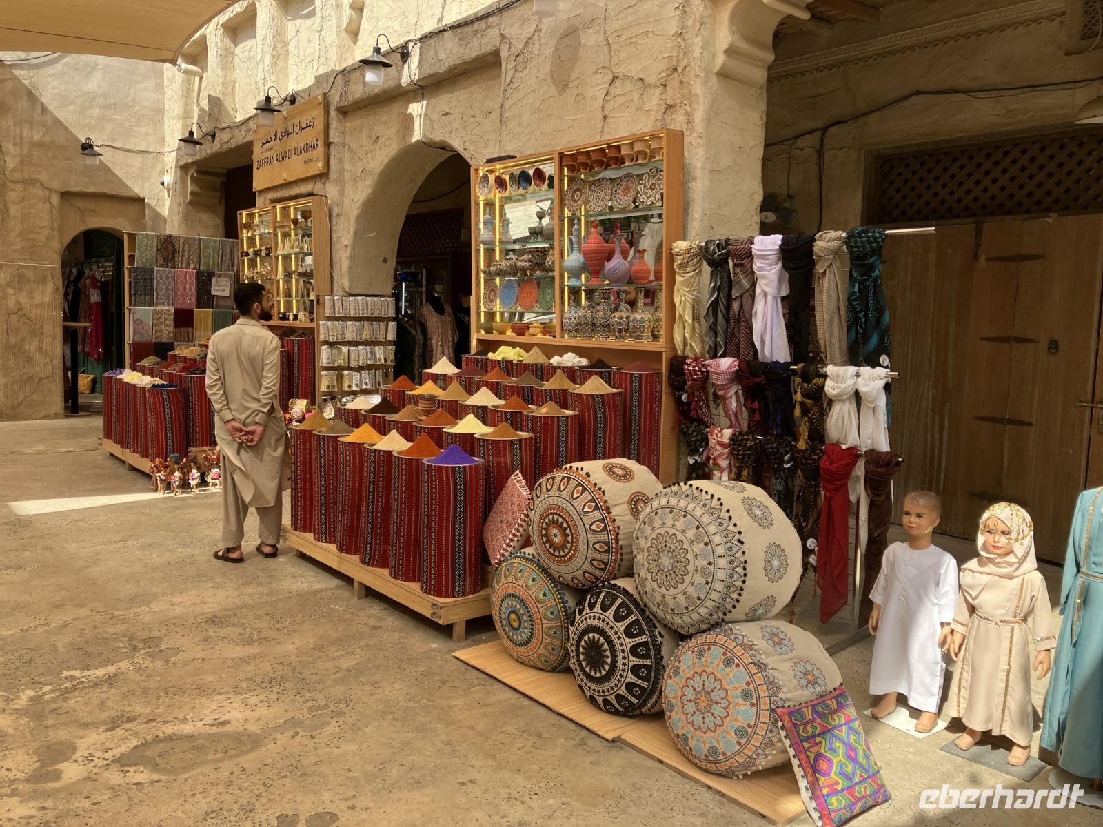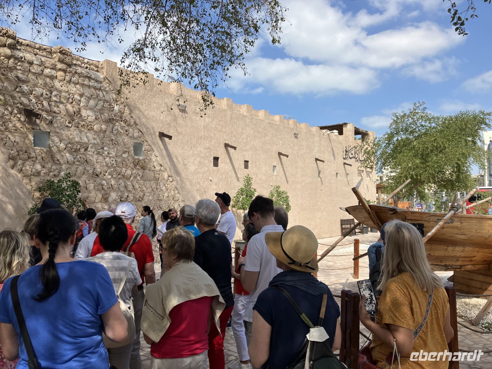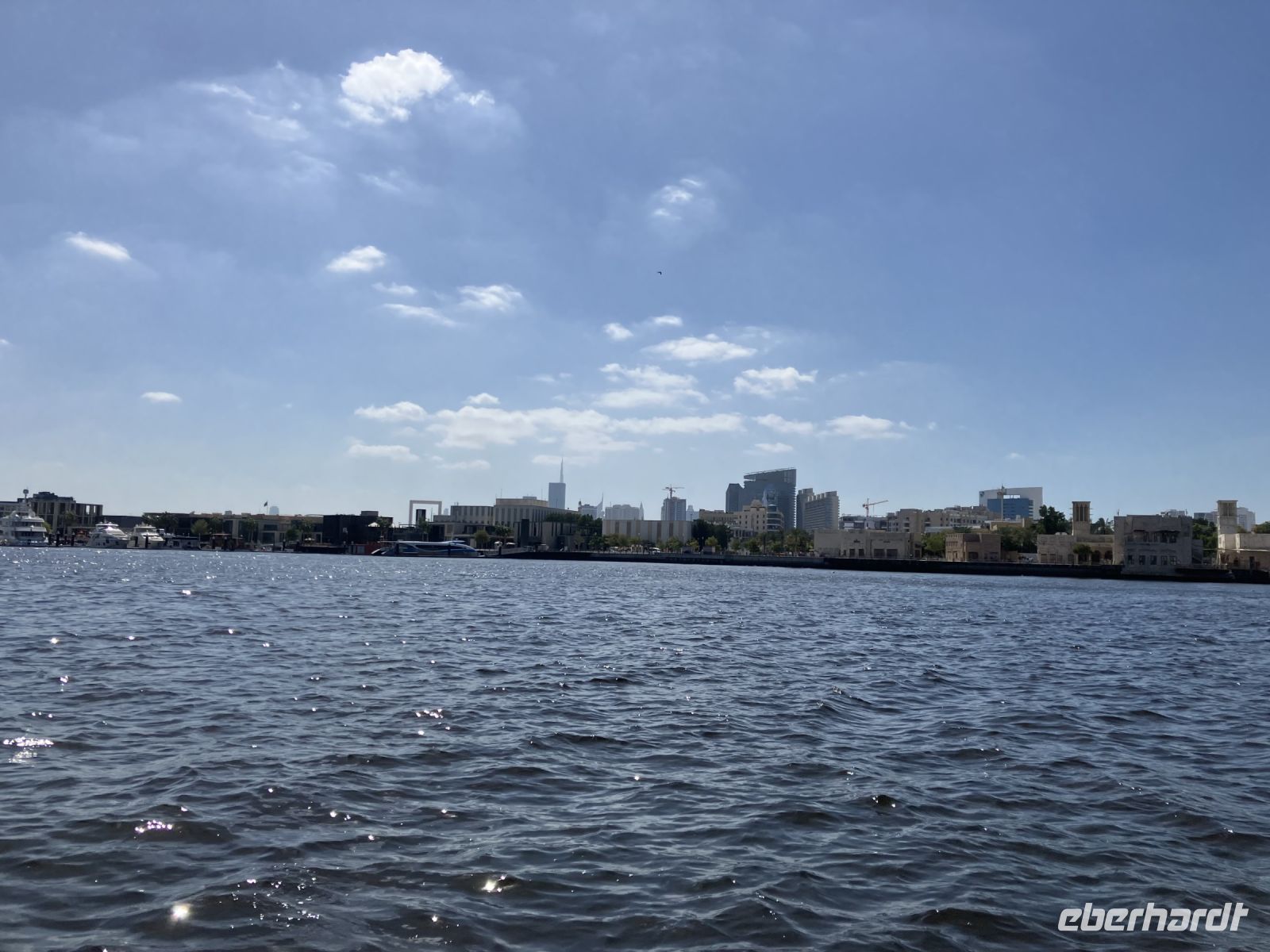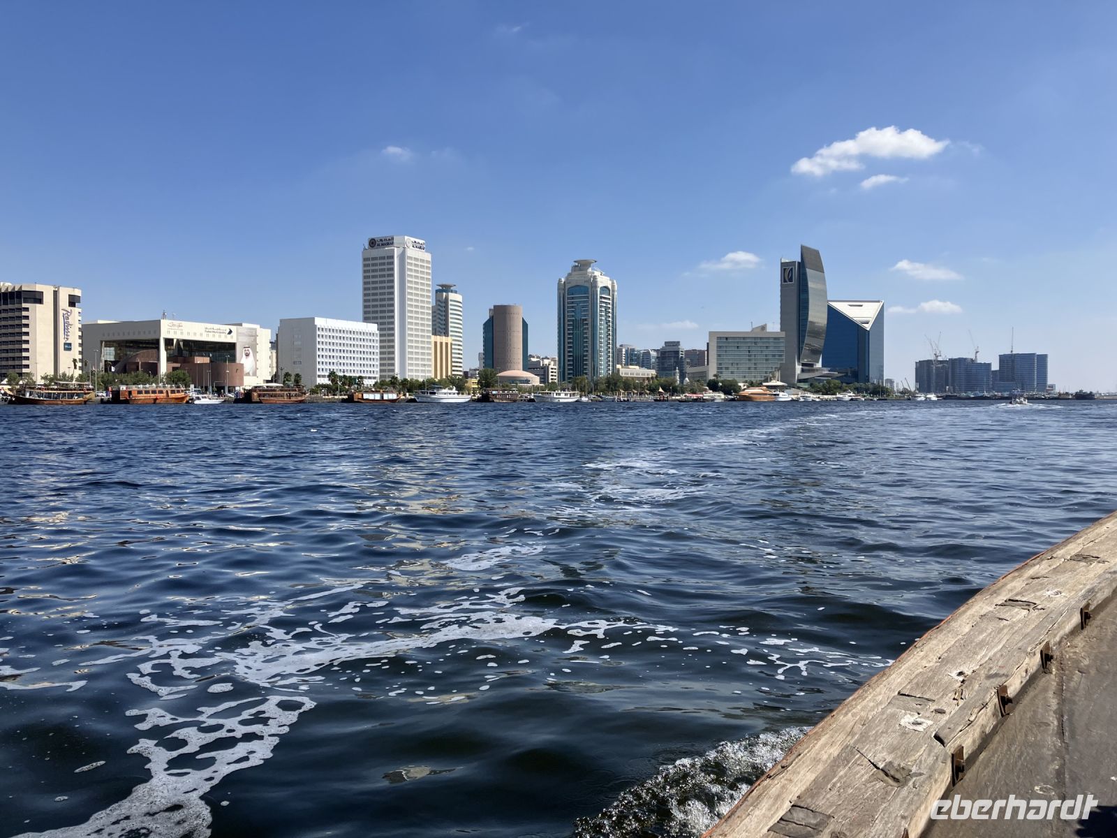 Im Anschluss lernten wir das alte Dubai kennen. Erst durch eine nachgebaute Altstadt bummelnd, danach im renovierten historischen Stadtkern und am Schluss im Goldsouk Deira. Im Kaffeemuseum erfuhren wir, was es mit dem Schütteln des Kaffeebechers auf sich hat, und warum der einschenkende Diener immer stumm bleiben mußte. Mit einem Abra, dem berühmten Wassertaxi setzten wir über den Creek. Weil es schön ist, gönnten wir uns nicht nur die Überfahrt, sondern 45 min auf dem Wasser.