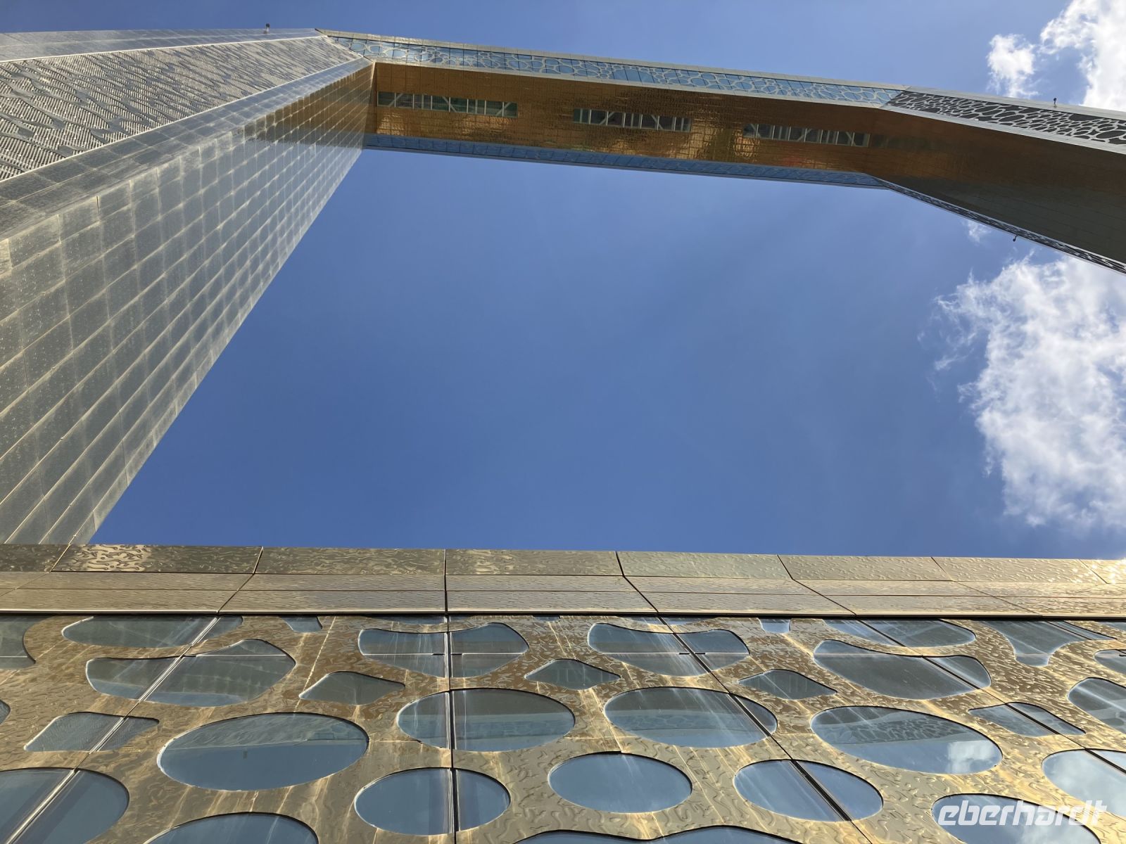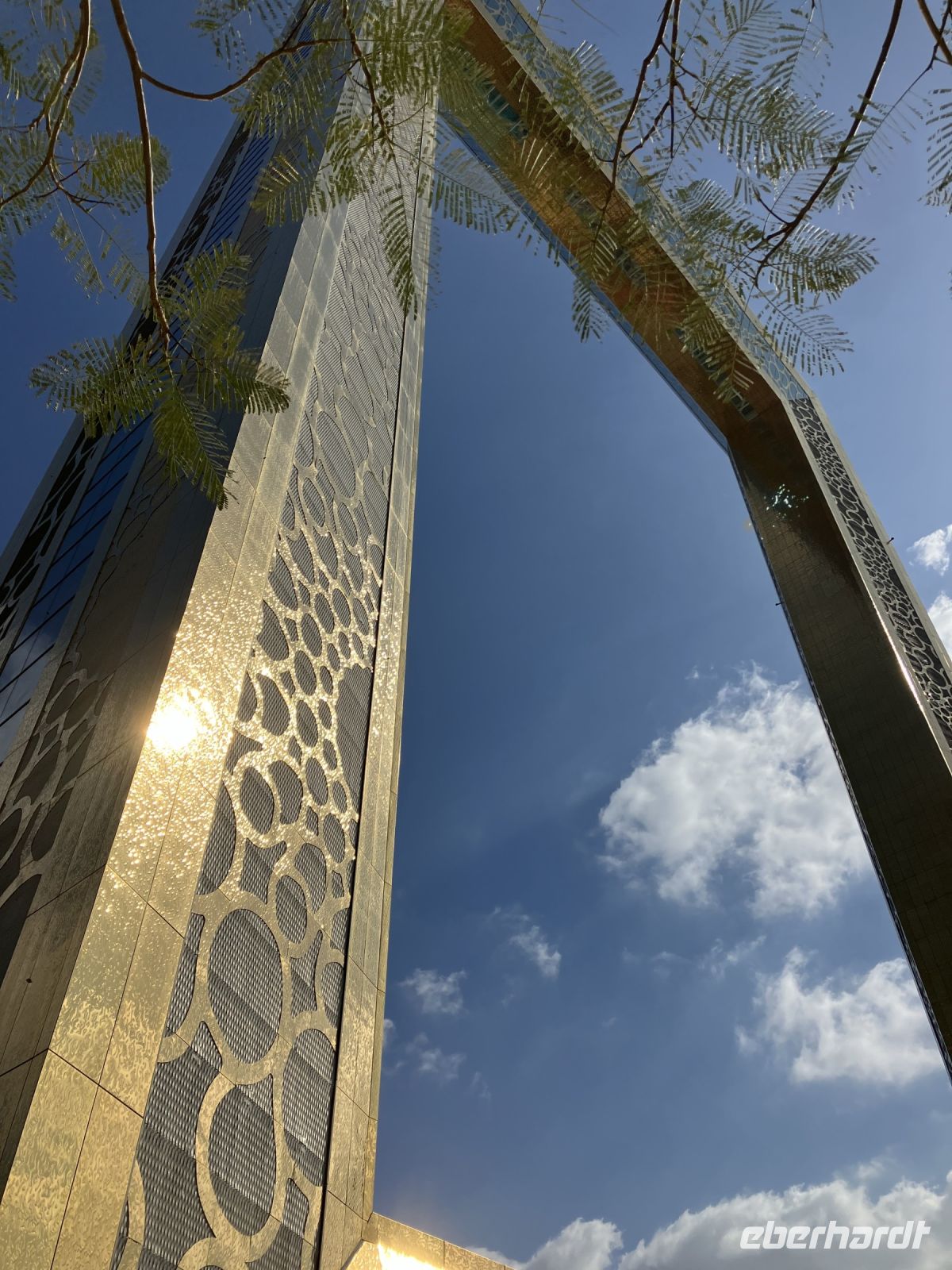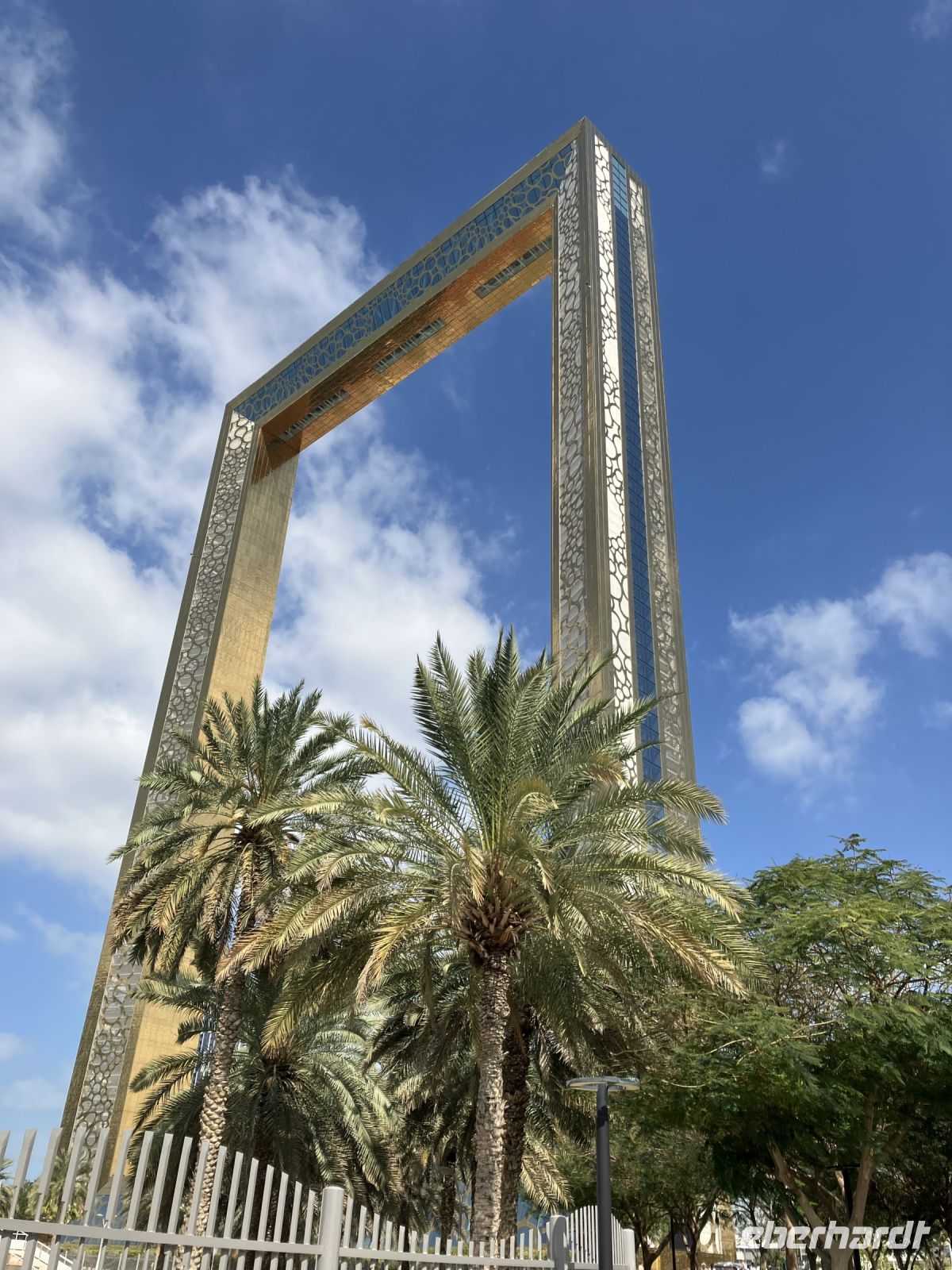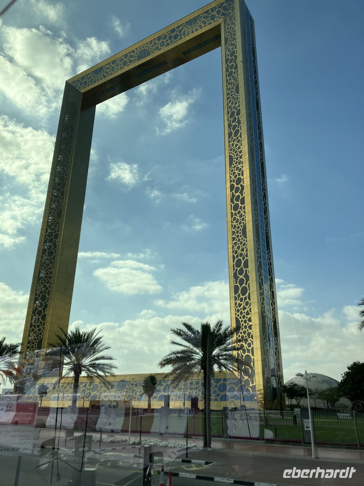 Man sieht ihn schon von Weiten, den weltgrößten Bilderrahmen. Leuchtend lässt uns der golden schimmernde Dubai Frame staunend und mit nach hinten geneigten Köpfen davorstehen. Imposant ist das Gebäude, um den es wohl immer noch einen ungeklärten Rechtsstreit gibt, denn der mexikanische Architekt Fernando Donis gewann 2009 mit einem ähnlichen Design den ThyssenKrupp Elevator International Award. Die Stadt Dubai nutzte es angeblich ohne sich mit dem Architekten vertraglich geeinigt zu haben. Wohl deshalb erzählen die Guides, dass die ursprüngliche Idee von einer Schülerin stammt... Wer weiss? Was wir von Ibrahim erfuhren: Die Lage zwischen dem alten Stadtkern und den jungen Stadtteilen wurde bewusst gewählt, sie stellt die Verschmelzung von Tradition und Moderne in Dubai dar. Und ja, die Aussicht ist beeindruckend und einigen schlug das Herz bis zum Hals, als sie in 150 m Höhe über einen Glassteg laufen konnten.