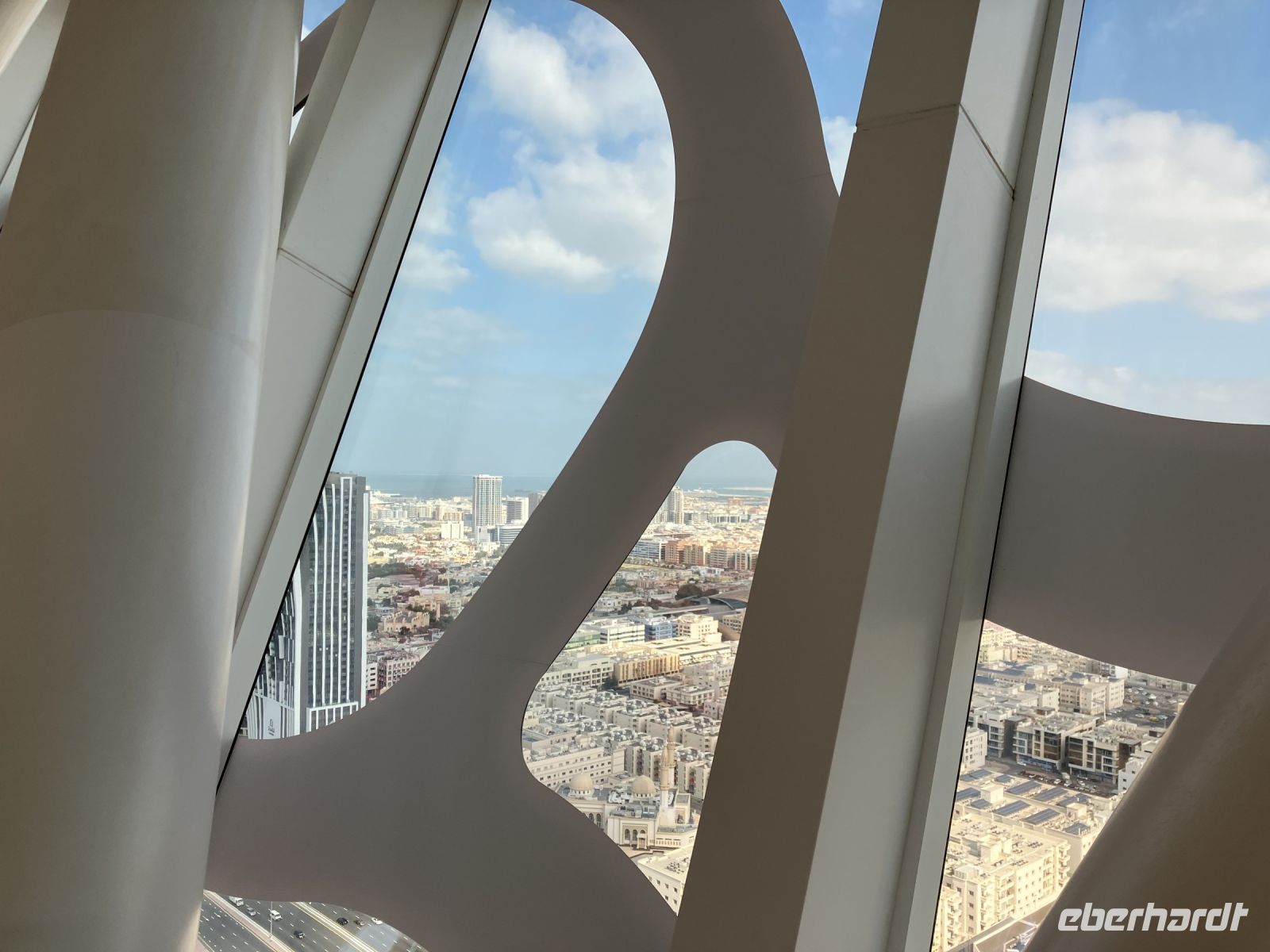 Heute endlich wollten wir hoch hinaus, auf den höchsten Turm der Welt, den Burj Kahlifa. Wir erlebten ihn bunt angeleuchtet, bewunderten ihn stets von Weitem, doch jetzt begaben wir uns ins Innere des Burj Khalifa. Im übrigen gründet das Gebäude mit seiner unverkennbaren dreiblättrigen Form auf der Blüte der Schönlilie. Diese Wüstenblume soll den weltberühmten Architekten Adrian Smith bei dem Design des Wolkenkratzers inspiriert und begleitet haben. Genau genommen, erklommen wir also eine Blume. So vieles gäbe es über dieses Bauwerk zu sagen, doch im Endeffekt heißt es Erleben und Erspüren. Kribbelte es im Bauch als wir auf die Plattform ins Freie traten? Spürten wir Druck auf den Ohren als wir mit 10m/s die längste Fahrt weltweit in einem Aufzug antraten?