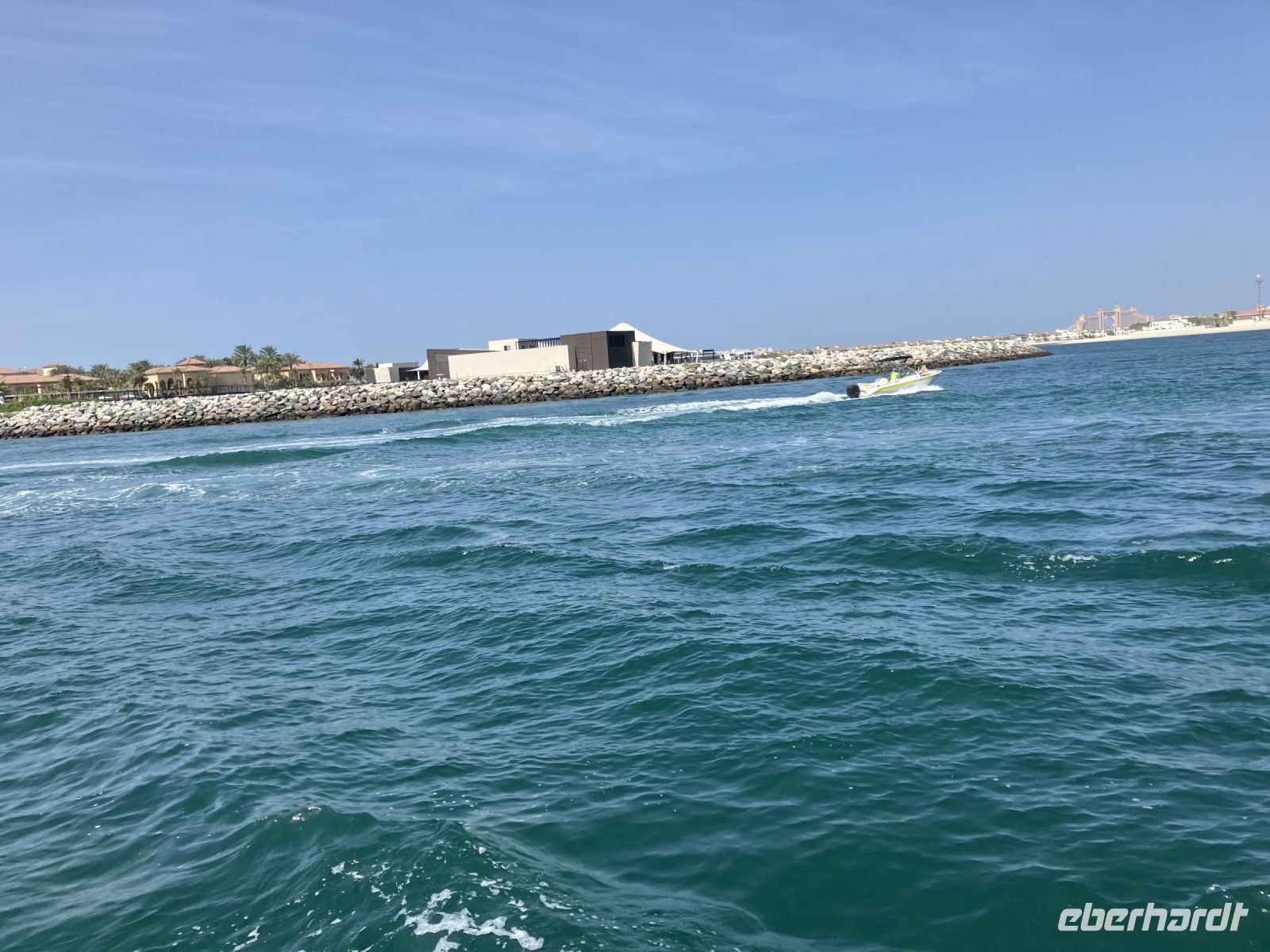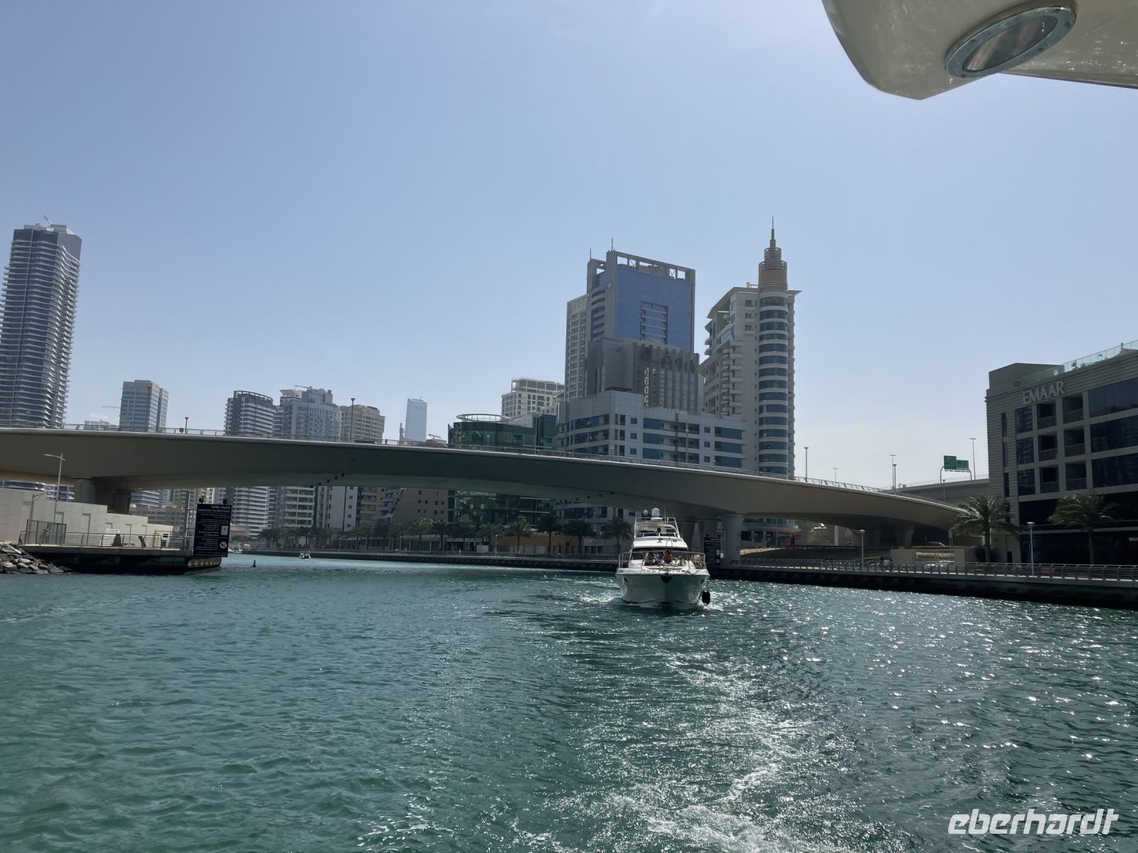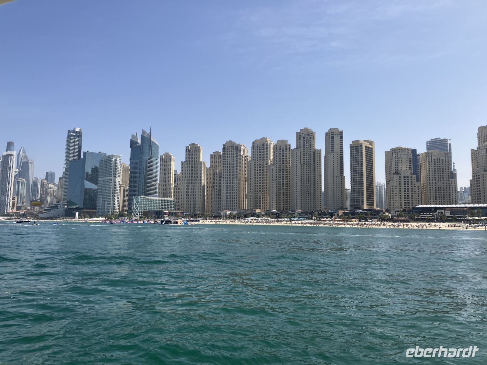 An einer Reihe größerer und kleiner Yachten vorbeilaufend, scherzten wir, wem wohl welche Yacht gehöre und erreichten lachend unser luxuriöses Boot für den geplanten Ausflug durch die Dubai Marina. Vom Meer aus zeigte sich die Skyline von Dubai nochmal von einer ganz anderen Seite. Imposant ragten die verschiedenen Hochhäuser in den Himmel. Jeder Architekt konnte hier seine Träume verwirklichen. Im Schatten sitzend, den Wind im Gesicht, genossen wir den Anblick, ein paar Softgetränke und das warme Wetter. Diese kleine aufregende Seereise war der perfekte Start in den Tag und, um einige Sehenswürdigkeiten Dubai´s ganz entspannt zu sehen.