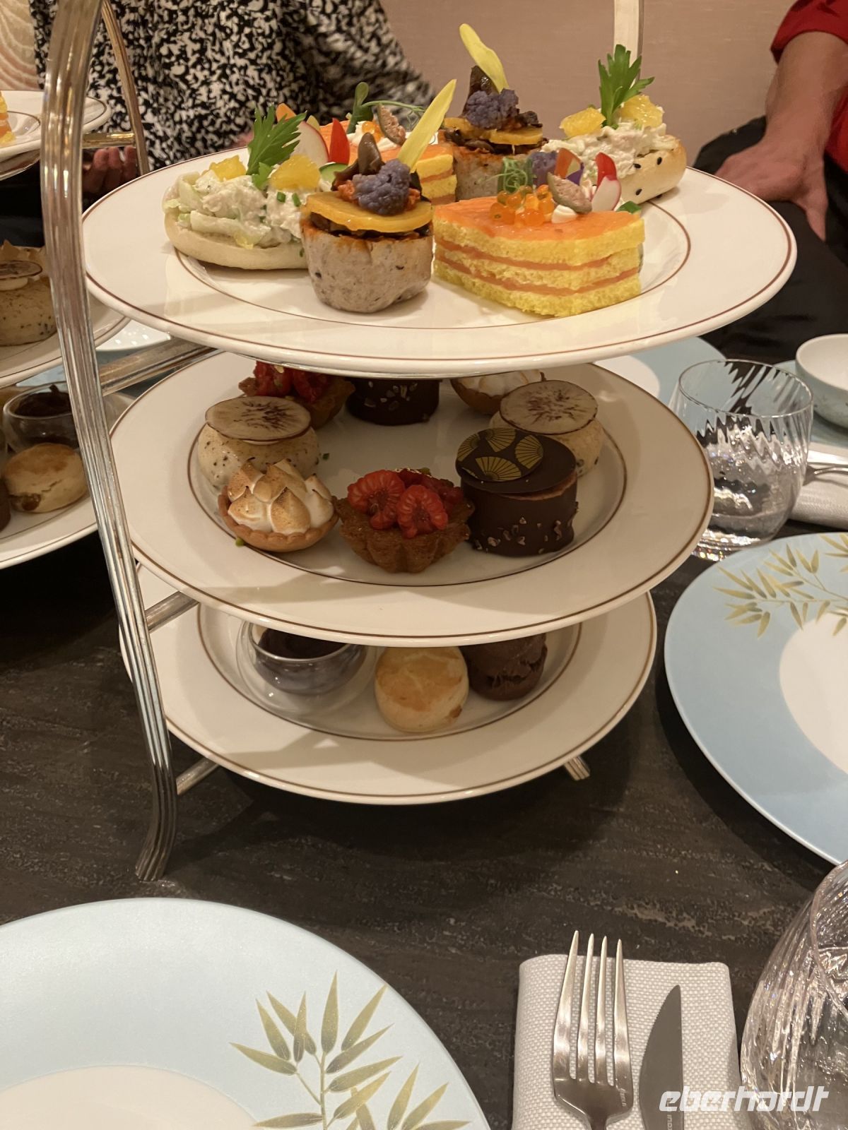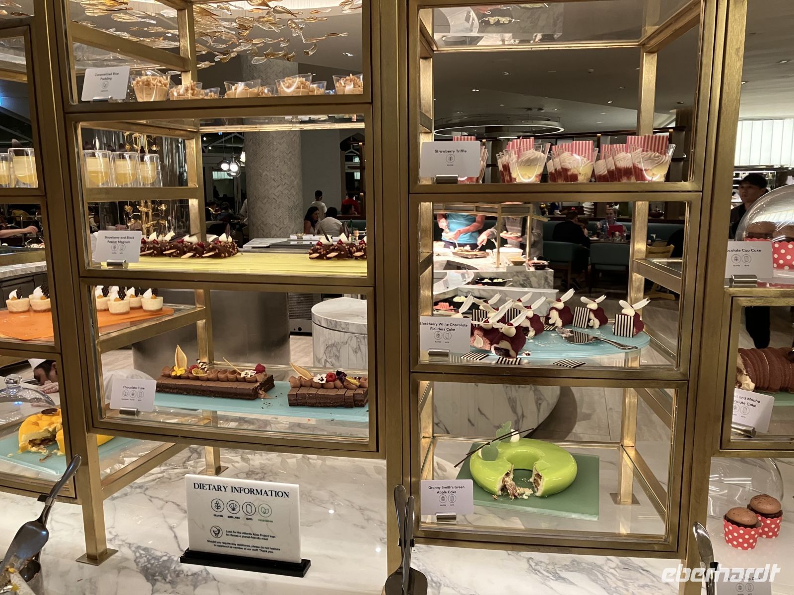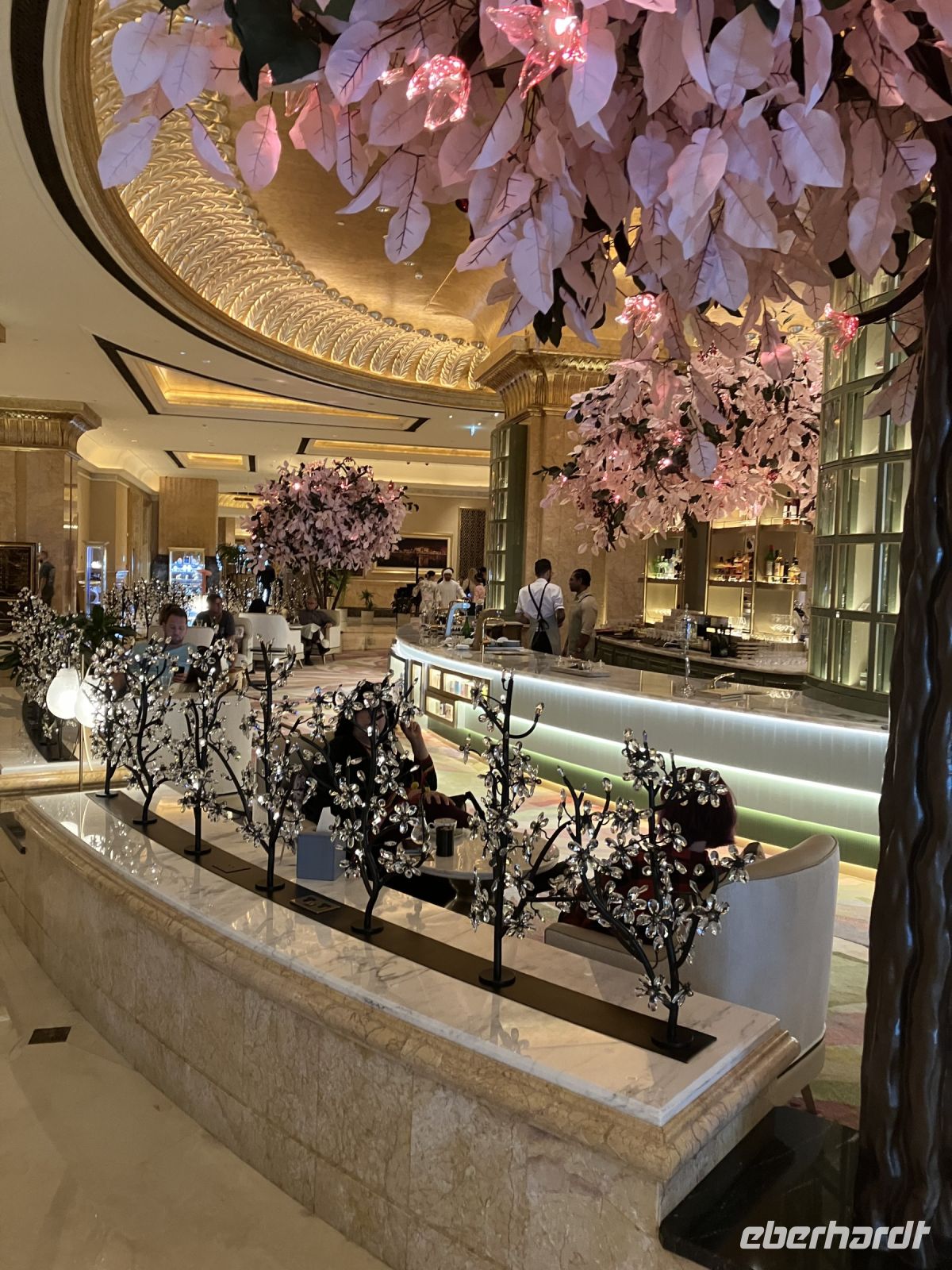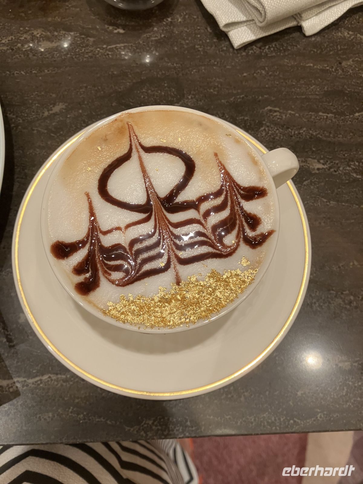 Und wir genossen jetzt in diesem orientalischen Palast, aus chinesischem Tassen eine englische Teezeremonie mit Häppchen und Scones mit clotted cream. Doch den Höhepunkt stellte natürlich der mit echtem Plattgold servierte Cappuccino dar.