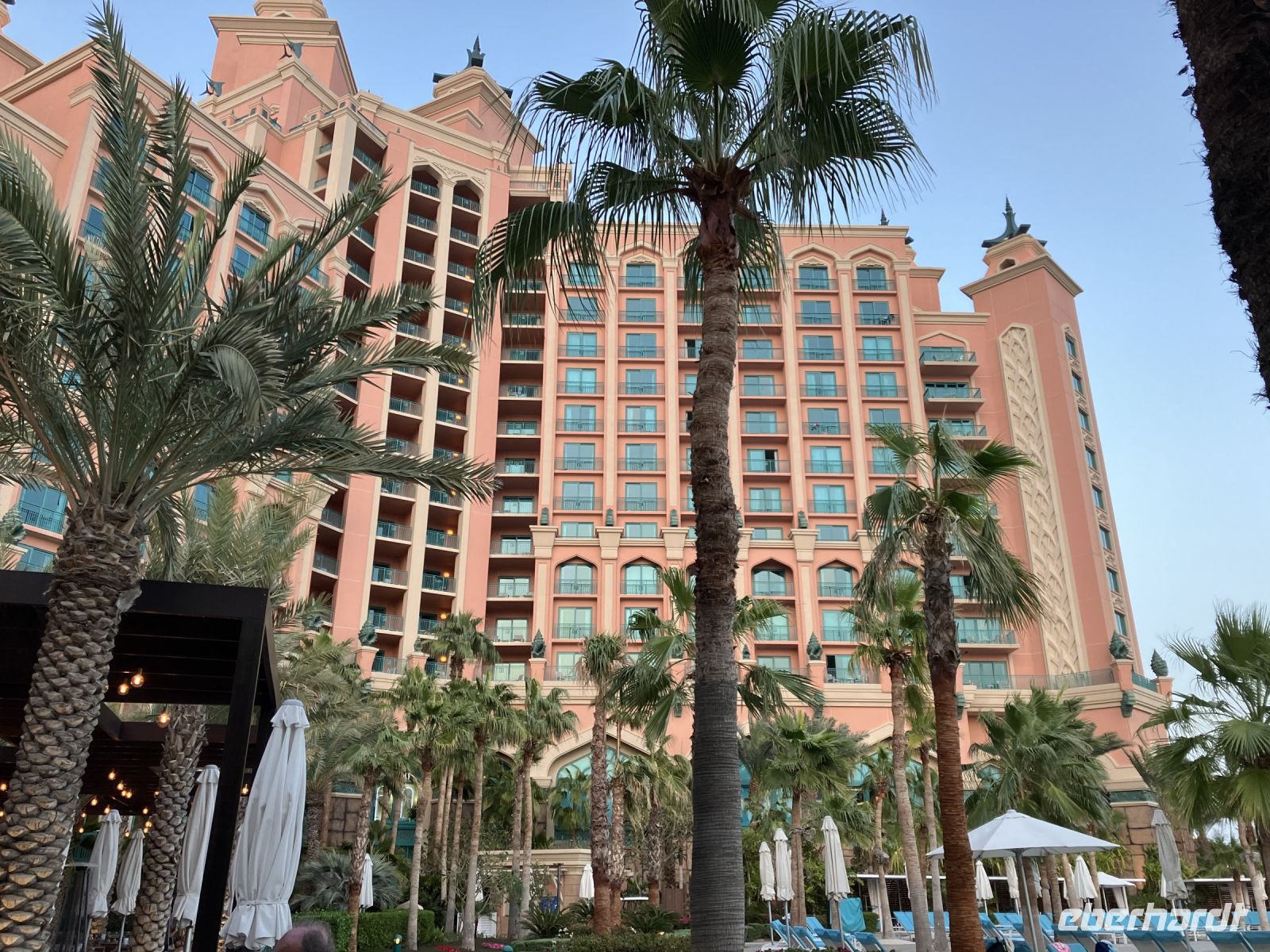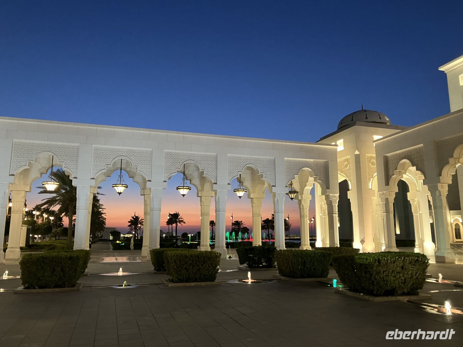 Diese wundervolle Anlage verliesen wir über die Treppen des Haupteingangs hinunter, um die malerischen Wasserspiele vor dem imposanten Zugang zum Hotel zu fotografieren.
