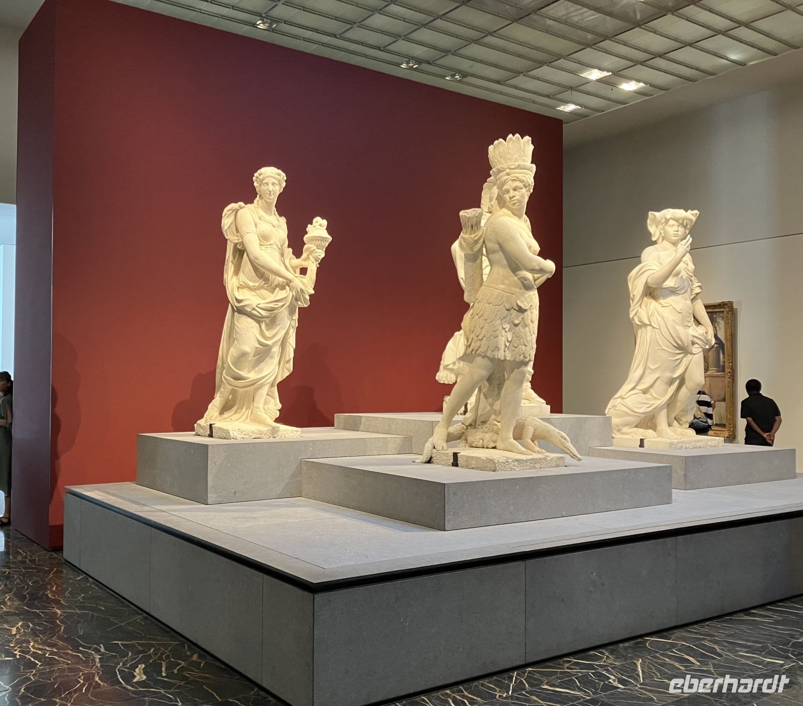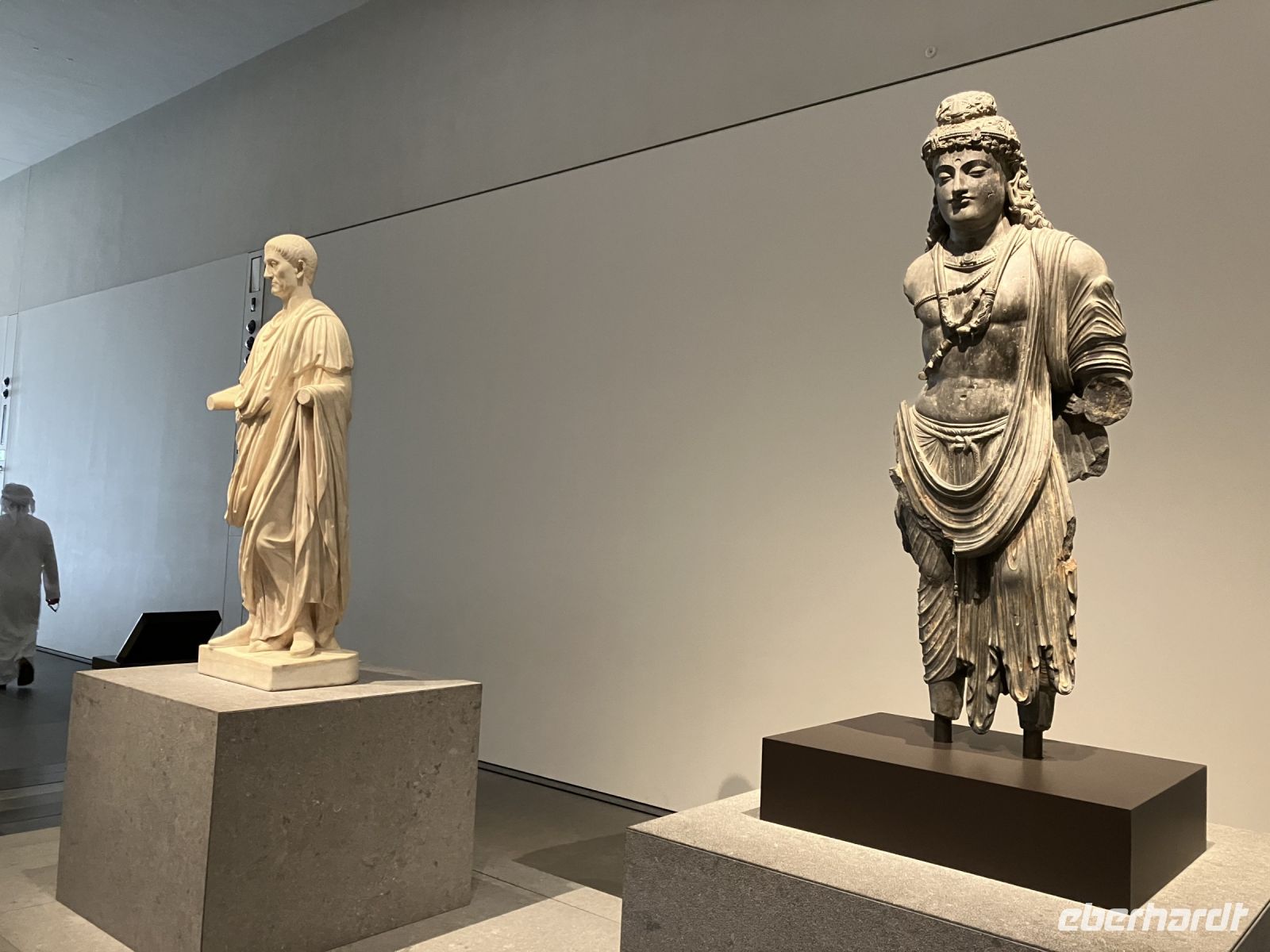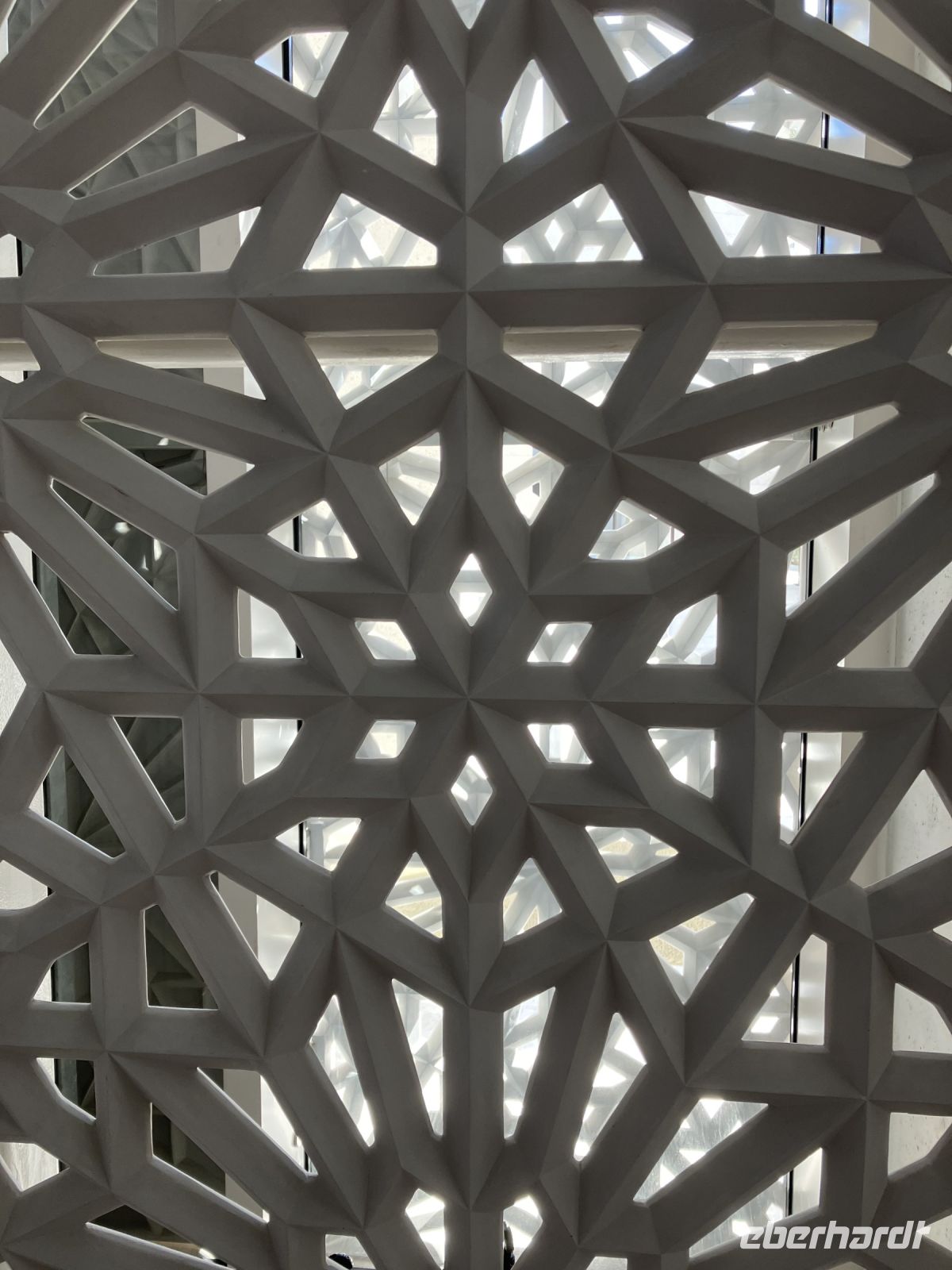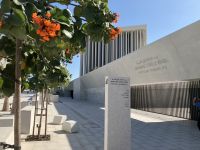 Erst im vergangenen Jahr fertig gestellt, wurde das Abrahamic Family House gleich von Eberhardt Travel als neue Attraktion mit ins Programm aufgenommen. Das Abrahamic Family House umfasst drei separate Gotteshäuser, die Scheich Ahmed El Tayeb Moschee, die Hl. Franz von Assisi Kirche Abu Dhabi und die Moses Ben Maimon Synagoge, sowie gemeinsame Räume für Begegnungen und Dialog, die wir mit einer kompetenten Gästeführerin kennenlernen durften. Außerdem stand an diesem Tag auch noch der Louvre von Abu Dhabi auf dem Programm, der sich sozusagen gleich um die Ecke befindet. Als erstes bewunderten wir die einzigartige, lichtdurchlässige Kuppel vom französischen Stararchitekt Jean Nouvel. Wie Palmenblätter in einer Oase soll sie Schatten spenden als auch das Licht einlassen. Von überall her drang Stimmengewirr an unsere Ohren; Schulklassen, Touristen aus aller Welt, Künstler. Einige junge Mädchen flitzten an uns vorbei mit dem Handy verschiedene Exponate fotografierend. Die Gruppe zerteilte sich, jeder ging in seinem Tempo oder suchte bestimmte Ausstellungsstücke, z.B. Leihgaben des Musée du Louvre, Musée d’Orsay und Centre Pompidou aus Frankreich. Sicherlich konnten wir nicht allen Objekten unsere Aufmerksamkeit schenken, da die Zeit wie immer bei Gruppenreisen begrenzt war.