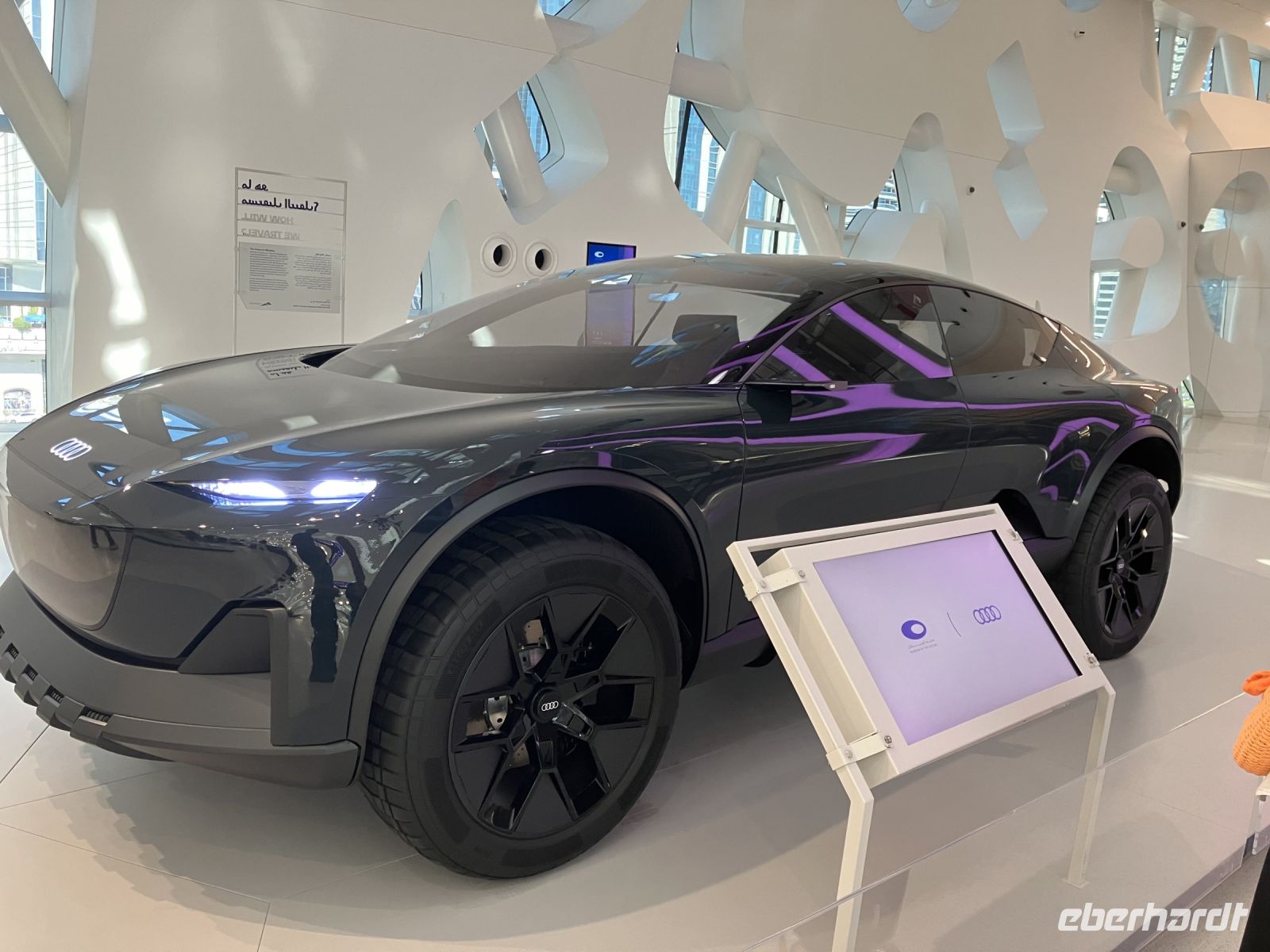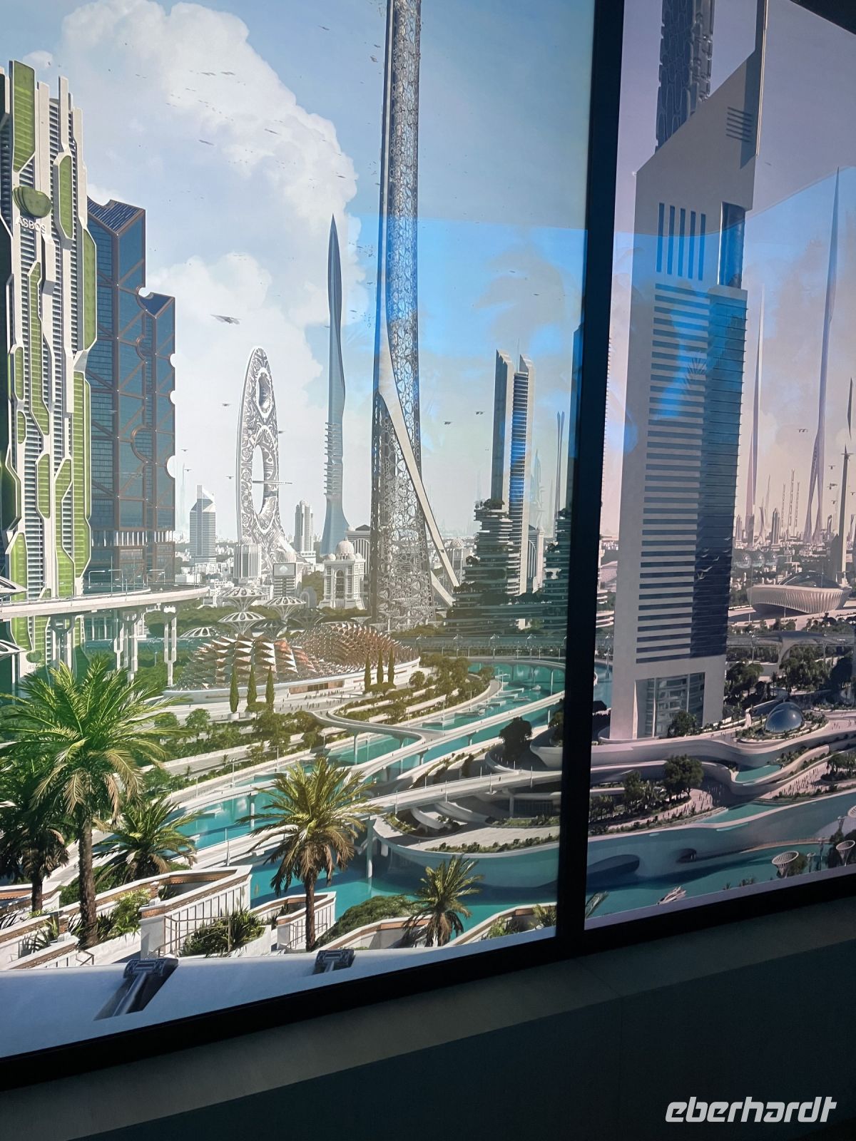 Ein Museum der Zukunft, was würden wir dort sehen? War schon jemand von einer Zeitreise mit Ausstellungsstücken zurückgekehrt? Aber ganz im Ernst - wir unternahmen eine Exkursion in die futuristische Welt des Jahres 2071. Mit einer Raumkapsel flogen wir los, entdeckten die Möglichkeiten der Sonnenenergie-Nutzung durch einen Solargürtel, der um den Mond gelegt wurde, konnten einem menschlich nachempfunden Roboter Fragen stellen, sahen aus dem Bürofenster einer medizinischen Angestellten auf die Skyline von Dubai mit fliegenden Autos und staunten über die riesige DNA Bibliothek. Wenn wir jetzt noch daran dachten, dass Ibrahim uns erzählt hatte, dass wir im Jahr 2026 in ein fliegendes Taxi steigen könnten oder mit dem Hyperloop in 12 Minuten nach Abu Dhabi fahren, dann wurde uns ganz schwindelig. Wir müssen auf jeden Fall in einigen Jahren mit einer weiteren Eberhardt Reise überprüfen, was daraus geworden ist.