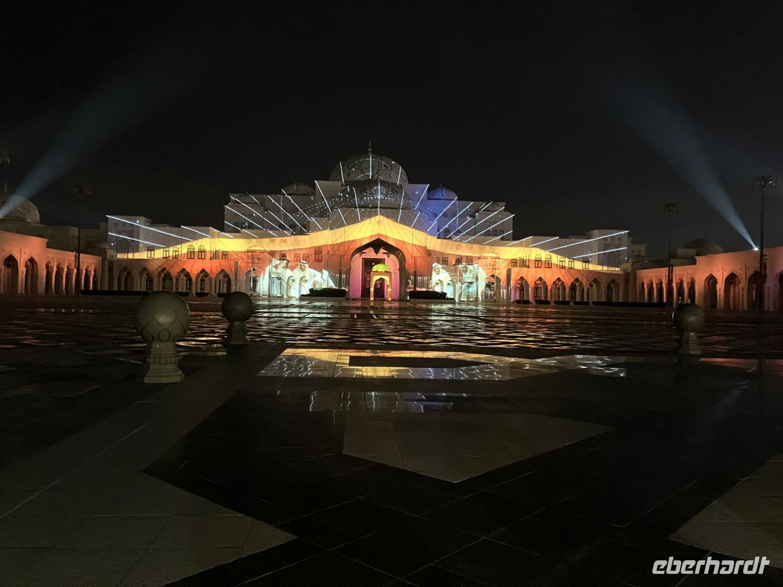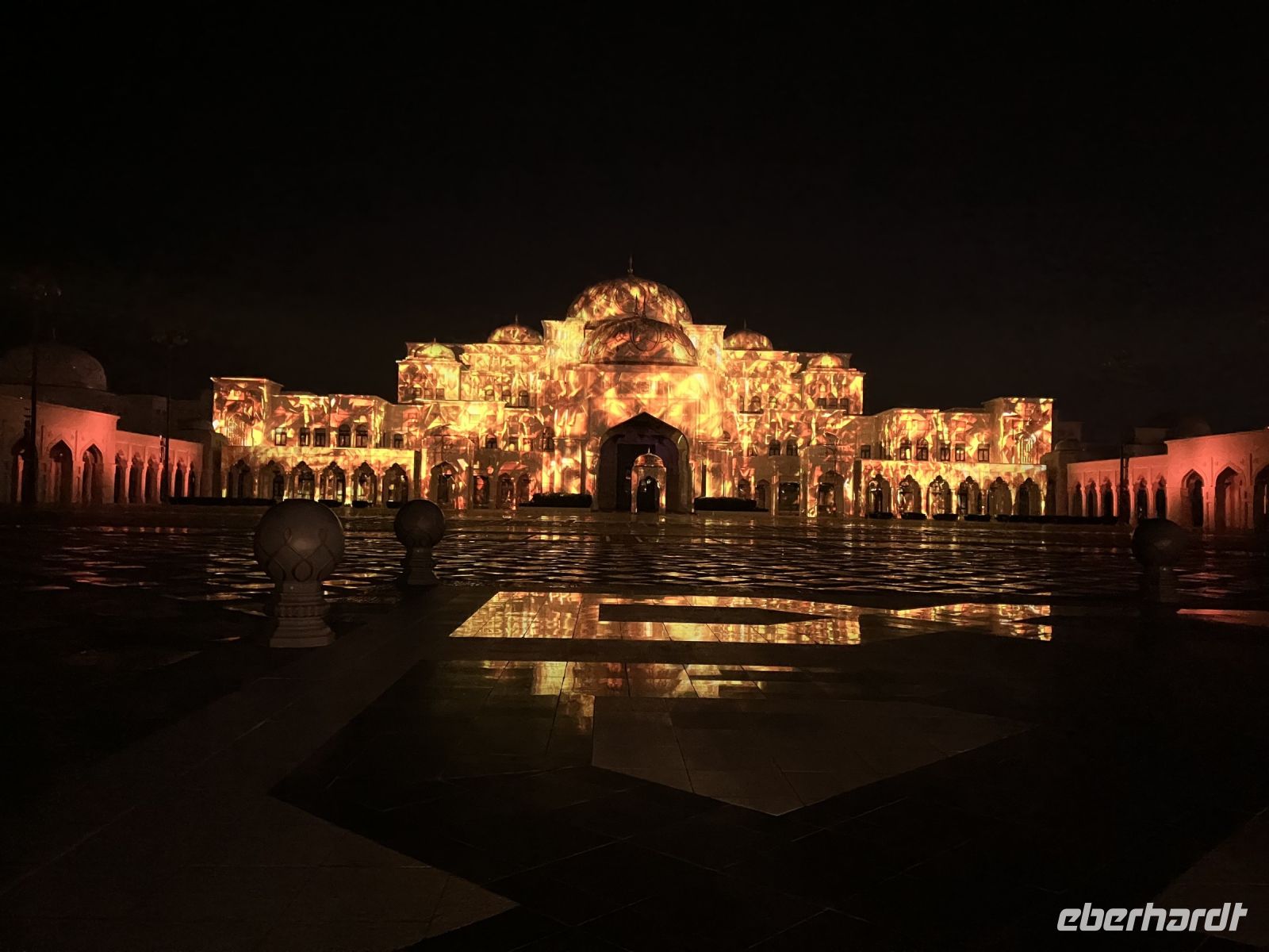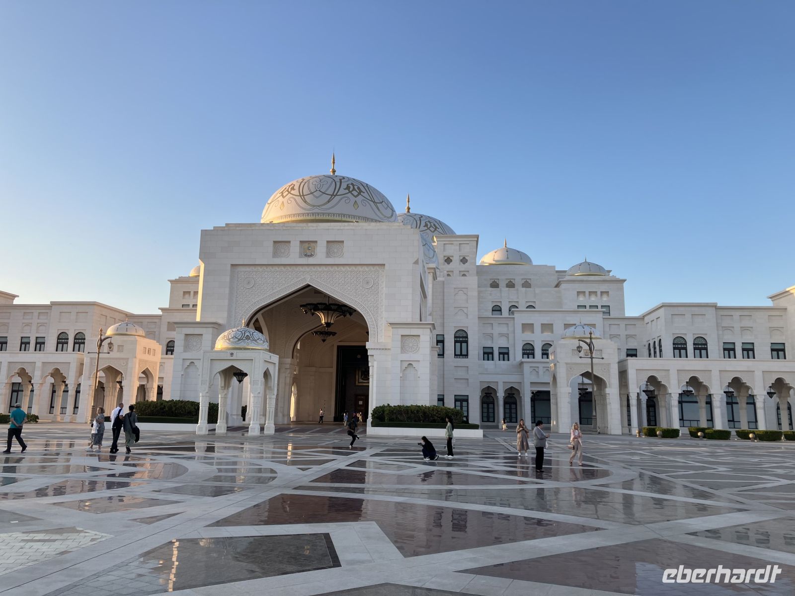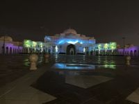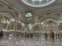 Am späten Nachmittag machten wir uns auf den Weg zum Präsidentenpalast, der genau gegenüber von unserem Hotel lag. Ein Palast wie aus 1001 Nacht mit einer riesigen Empfangshalle, einer Bibliothek oder dem Bankettsaal, in welchem wir gern einmal diniert hätten. Ein Palast, welcher nicht zum Wohnen, sondern nur zum Arbeiten und Repräsentieren gedacht ist. In weiß, gold und hellblau erstrahlt der Prachtbau, ein dezentes Farbenspiel, perfekt aufeinander abgestimmt. Die Sonne stimmte am Abend mit ein, der Sonnenuntergang passte sich farblich an. Doch kaum verschwanden die letzten Sonnenstrahlen, begann eine fantastische Lichtshow. Circa 15 Mintuten saßen wir wie gebannt vor dem märchenhaften Palast und erfreuten uns an dem leuchtenden Spektakel aus Musik und Licht. Ein einzigartiger Besuch.