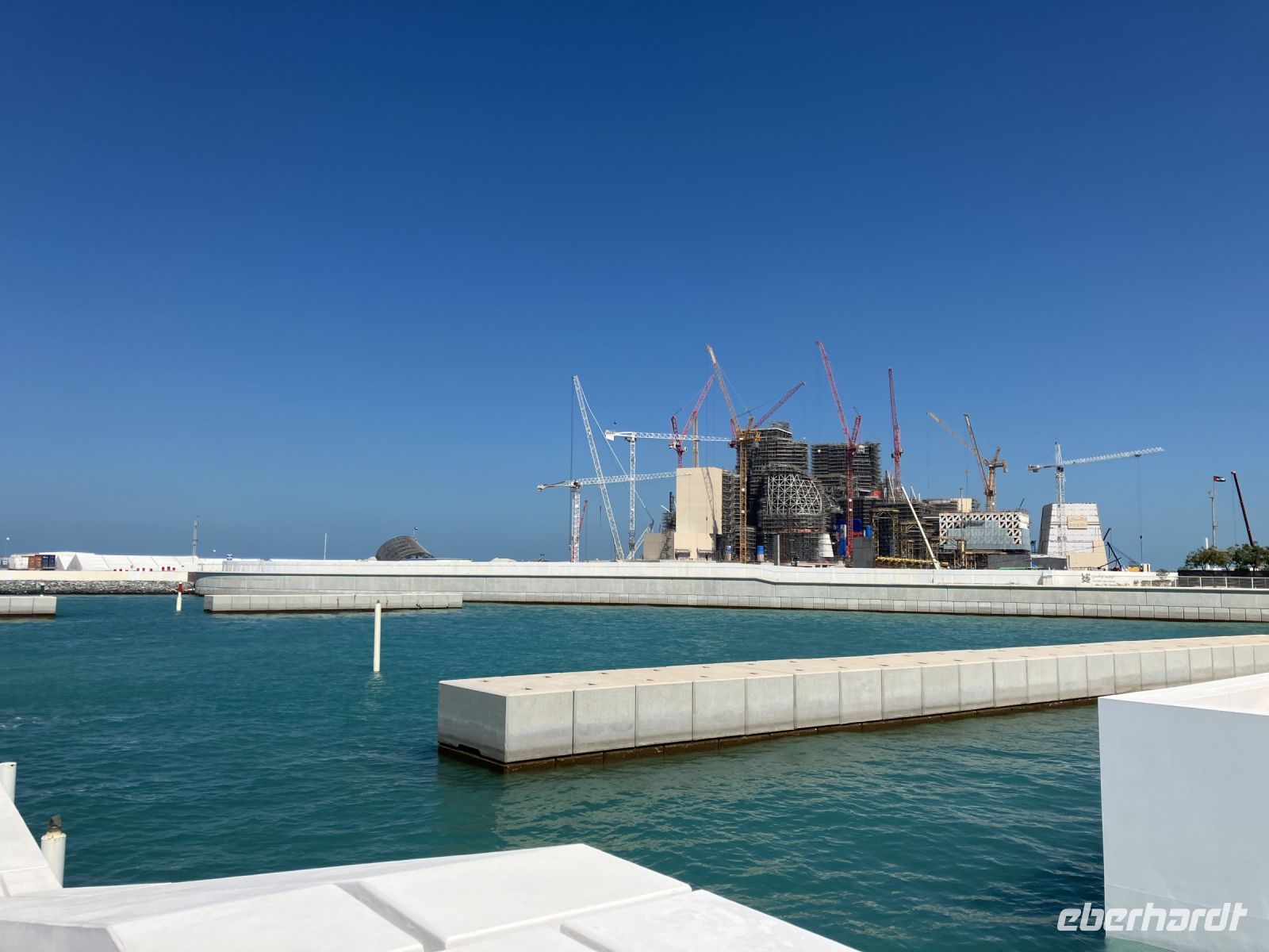 Gleich neben Yas Island befindet sich Saadiyat Island, die Insel der Glückseligkeit. Hier ist ein imposantes Kulturzentrum im Entstehen, welches Abu Dhabi als Kulturmetropole weltbekannt machen soll. Überall wird gebaut. Kein Kran steht still.
