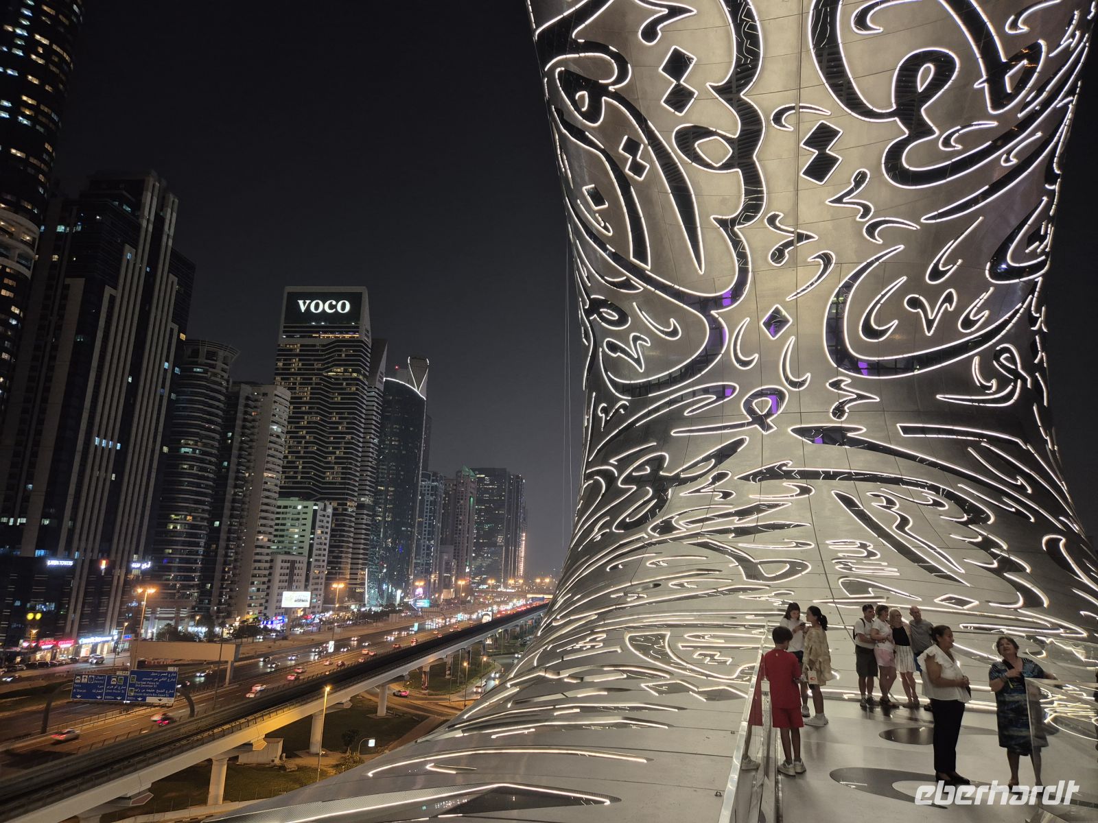 Darüber hinaus geht es im Zukunftsmuseum um wichtige Themen wie künstliche Intelligenz, Mobilität, Bauen und Wohnen, Reparatur menschengemachter Naturschäden u. a. m. Man kann auch eine Plattform draußen im Ring des Gebäudes betreten. Von hier aus bieten sich tolle Perspektiven auf Teile des Gebäudes und auf die Shaikh Zayed Road.