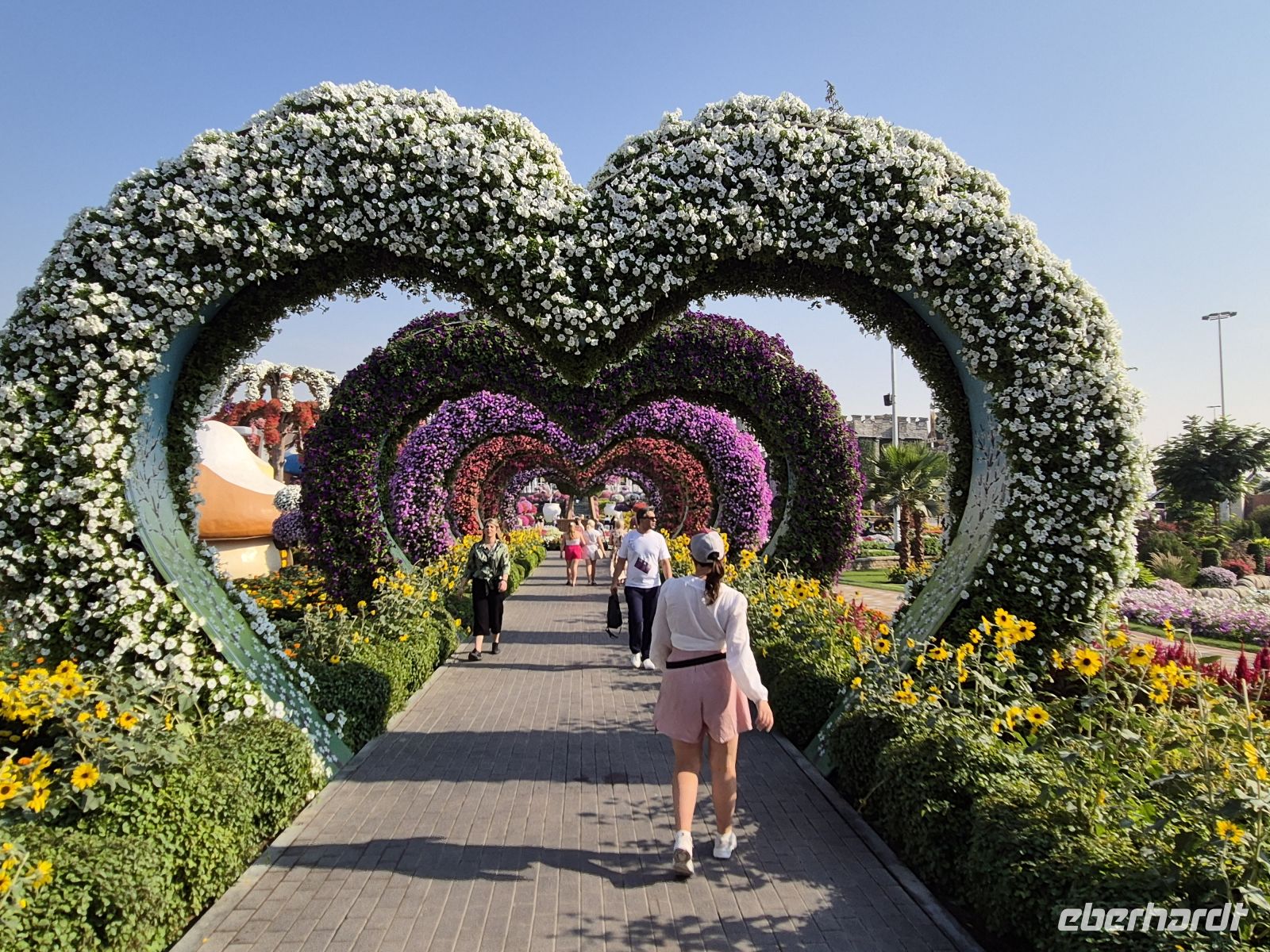 Aufgrund der Programmumstellung haben wir uns für heute Vormittag eine Pause verdient. Am frühen Nachmittag besuchen wir blühende Landschaften, eine einzigartige Gartenlandschaft. Es ist der Miracle Garden, welcher mit einem faszinierenden Blütenmeer die Gäste in seinen Bann zieht. Auf einer kreisförmigen Fläche sind auf über 70.000 Quadratmetern tolle Kunstwerke wie überdimensionale Pferdeköpfe, herzförmige Torbögen, bepflanzte Disney- und Tierfiguren, Tänzerinnen mit Blumenkleidern, Blumenteppiche u. v. m. zu sehen. Auch ein Airbus A380 in Originalgröße wurde aus Blumen gestaltet.