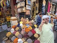 An einem der zahlreichen Gewürzladen erklärt Ibrahim das Angebot. Ibrahim ist auch gleich bei den Preisverhandlungen für unsere Einkäufe behilflich. Dann haben wir etwas Freizeit, um uns im Souk umzuschauen. Es gibt viel zu sehen, zum Beispiel die üppigen Auslagen in den Goldgeschäften. In einem Geschäft ist der größte Goldring der Welt ausgestellt.