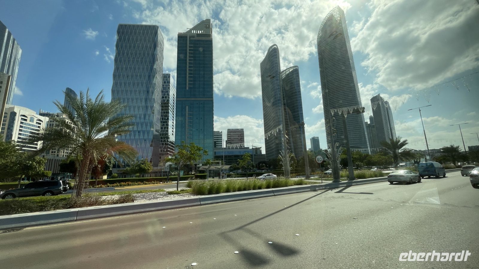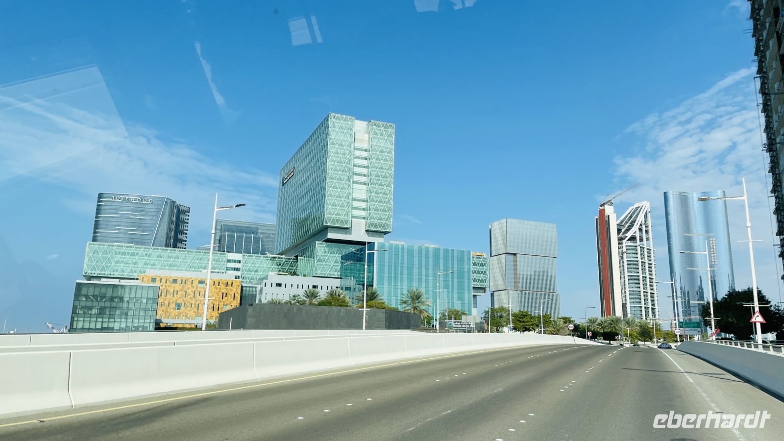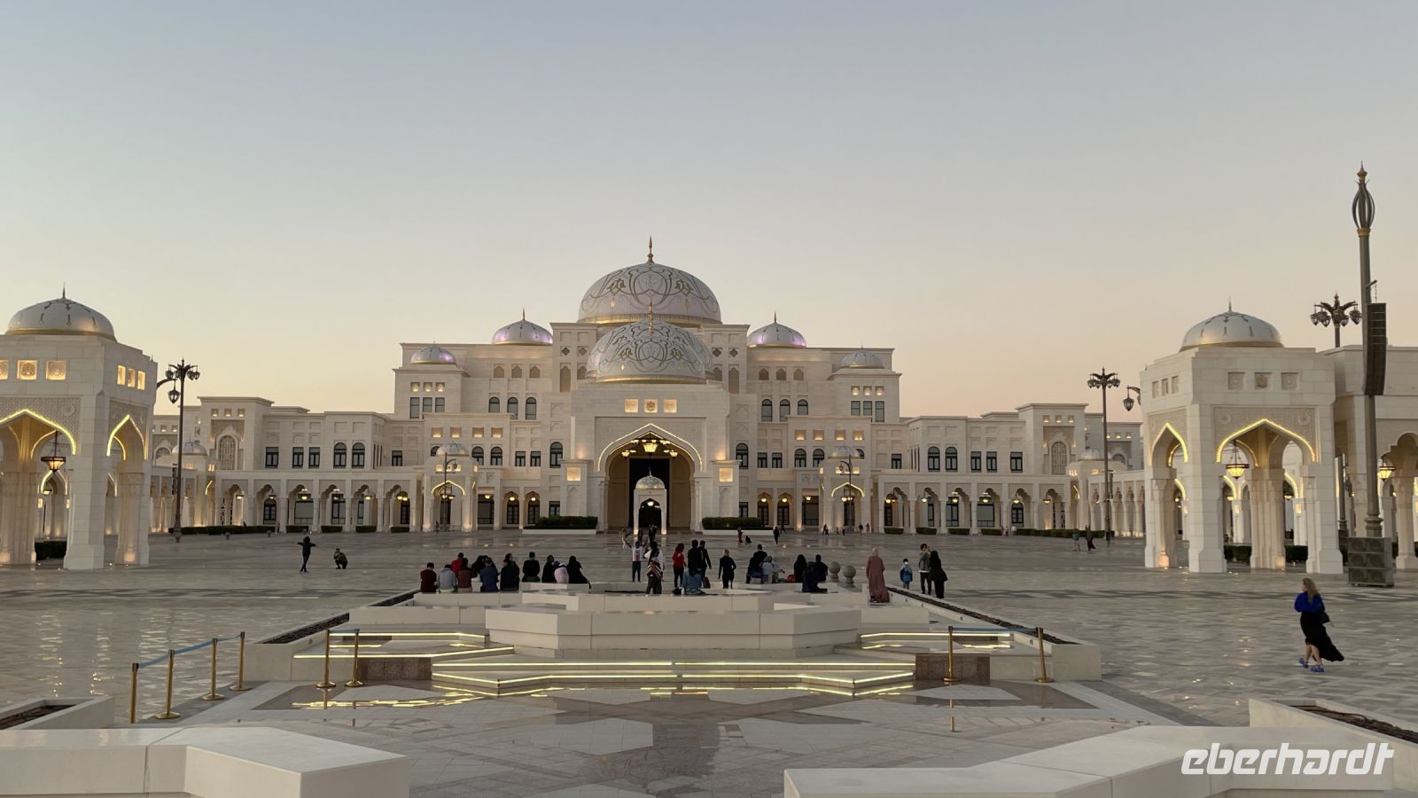 Unser zweiter Tag startet mit einem gediegenen Frühstück. Um 11:15 starten wir für unsere Stadtrundfahrt Teil 1 mit Reiseleiter Peter. Hierbei besuchen wir unter anderem die Formel1 Rennstrecke, wo wir sowohl die Tribünen, Boxengassen, Garagen sowie die VIP-Villen anschauen dürfen. Das Highlight zum Schluss, ist eine Rundfahrt auf der Rennstrecke. Am frühen Nachmittag geht es vorbei an Ferrari World und schließlich zum Louvre Museum. Dort legen wir erst einmal eine Mittagspause in einem Café ein, bevor wir mit unserem Reiseleiter einen zweistündigen Rundgang durch das Museum unternehmen. Gemeinsam bestaunen wir die großartigen Malereien, Mosaike, Artefakte und Skulpturen. Nach der Führung führt unsere Fahrt weiter entlang der Küstenpromenade Corniche zum Präsidenten Palast. Dort angekommen, bestaunen wir eine imposante Lichtershow, die an das Palast Gebäude projiziert wird. Im Palast selbst wohnt zu heutigen Zeiten niemand mehr. Es dient lediglich repräsentativen Zwecken bei staatlichen Besuchen. Nach diesen einmaligen Eindrücken fahren wir zurück in das Traders Hotel, wo das Abendessen bereits auf uns wartet.