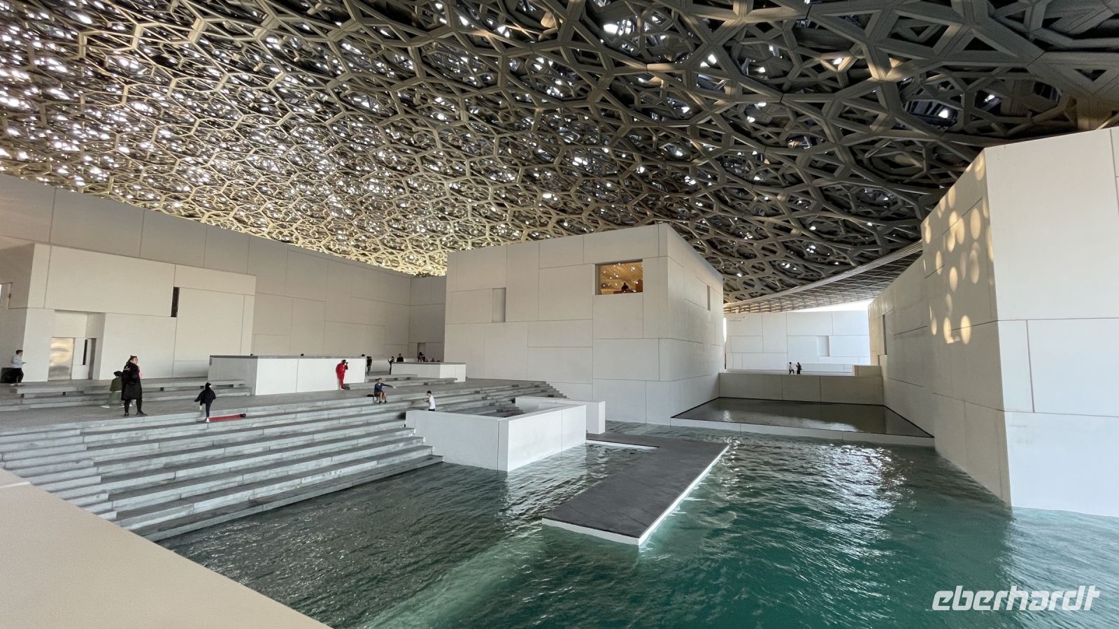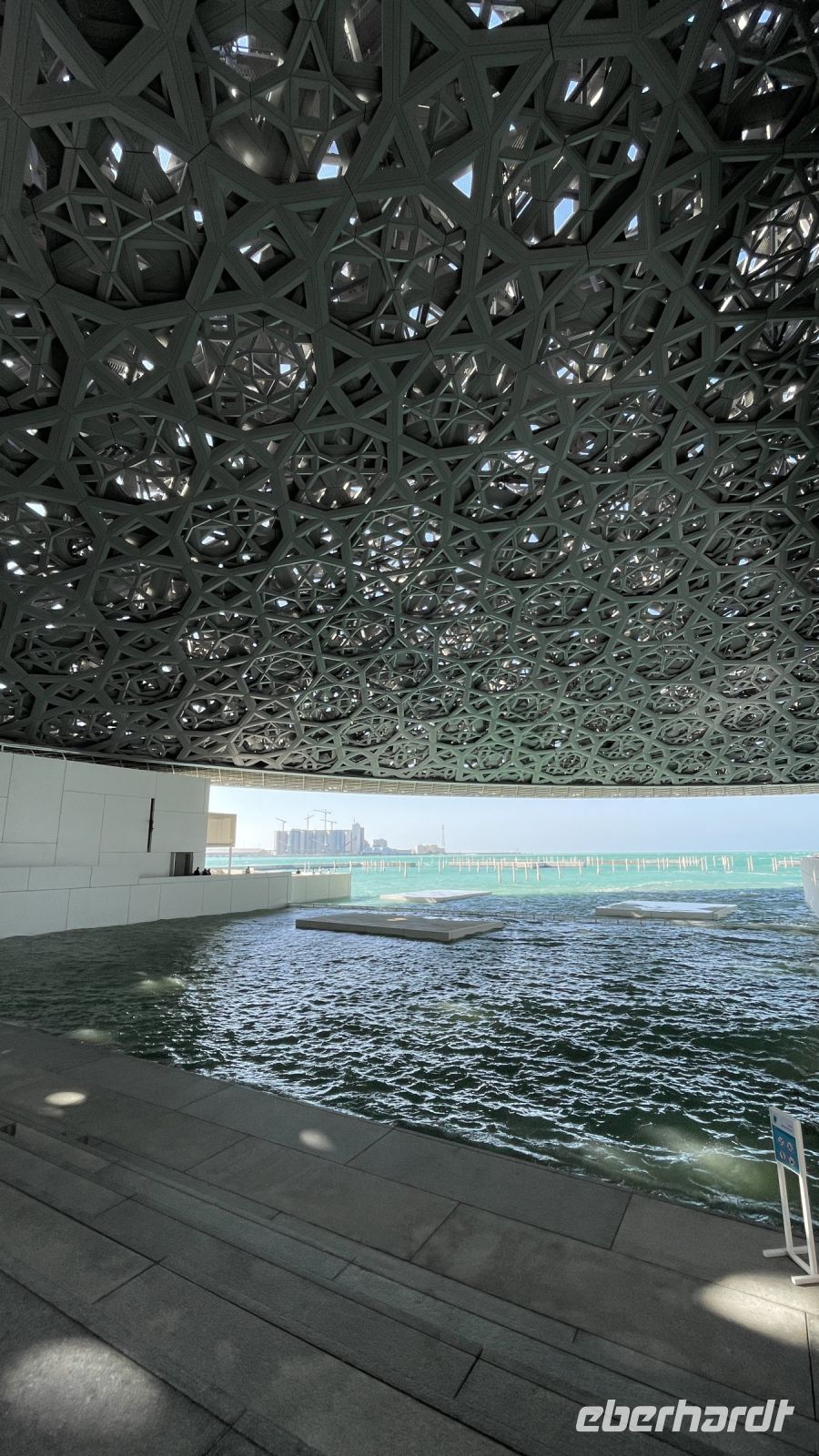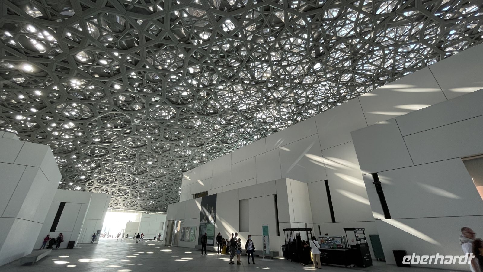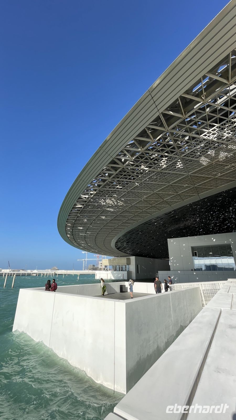 Unser zweiter Tag startet mit einem gediegenen Frühstück. Um 11:15 starten wir für unsere Stadtrundfahrt Teil 1 mit Reiseleiter Peter. Hierbei besuchen wir unter anderem die Formel1 Rennstrecke, wo wir sowohl die Tribünen, Boxengassen, Garagen sowie die VIP-Villen anschauen dürfen. Das Highlight zum Schluss, ist eine Rundfahrt auf der Rennstrecke. Am frühen Nachmittag geht es vorbei an Ferrari World und schließlich zum Louvre Museum. Dort legen wir erst einmal eine Mittagspause in einem Café ein, bevor wir mit unserem Reiseleiter einen zweistündigen Rundgang durch das Museum unternehmen. Gemeinsam bestaunen wir die großartigen Malereien, Mosaike, Artefakte und Skulpturen. Nach der Führung führt unsere Fahrt weiter entlang der Küstenpromenade Corniche zum Präsidenten Palast. Dort angekommen, bestaunen wir eine imposante Lichtershow, die an das Palast Gebäude projiziert wird. Im Palast selbst wohnt zu heutigen Zeiten niemand mehr. Es dient lediglich repräsentativen Zwecken bei staatlichen Besuchen. Nach diesen einmaligen Eindrücken fahren wir zurück in das Traders Hotel, wo das Abendessen bereits auf uns wartet.