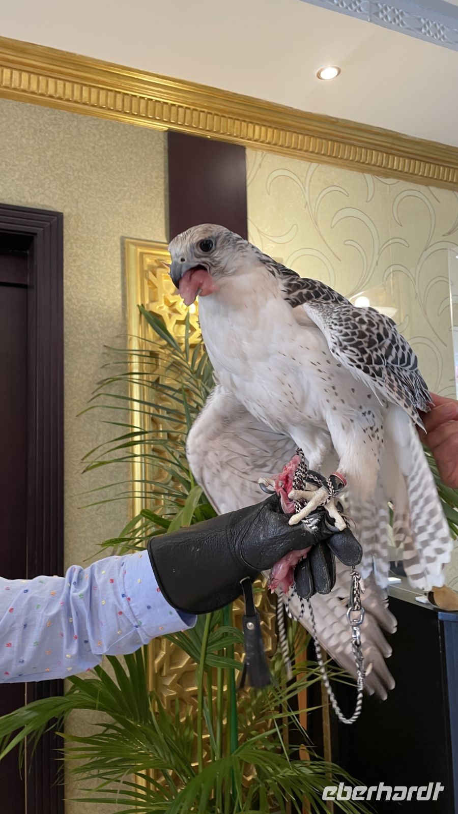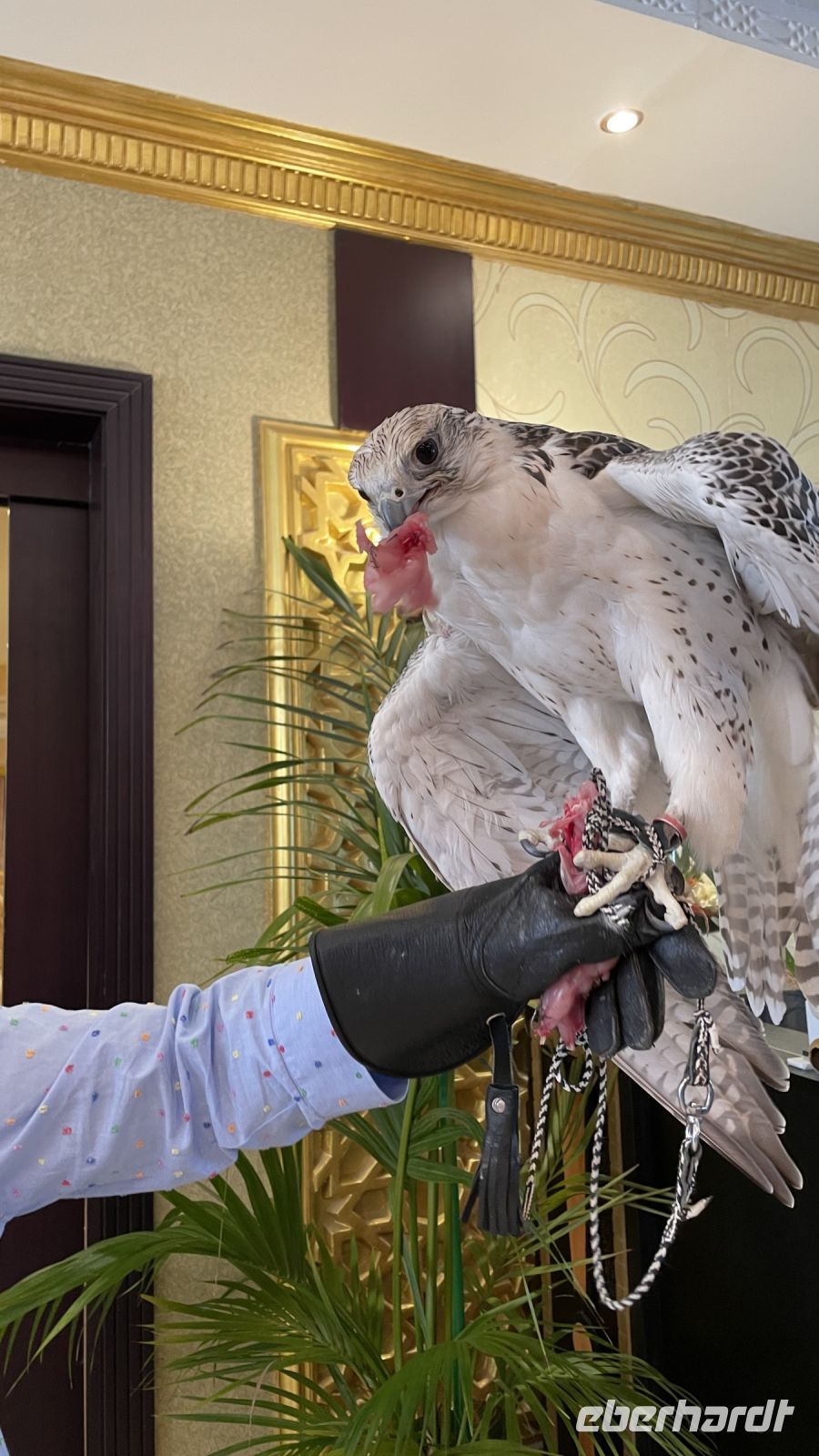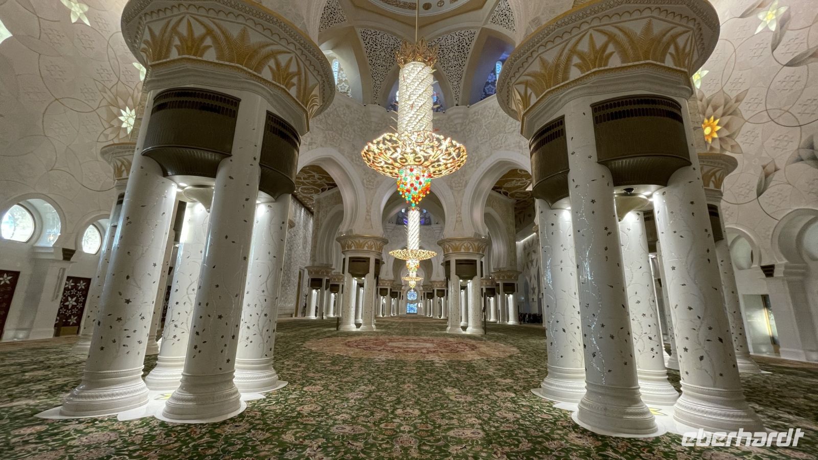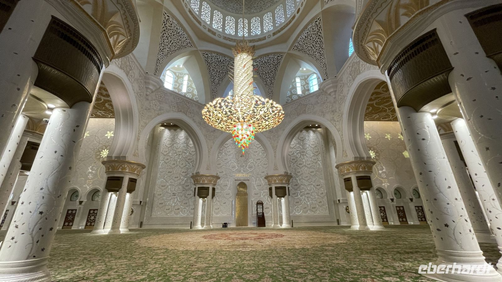 Der Tag beginnt abermals mit einem ausgewogenen Frühstück. Im Anschluss daran begeben wir uns zum Treffpunkt, wo bereits unser örtlicher Reiseleiter Peter auf uns wartet. Als erstes besuchen wir die Falkenklinik von Frau Dr. Müller – einer deutschen Tierärztin. Vor Ort werden wir vom Gästeführer Hasan herzlich begrüßt und durch die Klinik geführt. Wir dürfen sogar bei einer Routineuntersuchung über die Schultern schauen und erhalten dabei Erklärungen von den Tierpflegern. Anschließend besichtigen wir die Käfiganlagen der Falken sowie ein kleines Museum, in der man die Möglichkeit hat Fotos mit den Falken zu knipsen. Nach diesen einmaligen Eindrücken geht es zurück nach Abu Dhabi. Gegen späteren Mittag erreichen wir die „Heritage Village“, wo wir einen Rundgang einlegen und die imposante Skyline fotografisch festhalten. Weiter geht es zur „Marina Mall“, wo wir unsere Mittagspause einlegen. Gut gesättigt geht es weiter in Richtung Scheich-Zayid-Moschee. Dort angekommen spazieren wir unterirdisch durch eine große Mall und schließlich durch die Sicherheitskontrolle. Nach einem weiteren langen Gang erreichen endlich die 4. größte Moschee der Welt. Auch hier unternehmen wir mit Peter einen ausführlichen Rundgang. Leider sind über Weihnachten und Silvester besonders viele Touristen in der Stadt, weshalb die meisten Sehenswürdigkeiten sehr gut besucht sind. Beeindruckt von so vielen, diversen Eindrücken, fahren wir zurück ins Hotel. Allerdings endet damit unser Tag noch nicht, denn ein weiteres Highlight wartet noch auf uns – eine Dhau Bootsfahrt inkl. 4 Gänge-Menü an Board. Wir fahren ca. 2 Stunden entlang der Corniche und blicken auf die eindrucksvolle Skyline.
