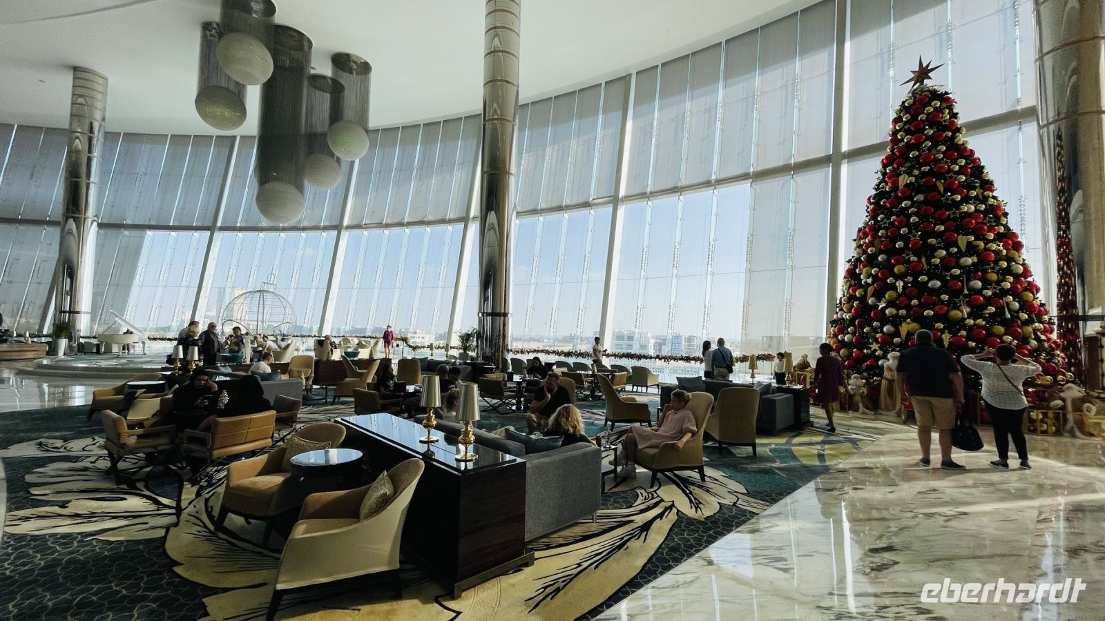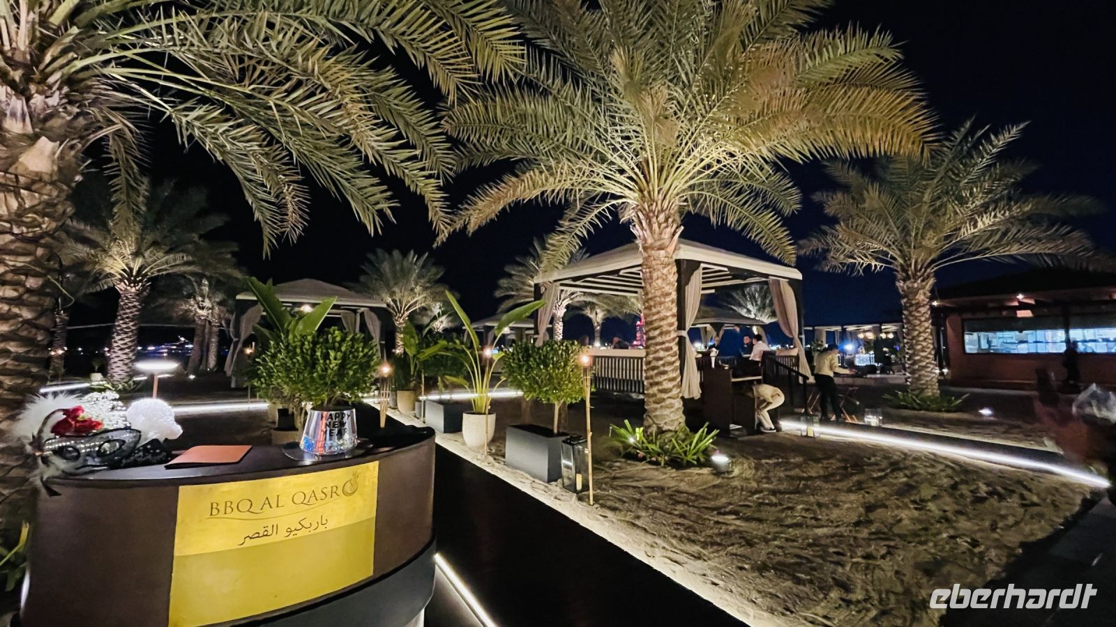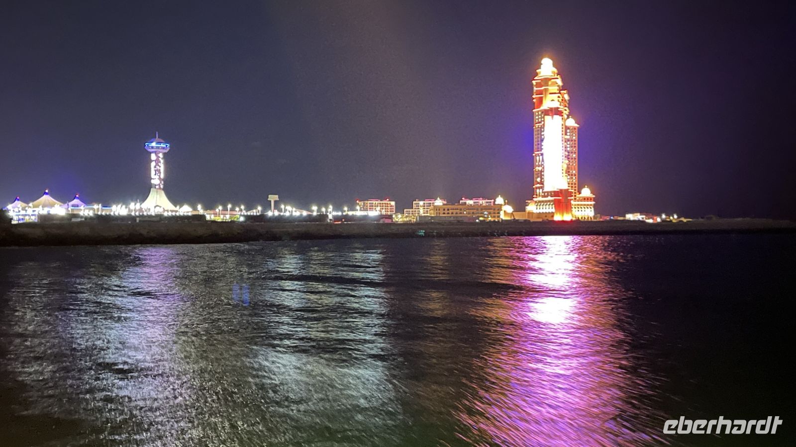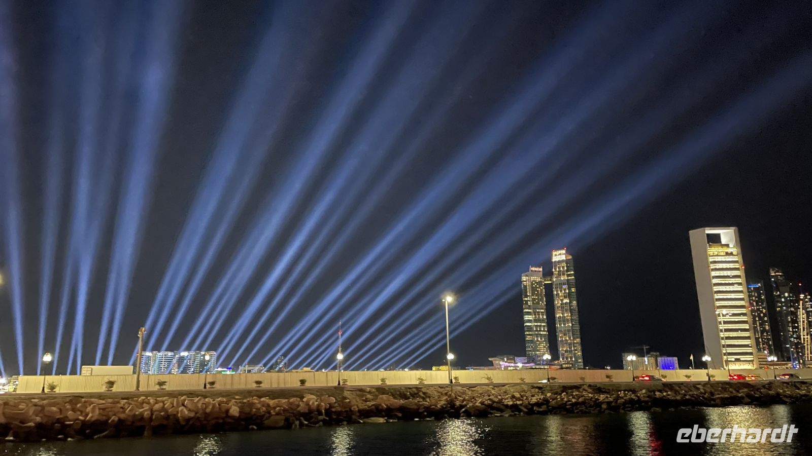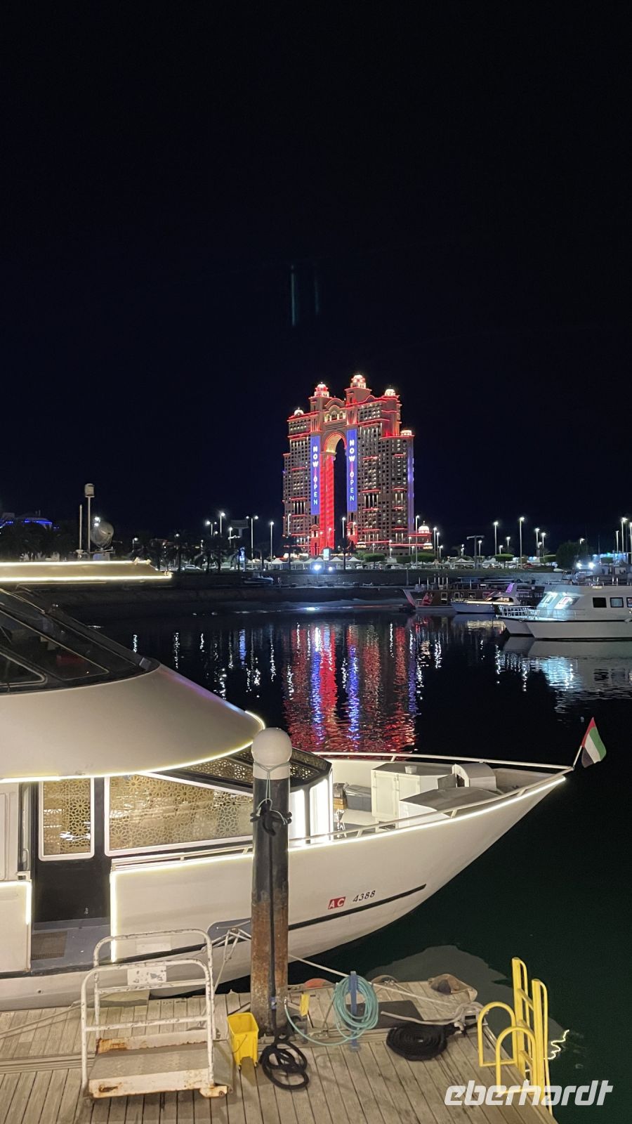 An unserem heutigen freien Tag können alle in Ruhe ausschlafen und wer möchte, der kann mit mir auf eine weitere Bootstour kommen. Diese führt uns noch einmal entlang der Corniche, diesmal bei Tageslicht. Bis zum Treffpunkt am frühen Abend für die Silvesterfeier steht eine individuelle Ausgestaltung des Nachmittags auf dem Plan. Um 18:30Uhr treffen wir uns wieder in der Lobby. Der Dresscode für unsere Silvesternacht lautet – SCHICK-. Wir machen uns auf dem Weg zum Emirates Palace Hotel, wo wir bereits mit Champagner empfangen werden. Danach begeben wir uns zu unseren Tischen im Außenbereich, wo uns nicht nur ein imposantes Buffet mit Lobster, Kaviar, Wagyu-Beef uvm. sondern auch ein einmaliges Show Programm geboten wird. Wir sitzen an zwei Tischen und genießen Speiß- & Trank. Um das Feuerwerk um 00:00 Neujahres-Beginn bestaunen zu können, gehen wir an den Strand. Und dann heißt es… 3,2,1 – frohes neues Jahr! Das Feuerwerk ist einfach gigantisch! Alle sind begeistert! Nun geht die Party richtig los, mit einer großartigen Musikband und vielen Möglichkeiten zu tanzen. Gegen 1:30Uhr werden wir wieder mit dem Bus abgeholt und zurück in das Traders Hotel gebracht. Ein toller Start in das neue Jahr. :-)