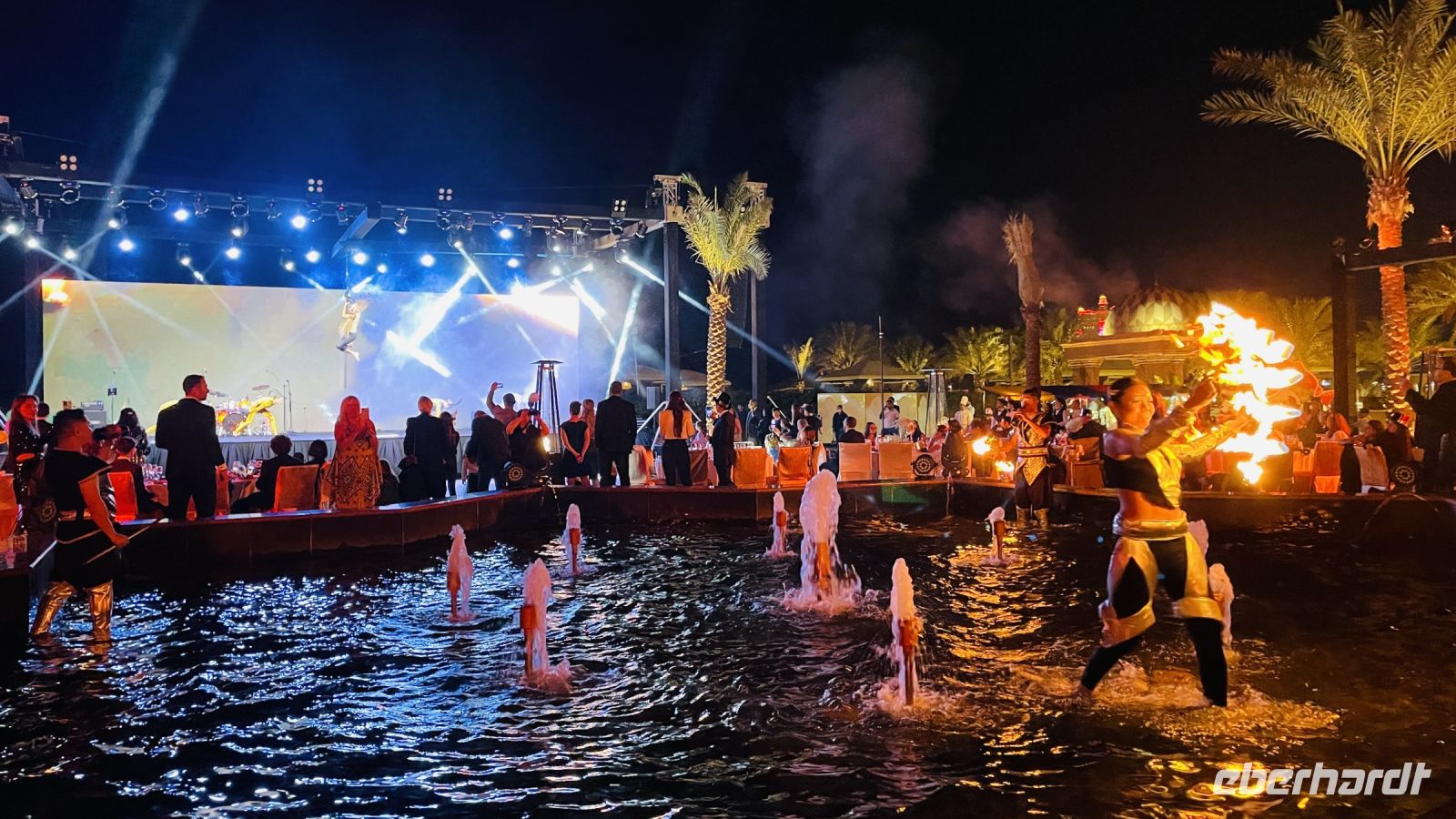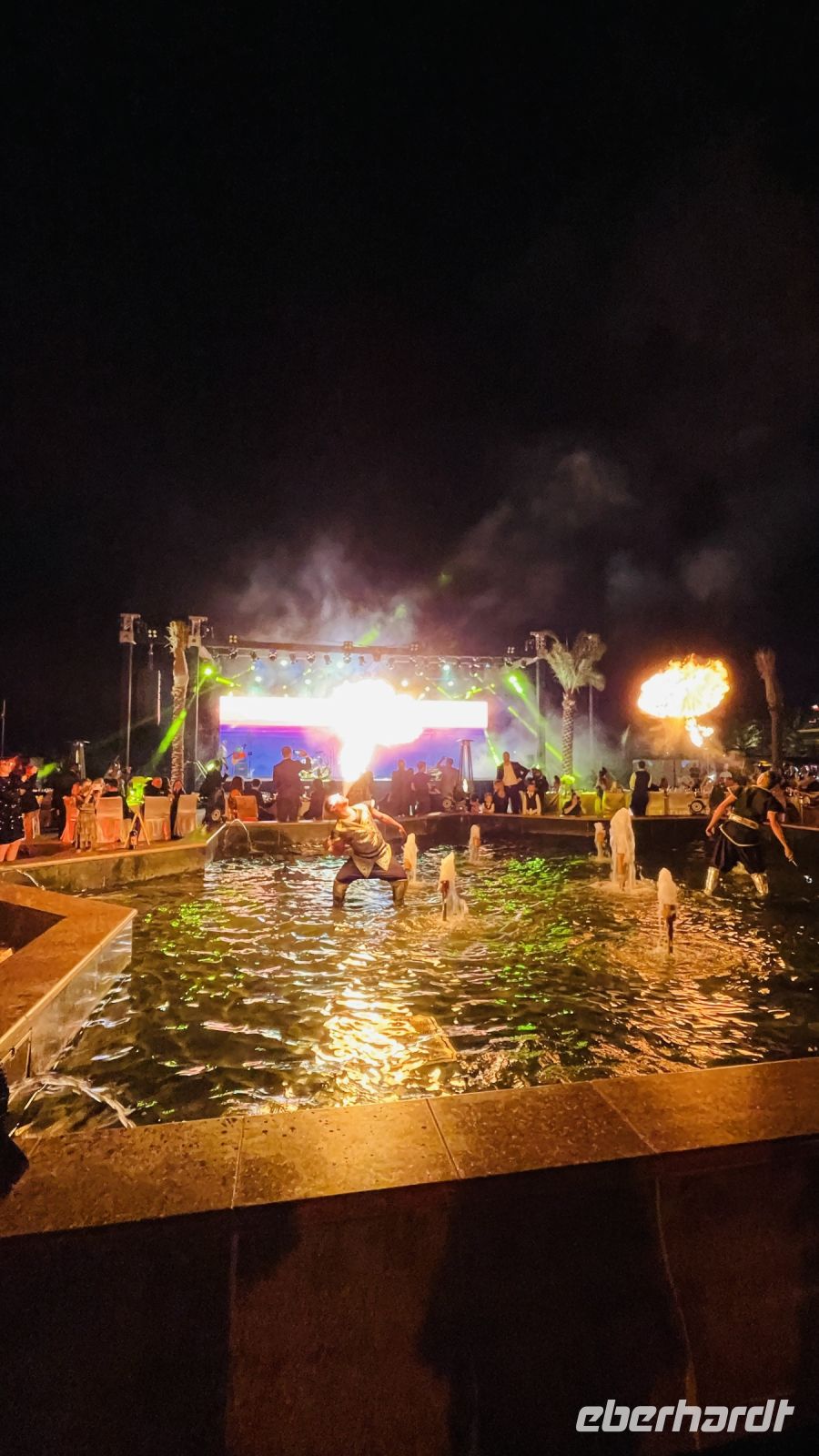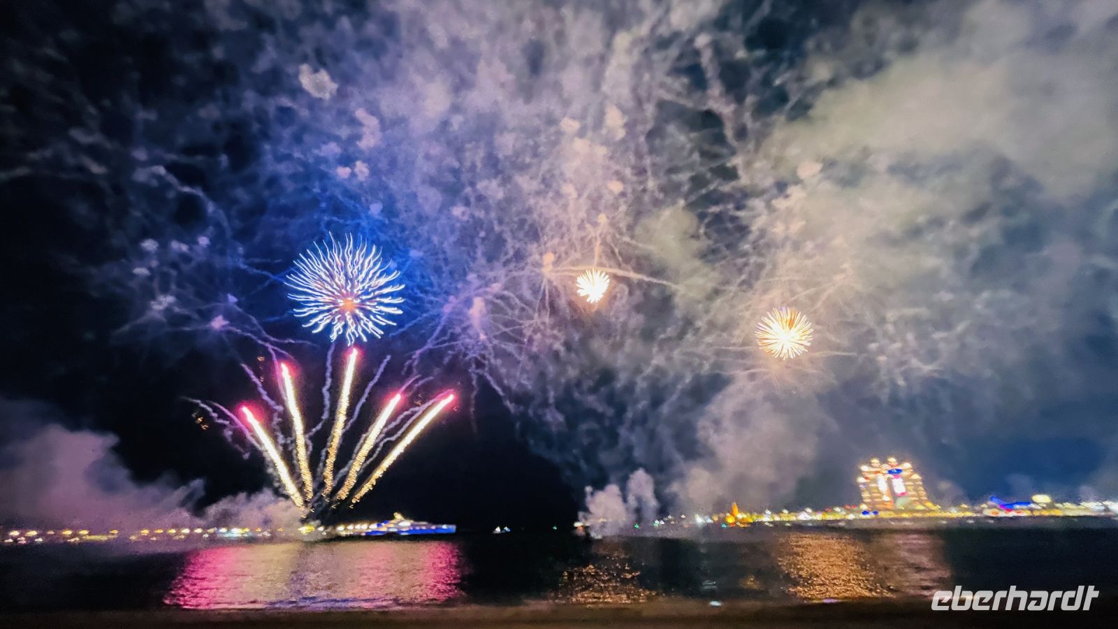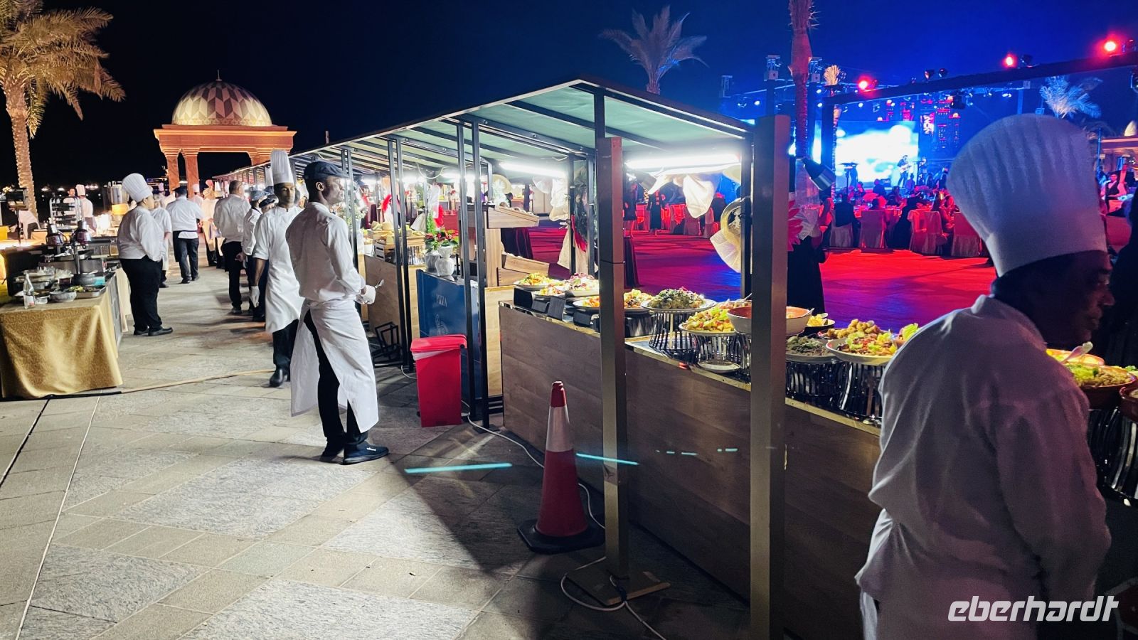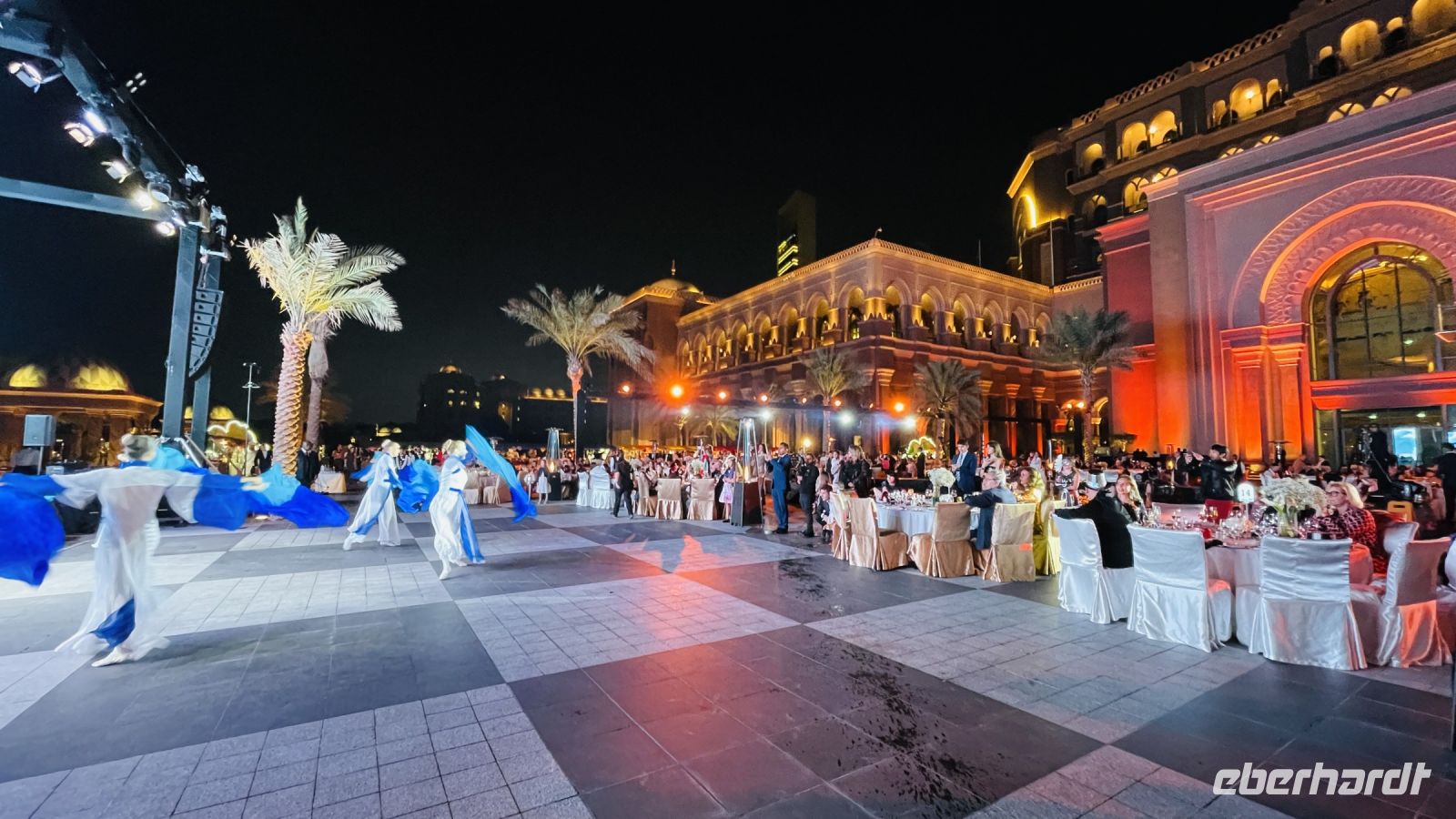 An unserem heutigen freien Tag können alle in Ruhe ausschlafen und wer möchte, der kann mit mir auf eine weitere Bootstour kommen. Diese führt uns noch einmal entlang der Corniche, diesmal bei Tageslicht. Bis zum Treffpunkt am frühen Abend für die Silvesterfeier steht eine individuelle Ausgestaltung des Nachmittags auf dem Plan. Um 18:30Uhr treffen wir uns wieder in der Lobby. Der Dresscode für unsere Silvesternacht lautet – SCHICK-. Wir machen uns auf dem Weg zum Emirates Palace Hotel, wo wir bereits mit Champagner empfangen werden. Danach begeben wir uns zu unseren Tischen im Außenbereich, wo uns nicht nur ein imposantes Buffet mit Lobster, Kaviar, Wagyu-Beef uvm. sondern auch ein einmaliges Show Programm geboten wird. Wir sitzen an zwei Tischen und genießen Speiß- & Trank. Um das Feuerwerk um 00:00 Neujahres-Beginn bestaunen zu können, gehen wir an den Strand. Und dann heißt es… 3,2,1 – frohes neues Jahr! Das Feuerwerk ist einfach gigantisch! Alle sind begeistert! Nun geht die Party richtig los, mit einer großartigen Musikband und vielen Möglichkeiten zu tanzen. Gegen 1:30Uhr werden wir wieder mit dem Bus abgeholt und zurück in das Traders Hotel gebracht. Ein toller Start in das neue Jahr. :-)