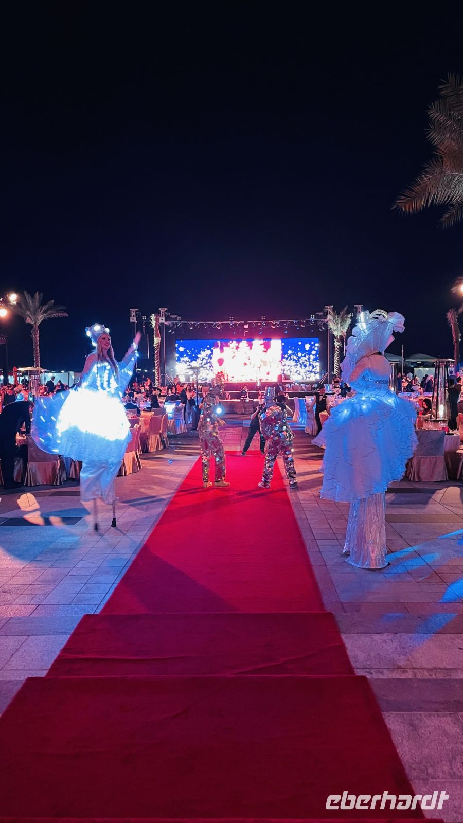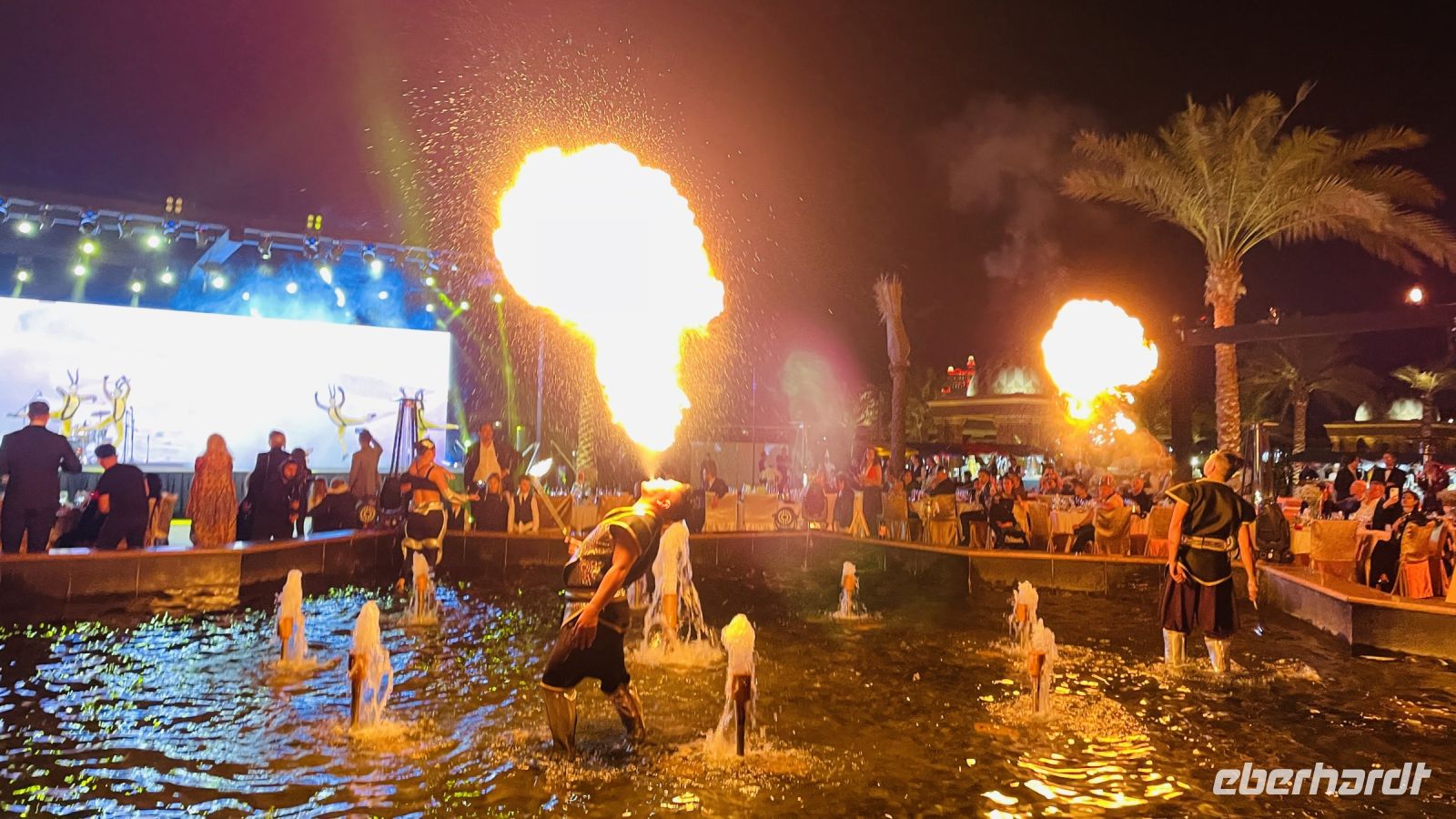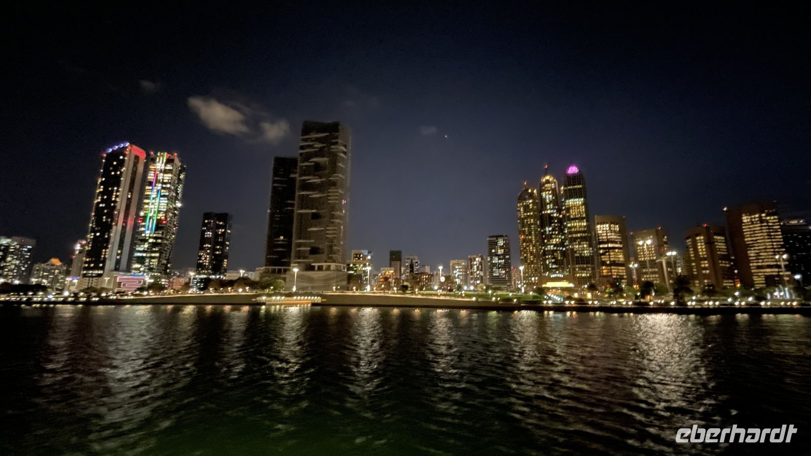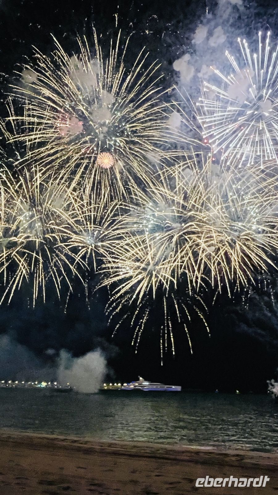 An unserem heutigen freien Tag können alle in Ruhe ausschlafen und wer möchte, der kann mit mir auf eine weitere Bootstour kommen. Diese führt uns noch einmal entlang der Corniche, diesmal bei Tageslicht. Bis zum Treffpunkt am frühen Abend für die Silvesterfeier steht eine individuelle Ausgestaltung des Nachmittags auf dem Plan. Um 18:30Uhr treffen wir uns wieder in der Lobby. Der Dresscode für unsere Silvesternacht lautet – SCHICK-. Wir machen uns auf dem Weg zum Emirates Palace Hotel, wo wir bereits mit Champagner empfangen werden. Danach begeben wir uns zu unseren Tischen im Außenbereich, wo uns nicht nur ein imposantes Buffet mit Lobster, Kaviar, Wagyu-Beef uvm. sondern auch ein einmaliges Show Programm geboten wird. Wir sitzen an zwei Tischen und genießen Speiß- & Trank. Um das Feuerwerk um 00:00 Neujahres-Beginn bestaunen zu können, gehen wir an den Strand. Und dann heißt es… 3,2,1 – frohes neues Jahr! Das Feuerwerk ist einfach gigantisch! Alle sind begeistert! Nun geht die Party richtig los, mit einer großartigen Musikband und vielen Möglichkeiten zu tanzen. Gegen 1:30Uhr werden wir wieder mit dem Bus abgeholt und zurück in das Traders Hotel gebracht. Ein toller Start in das neue Jahr. :-)