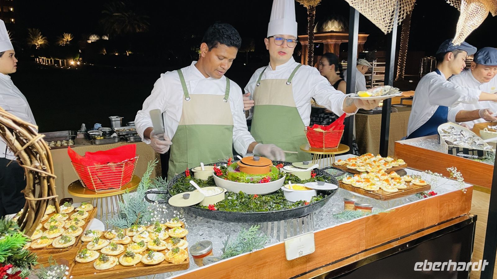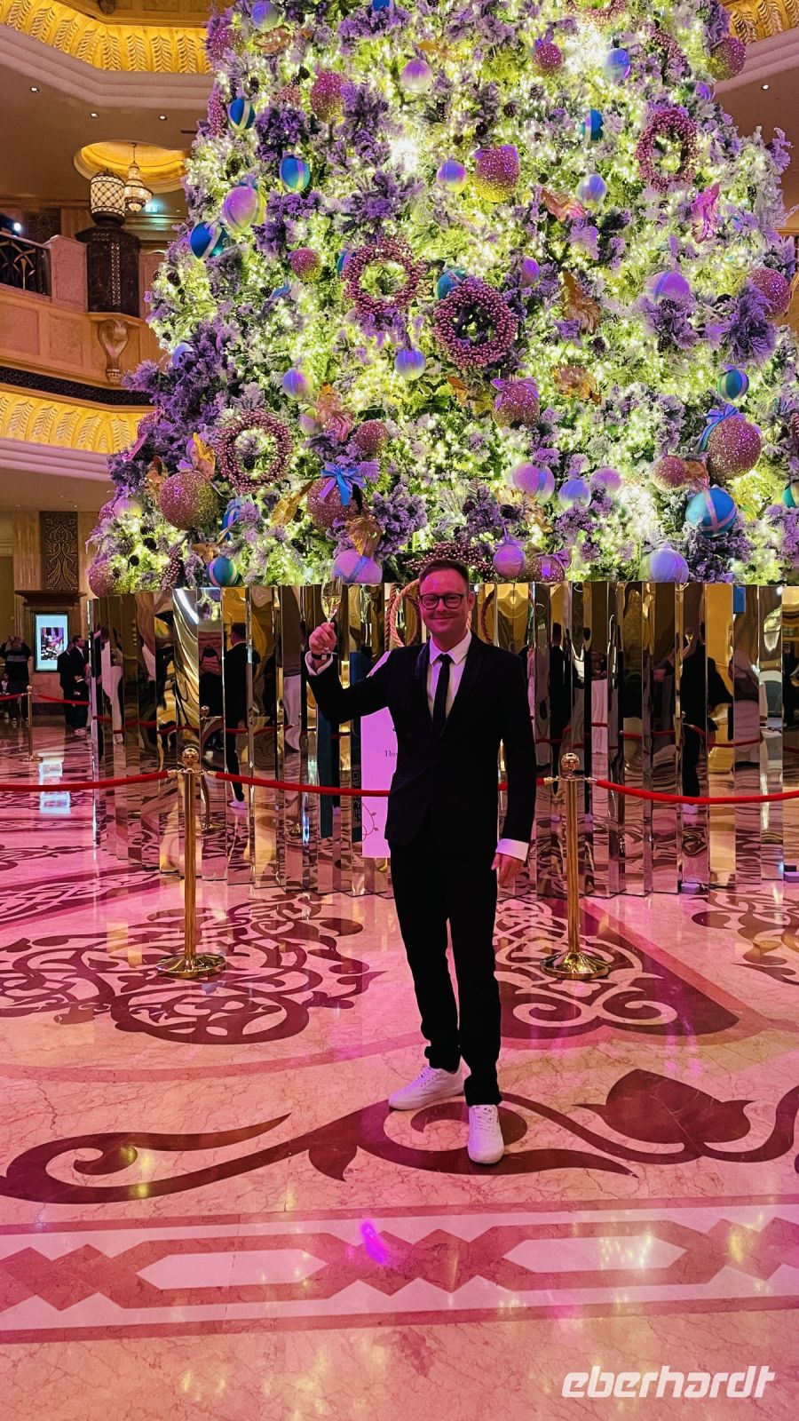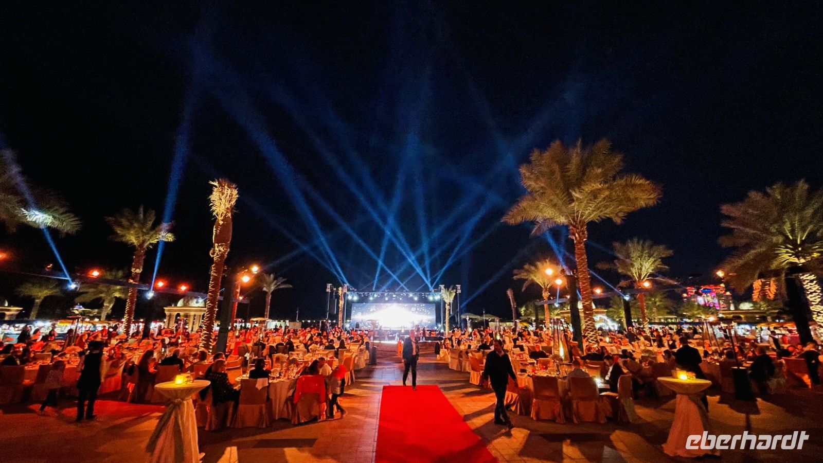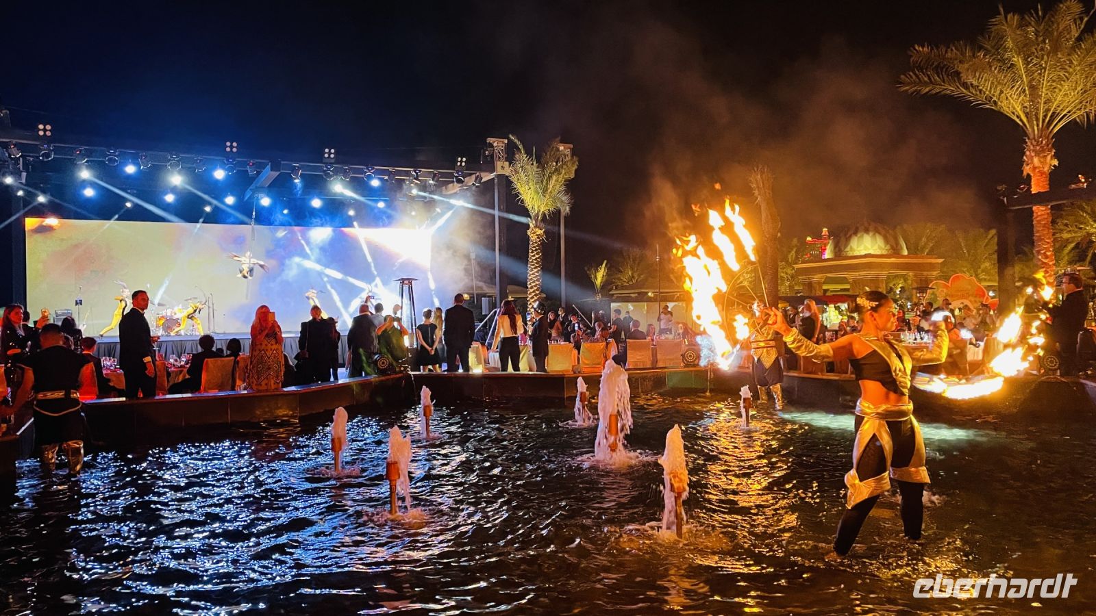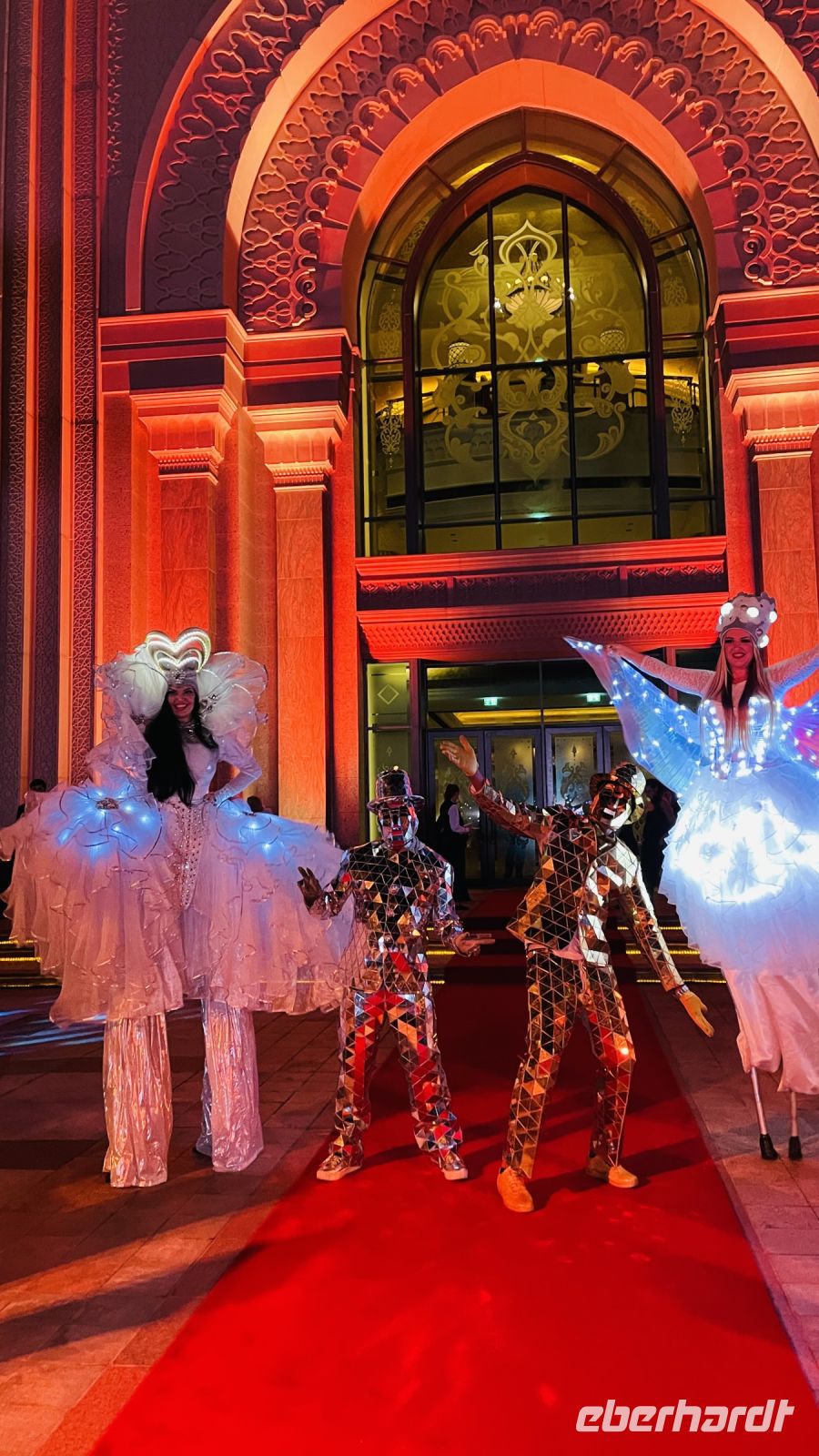 An unserem heutigen freien Tag können alle in Ruhe ausschlafen und wer möchte, der kann mit mir auf eine weitere Bootstour kommen. Diese führt uns noch einmal entlang der Corniche, diesmal bei Tageslicht. Bis zum Treffpunkt am frühen Abend für die Silvesterfeier steht eine individuelle Ausgestaltung des Nachmittags auf dem Plan. Um 18:30Uhr treffen wir uns wieder in der Lobby. Der Dresscode für unsere Silvesternacht lautet – SCHICK-. Wir machen uns auf dem Weg zum Emirates Palace Hotel, wo wir bereits mit Champagner empfangen werden. Danach begeben wir uns zu unseren Tischen im Außenbereich, wo uns nicht nur ein imposantes Buffet mit Lobster, Kaviar, Wagyu-Beef uvm. sondern auch ein einmaliges Show Programm geboten wird. Wir sitzen an zwei Tischen und genießen Speiß- & Trank. Um das Feuerwerk um 00:00 Neujahres-Beginn bestaunen zu können, gehen wir an den Strand. Und dann heißt es… 3,2,1 – frohes neues Jahr! Das Feuerwerk ist einfach gigantisch! Alle sind begeistert! Nun geht die Party richtig los, mit einer großartigen Musikband und vielen Möglichkeiten zu tanzen. Gegen 1:30Uhr werden wir wieder mit dem Bus abgeholt und zurück in das Traders Hotel gebracht. Ein toller Start in das neue Jahr. :-)