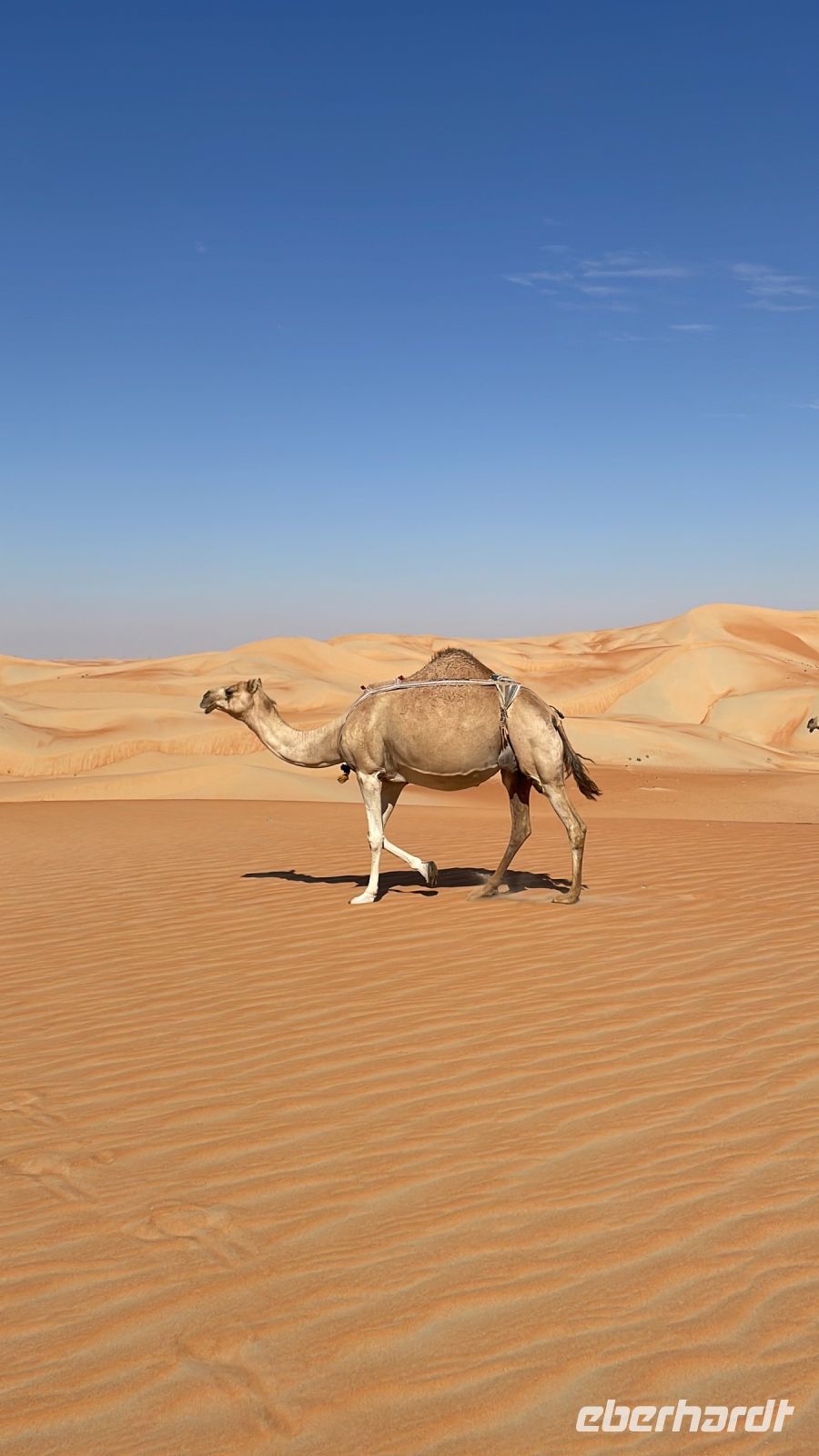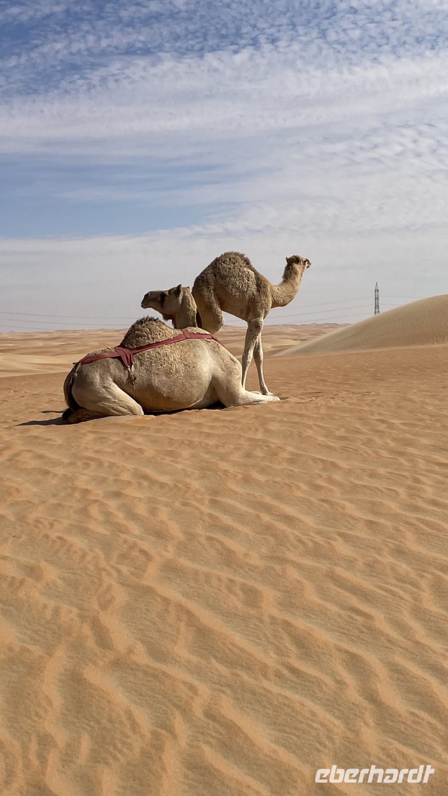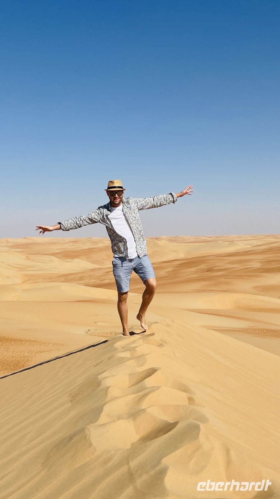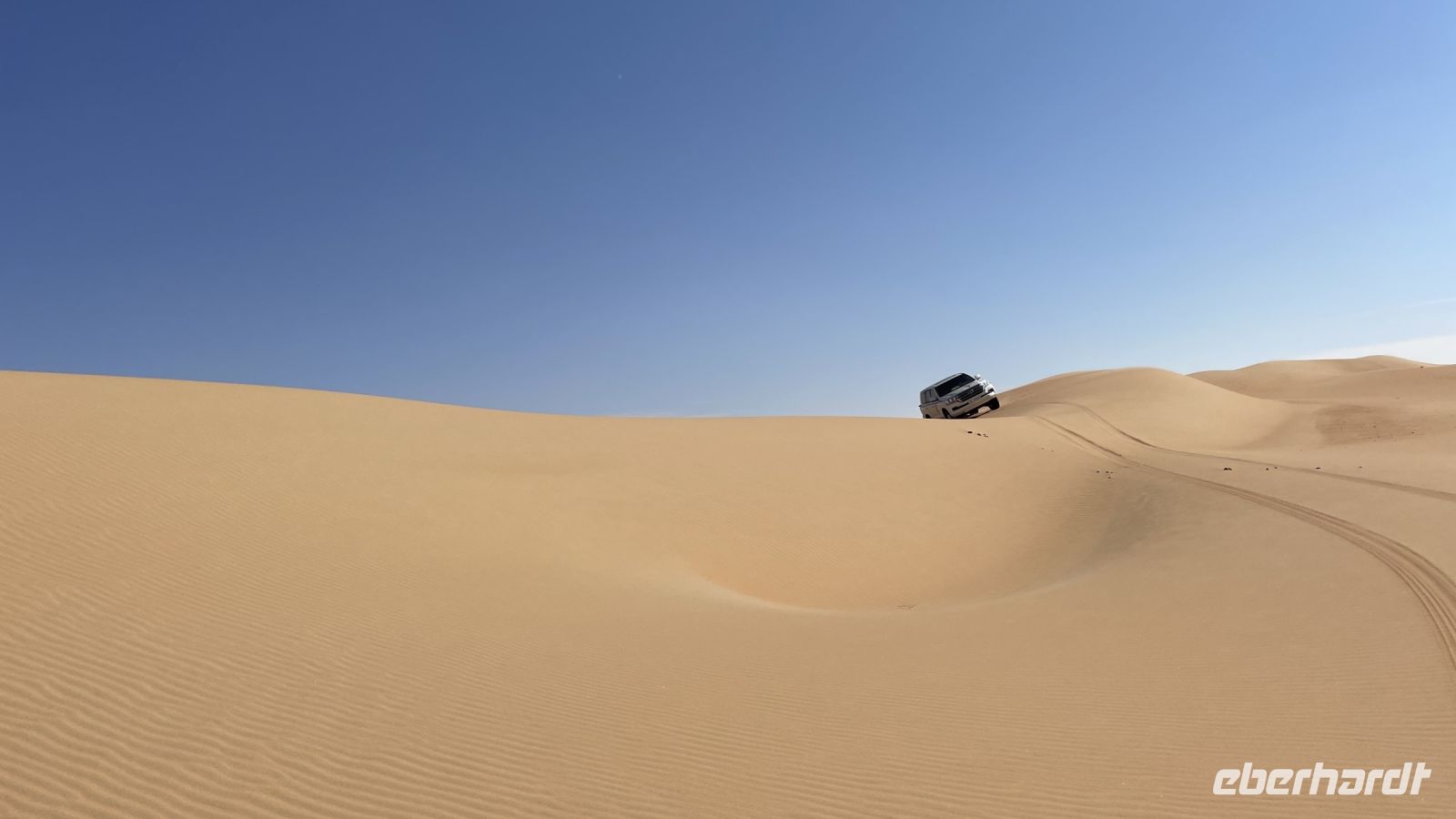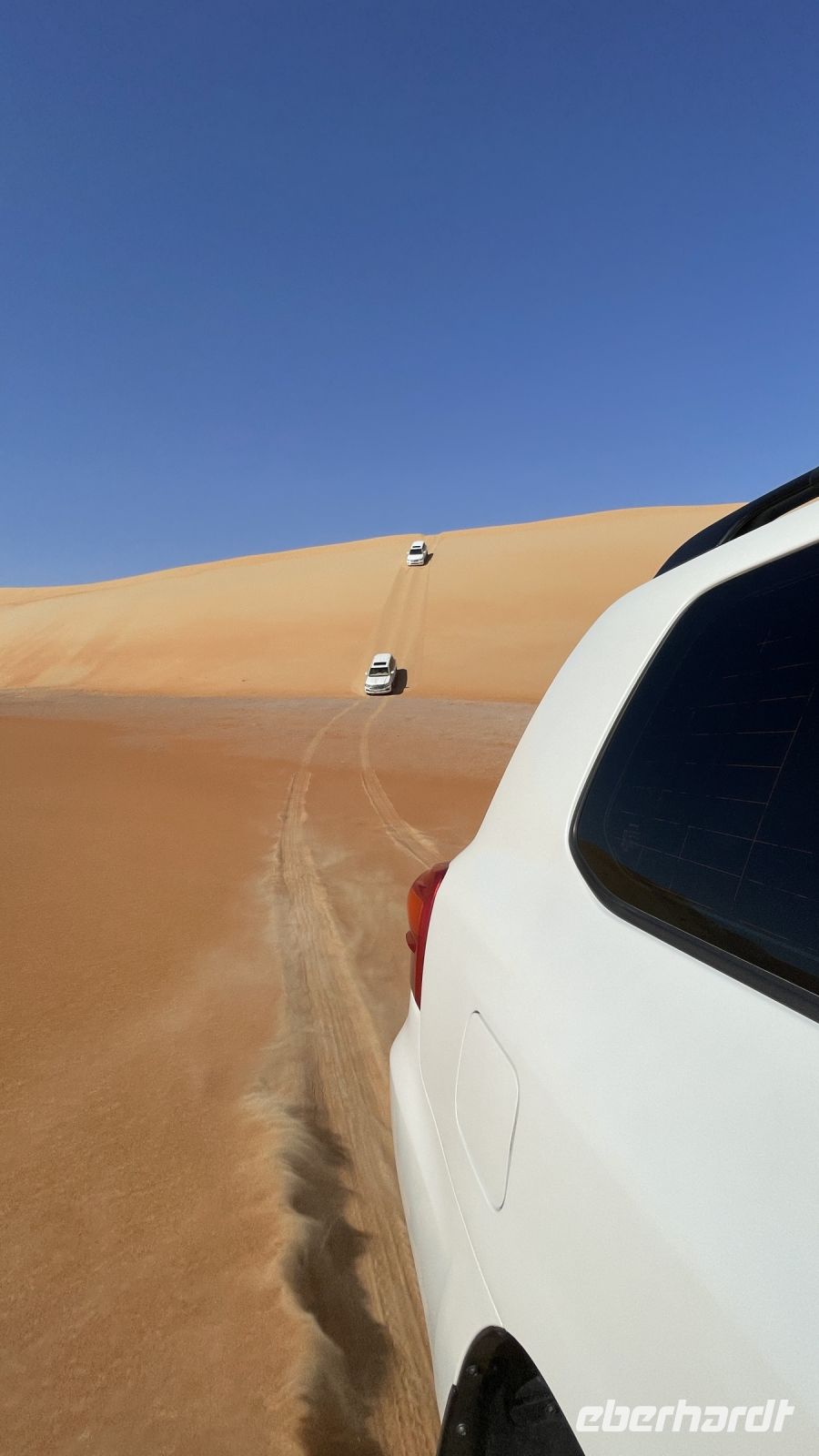 Nach dem Frühstück starten wir mit 3 Jeeps zur Wüstensafari. Wir fahren ca. 1,5 Stunden und legen auf der Hälfte der Strecke einen Besuch im Oldtimer-Museum ein. Dort bestaunen wir von Cadillac bis Trabi die schönsten Autos der letzten 100 Jahre. Danach geht es weiter für ca. 30min. bis wir die Sanddünen erreichen. Nach einem ersten Fotostopp und dem ablassen der Luft aus den Reifen, starten wir nun mit unserer aufregenden Dünenfahrt. Wir erkunden die sandige Landschaft und haben stets genügend Stopps, um die tollen Momente fotografisch festhalten zu können. Nach zwei Stunden erreichen wir eine kleine Oase, die ein pakistanischer Bewohner bewirtschaftet und bewässert. Dort können wir auch unser Mittagessen genießen. Gestärkt von dem Essen geht es weiter zum nächsten Fotostopp – einer Kamelfarm. Die meisten Kamele bewegen sich tagsüber frei in der Wüste und kommen abends zum Essen und Trinken in die Oase bzw. in die Kamelfarm zurück. Danach geht die Entdeckungs-Tour weiter, bis wir schließlich nach einer halben Stunde wieder „festen Boden“ unter den Füßen haben werden. Zum Schluss besuchen wir noch in der Liwa Oasa eine kleine Festungsanlage, die von der Herrscher Familie vor mehreren hundert Jahren zum Schutz der Oasa errichtet wurde. Nach so vielen tollen Eindrücken, fahren wir ca. 2 Stunden zurück in unser Hotel.