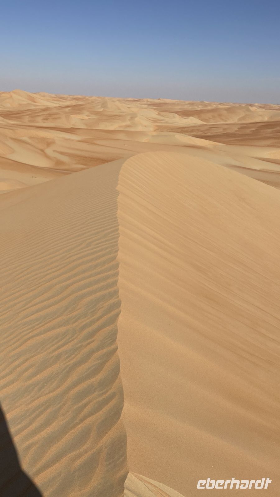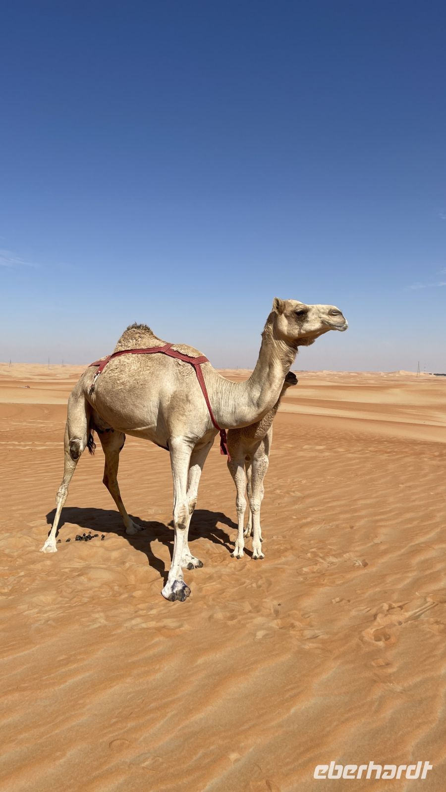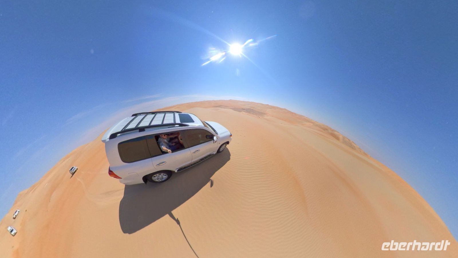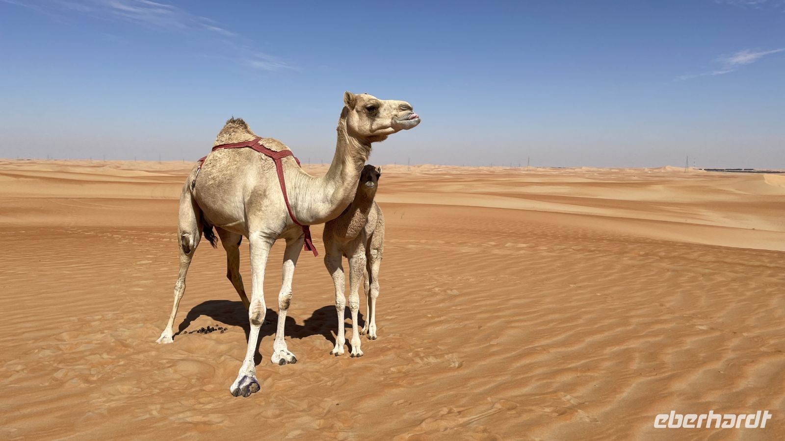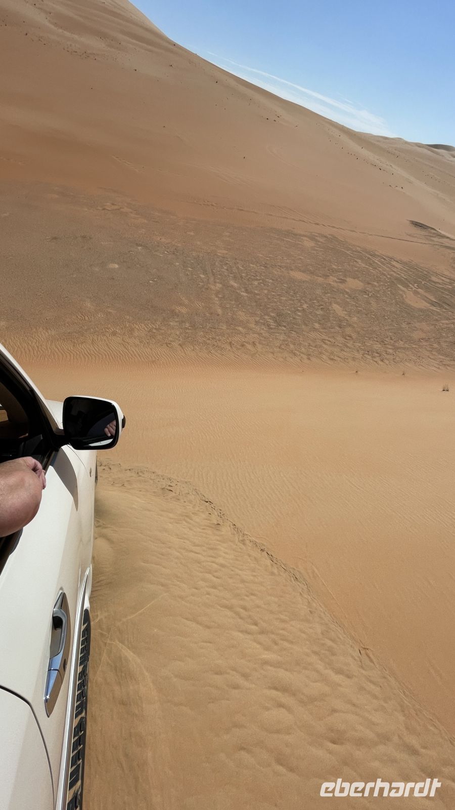 Nach dem Frühstück starten wir mit 3 Jeeps zur Wüstensafari. Wir fahren ca. 1,5 Stunden und legen auf der Hälfte der Strecke einen Besuch im Oldtimer-Museum ein. Dort bestaunen wir von Cadillac bis Trabi die schönsten Autos der letzten 100 Jahre. Danach geht es weiter für ca. 30min. bis wir die Sanddünen erreichen. Nach einem ersten Fotostopp und dem ablassen der Luft aus den Reifen, starten wir nun mit unserer aufregenden Dünenfahrt. Wir erkunden die sandige Landschaft und haben stets genügend Stopps, um die tollen Momente fotografisch festhalten zu können. Nach zwei Stunden erreichen wir eine kleine Oase, die ein pakistanischer Bewohner bewirtschaftet und bewässert. Dort können wir auch unser Mittagessen genießen. Gestärkt von dem Essen geht es weiter zum nächsten Fotostopp – einer Kamelfarm. Die meisten Kamele bewegen sich tagsüber frei in der Wüste und kommen abends zum Essen und Trinken in die Oase bzw. in die Kamelfarm zurück. Danach geht die Entdeckungs-Tour weiter, bis wir schließlich nach einer halben Stunde wieder „festen Boden“ unter den Füßen haben werden. Zum Schluss besuchen wir noch in der Liwa Oasa eine kleine Festungsanlage, die von der Herrscher Familie vor mehreren hundert Jahren zum Schutz der Oasa errichtet wurde. Nach so vielen tollen Eindrücken, fahren wir ca. 2 Stunden zurück in unser Hotel.