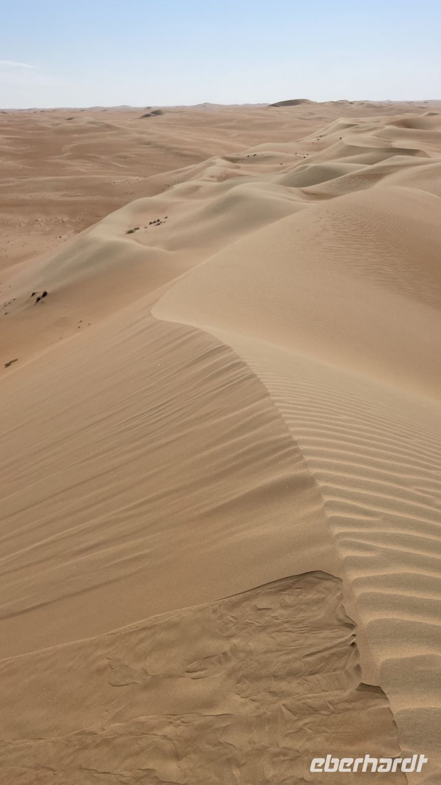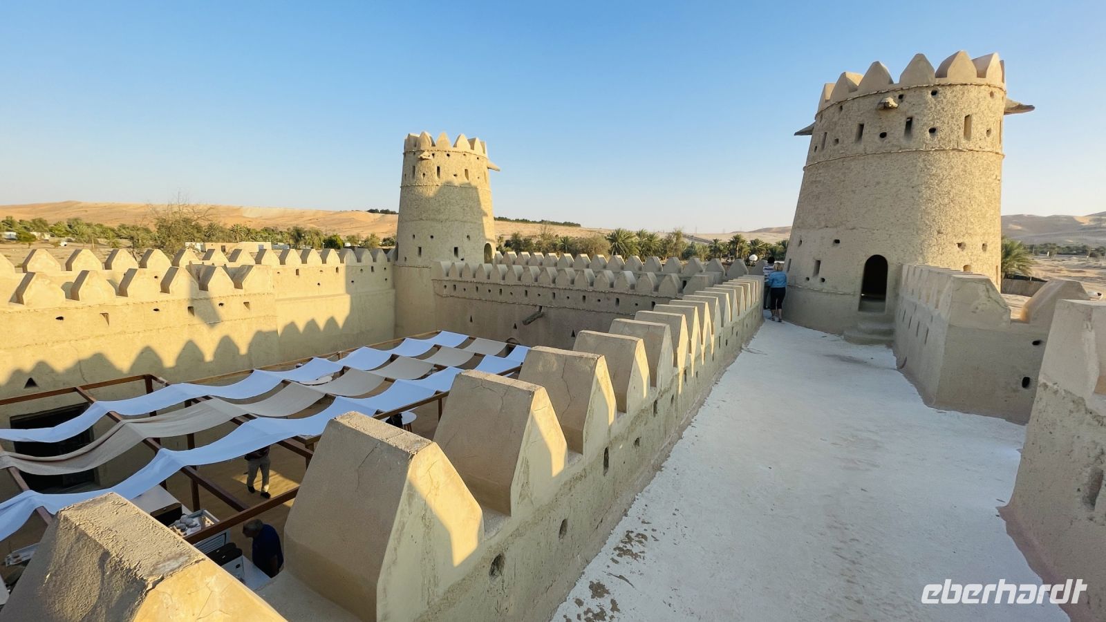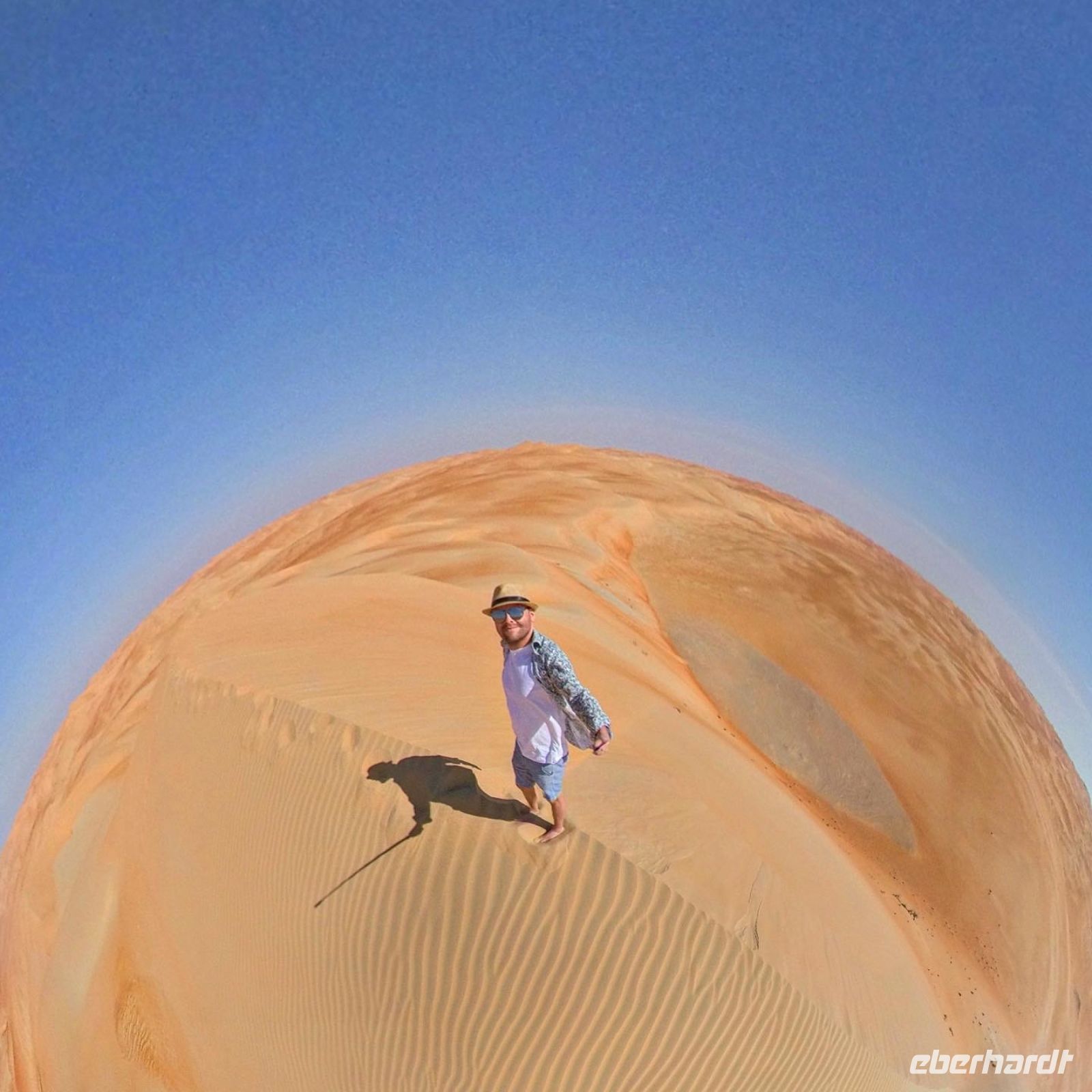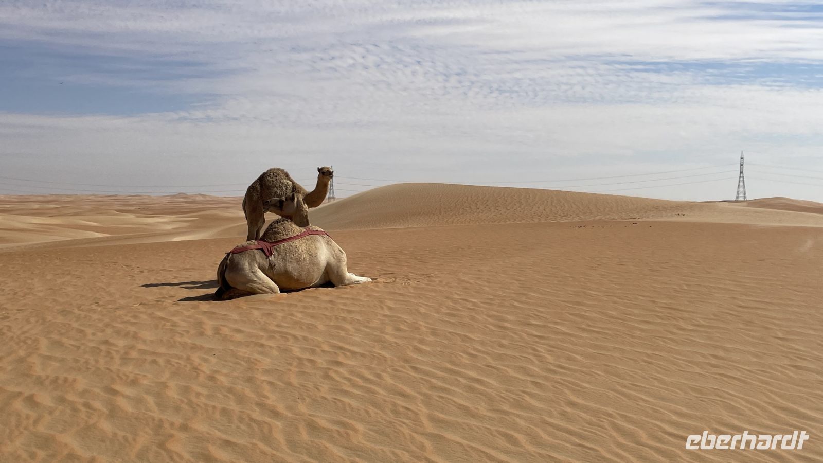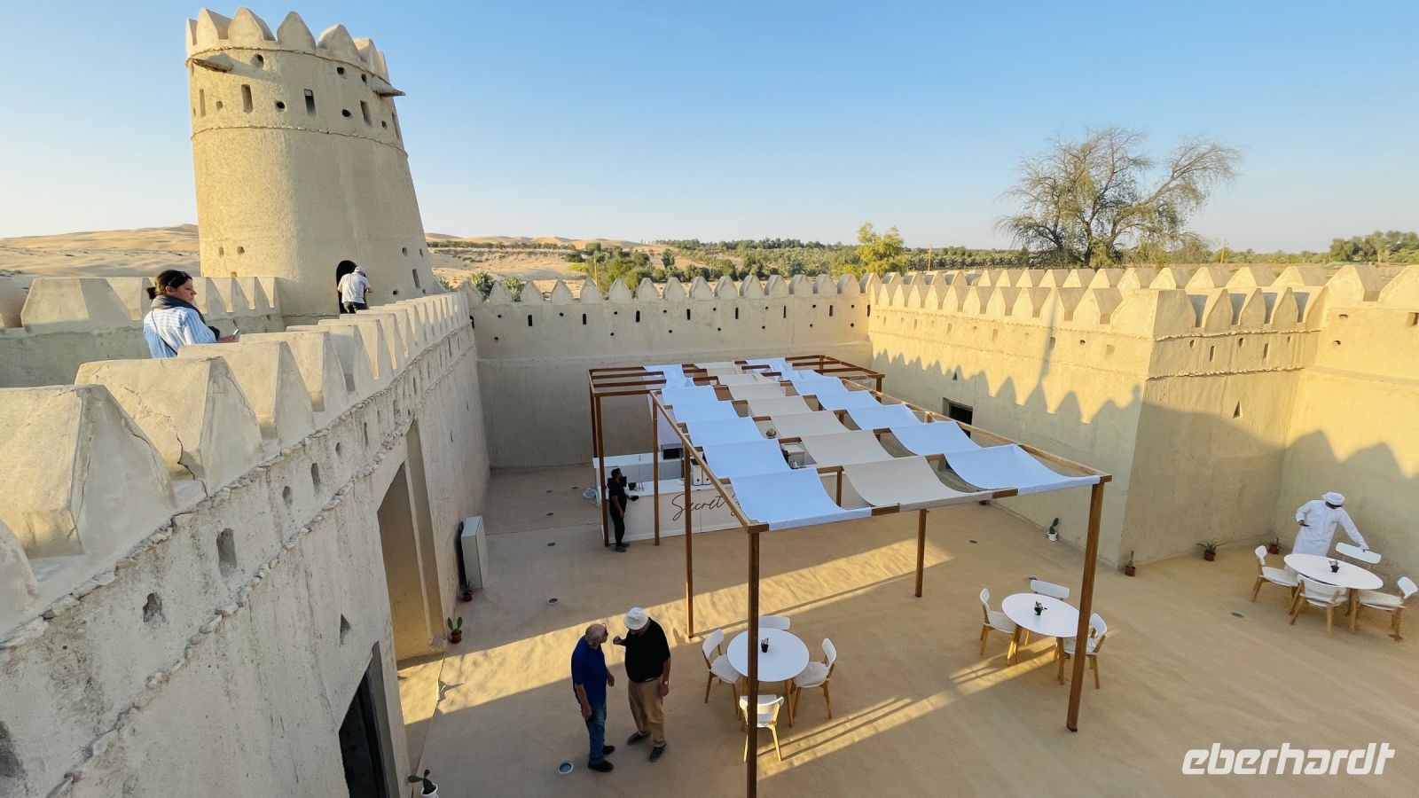 Nach dem Frühstück starten wir mit 3 Jeeps zur Wüstensafari. Wir fahren ca. 1,5 Stunden und legen auf der Hälfte der Strecke einen Besuch im Oldtimer-Museum ein. Dort bestaunen wir von Cadillac bis Trabi die schönsten Autos der letzten 100 Jahre. Danach geht es weiter für ca. 30min. bis wir die Sanddünen erreichen. Nach einem ersten Fotostopp und dem ablassen der Luft aus den Reifen, starten wir nun mit unserer aufregenden Dünenfahrt. Wir erkunden die sandige Landschaft und haben stets genügend Stopps, um die tollen Momente fotografisch festhalten zu können. Nach zwei Stunden erreichen wir eine kleine Oase, die ein pakistanischer Bewohner bewirtschaftet und bewässert. Dort können wir auch unser Mittagessen genießen. Gestärkt von dem Essen geht es weiter zum nächsten Fotostopp – einer Kamelfarm. Die meisten Kamele bewegen sich tagsüber frei in der Wüste und kommen abends zum Essen und Trinken in die Oase bzw. in die Kamelfarm zurück. Danach geht die Entdeckungs-Tour weiter, bis wir schließlich nach einer halben Stunde wieder „festen Boden“ unter den Füßen haben werden. Zum Schluss besuchen wir noch in der Liwa Oasa eine kleine Festungsanlage, die von der Herrscher Familie vor mehreren hundert Jahren zum Schutz der Oasa errichtet wurde. Nach so vielen tollen Eindrücken, fahren wir ca. 2 Stunden zurück in unser Hotel.