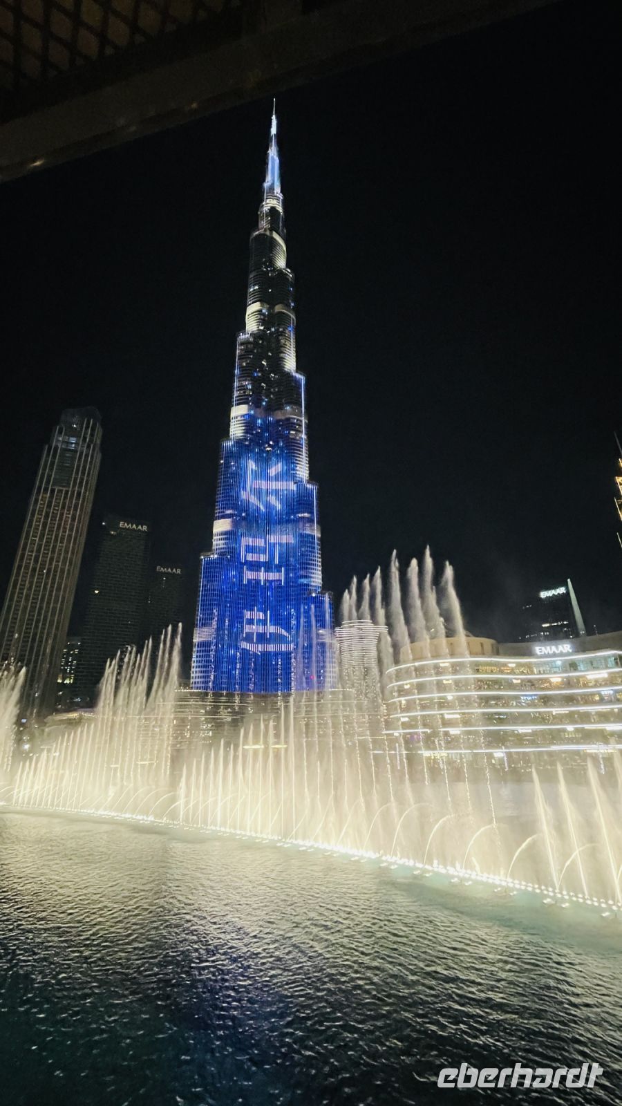 Und schon steht unser letzter Tag an. Doch nicht ohne ein weiteres Highlight. Wir fahren mit gepackten Koffern ca. 2 Stunden nach Dubai und besuchen als erstes die Dubai Marina mit den imposanten Wolkenkratzern und den schönen Yachten. Danach geht es weiter zur Palmeninsel, wo wir u.a. das Atlantis Hotel sehen werden. Anschließend besuchen wir die „Mall of the Emirates“, wo wir nicht nur die weltberühmte Skihalle sehen, sondern auch zu Mittag essen können. Gegen Nachmittag fahren wir weiter vorbei am „Burj Al Arab Hotel“ zur „Dubai Mall“. Dort bestaunen wir u.a. das Aquarium, den Wasserfall und schließlich die erste Wasserfontänen-Show ab 18.00Uhr. Gegen 18:30Uhr fahren wir den „Burj Khalifa“ hinauf, um dort die atemberaubende Aussicht über Downtown Dubai zu genießen. Zum Abschluss besuchen wir in einem Restaurant mit tollen Blick auf die Fontänen Show und dem Burj Khalifa. Danach verabschieden wir uns von Reiseleiter Peter, der zwei Reisegäste nach Abu Dhabi bringt bevor wir schlussendlich uns auf dem Weg zum Flughafen machen. Unterwegs bringen wir noch 2 weitere Reisegäste in ihr Verlängerungshotel. Danach checken wir gemeinsam ein und nun heißt es Abschied nehmen.