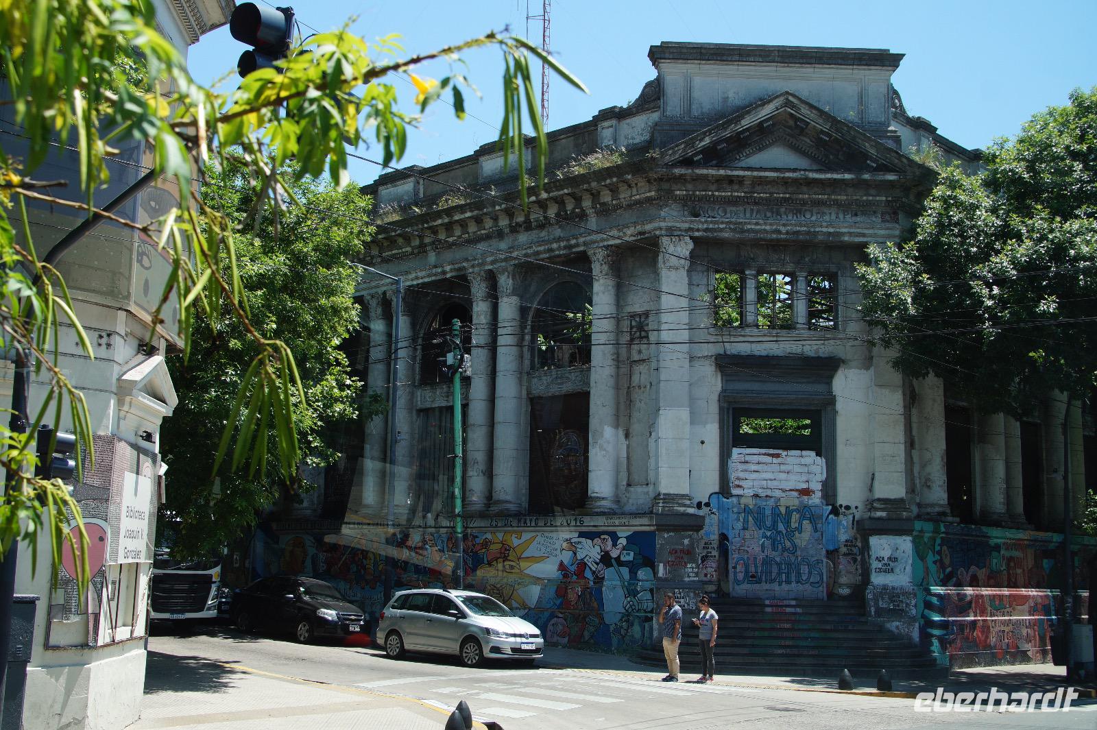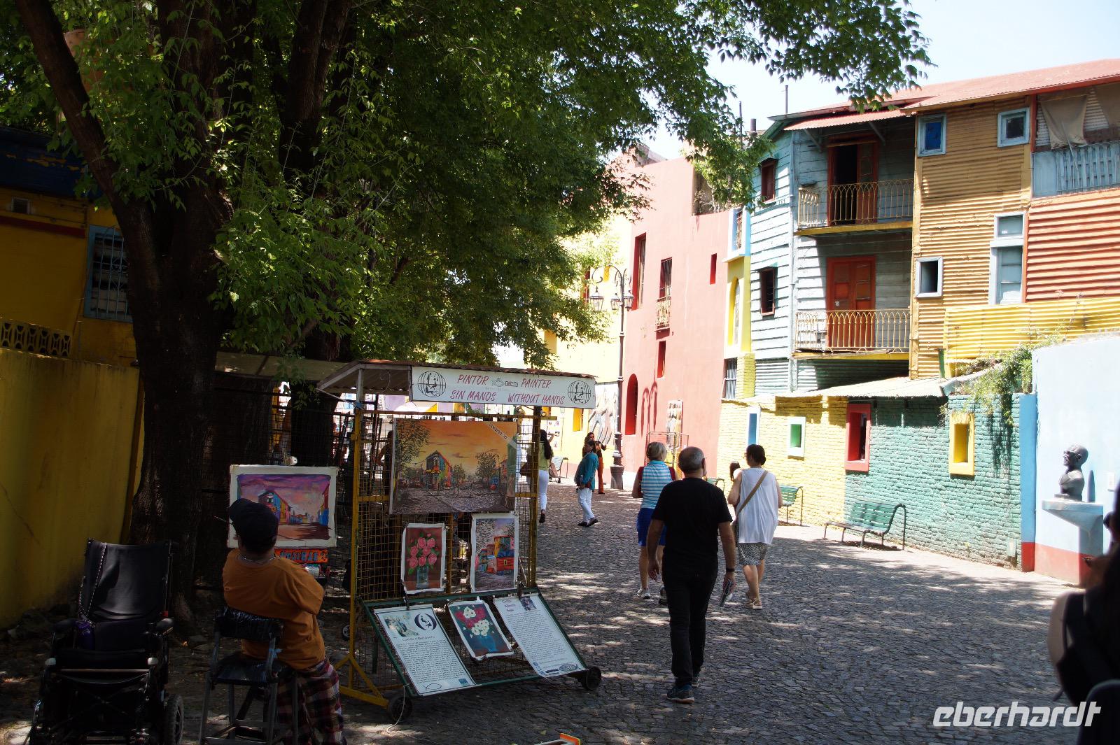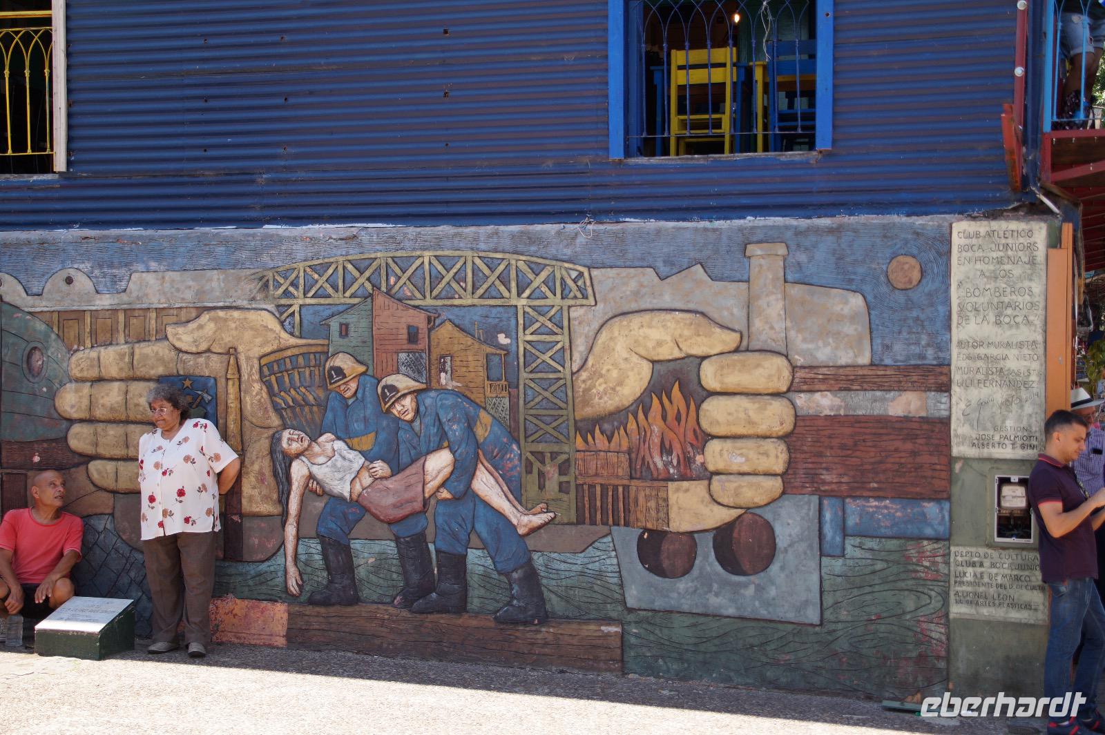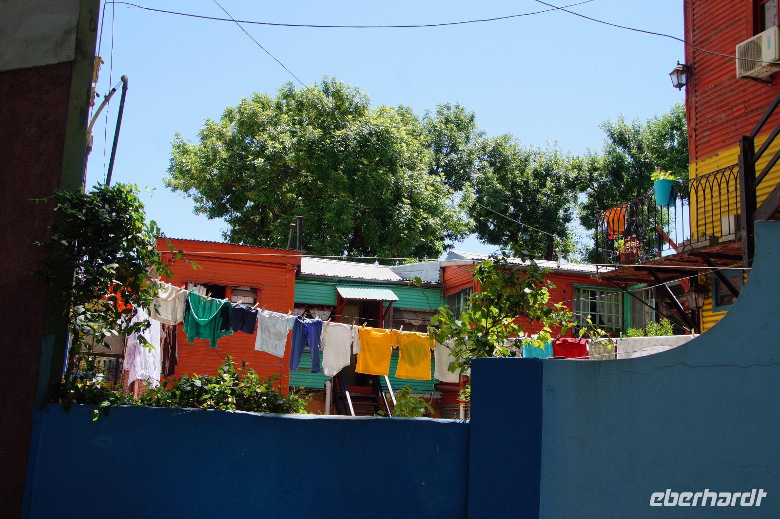 Zuerst stand La Boca auf dem Programm, dem wir uns über den Stadtteil San Telmo näherten. La Boca ist das alte Hafenviertel - längst liegt der Hafen ganz woanders - und die Werftarbeiter, die hier ihre Holz- und Wellblechhütten bauten - benutzten Farbreste aus den Docks, um ihre Häuser zu verschönern, die nun in allen Farben leuchteten. Besonders rund um den Caminito wird dieses Erbe gepflegt und touristisch genutzt. Natürlich passierten wir auf dem Weg dorthin auch La Bonbonera, die Bonbonschachtel, das Stadion de CABJ (Club Atlético Boca Juniors), eines der erfolgreichsten Fußballclubs der Fußballnation Argentinien, lange Heimat der „Hand Gottes“, wie Maradona hier genannt wird (nein, Lionel Messi spielt quasi schon immer für Barcelona in Spanien).