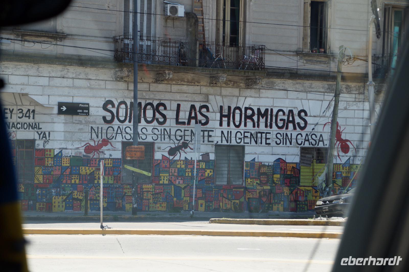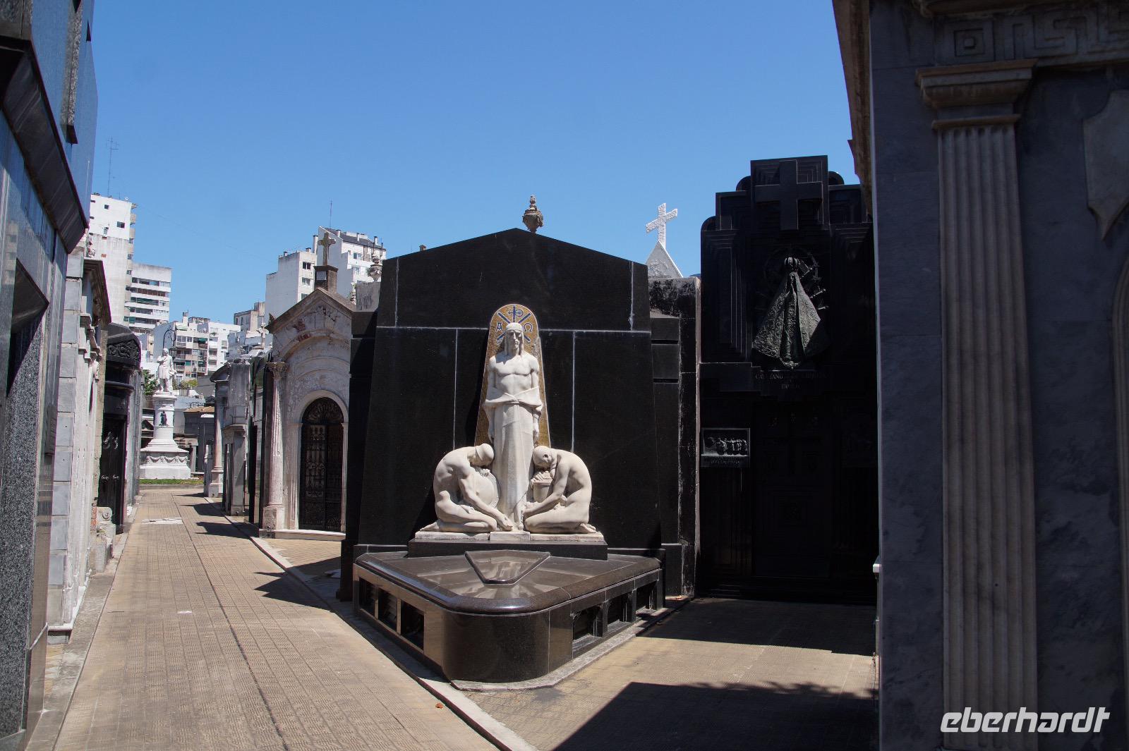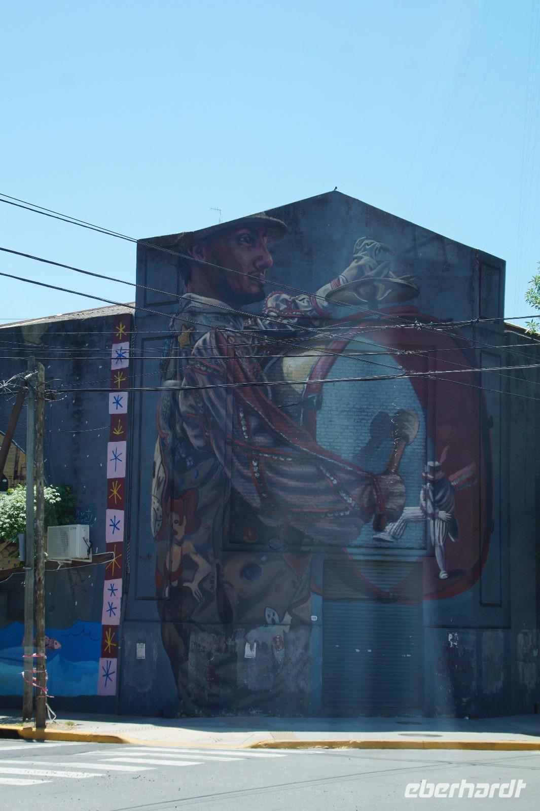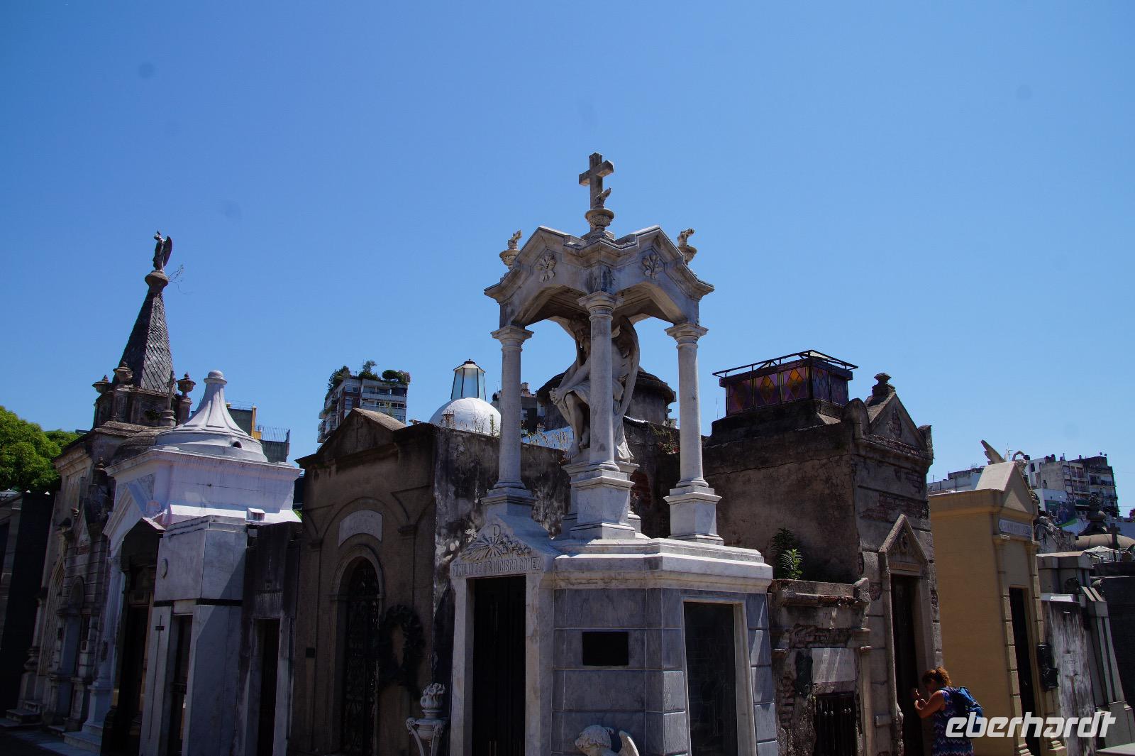 Der Weg nach Norden führte uns, nachdem wir die Ruinen vergangener wirtschaftlicher Größe und politische Murales (große Wandgemälde) passiert hatten, über das luxuriöse Neubauviertel Puerto Madero nach Palermo und Recoleta, mit seinen vielen Parks. Hierher hatte es die Reichen verschlagen, die nach einer Typhus-Epidemie das nah am Arbeiterviertel gelegene San Telmo verlassen hatten. In Recoleta befindet sich auch Argentiniens Promi-Friedhof, wo nur die Reichen und Schönen und die schön Reichen in Luxusgruften bestattet sind, unter anderem Argentiniens Musical-Export Evita, der Andrew Lloyd Webber die Worte „Don't cry for me Argentina" in den Mund legte.