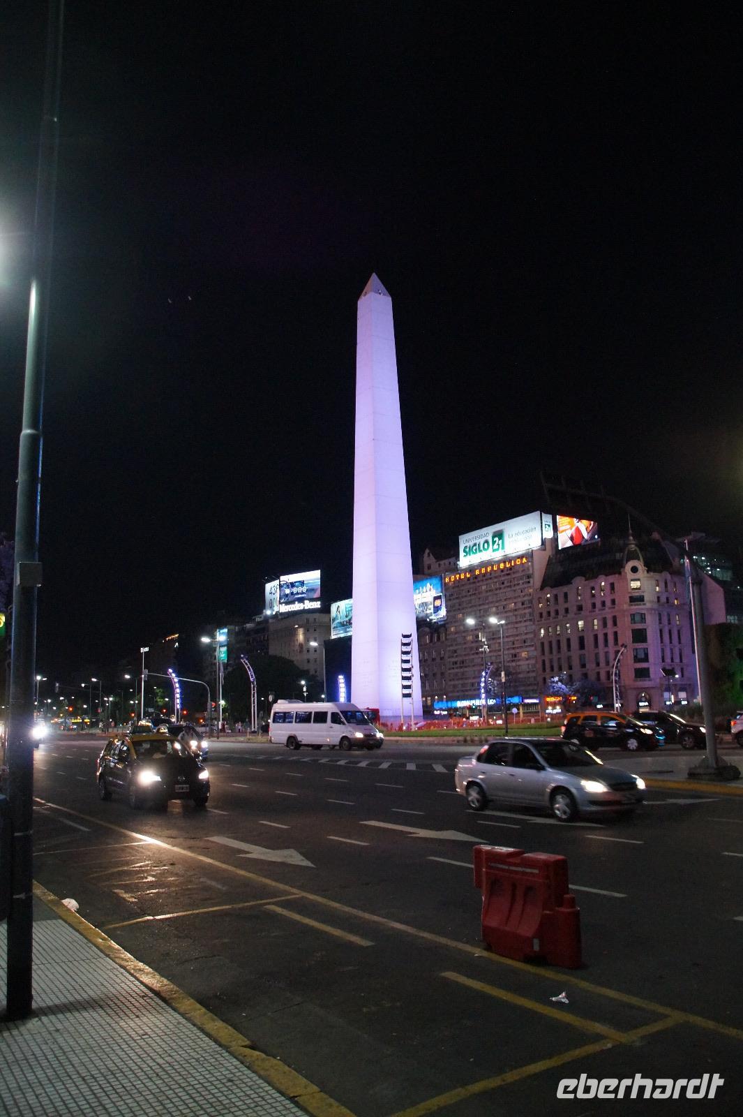 Nach dem Essen machten wir noch den kleinen Schlenker am Obelisken vorbei, der zu dieser Zeit in einem kaum merklichen violett angestrahlt war. Dann ging es in die Koje.