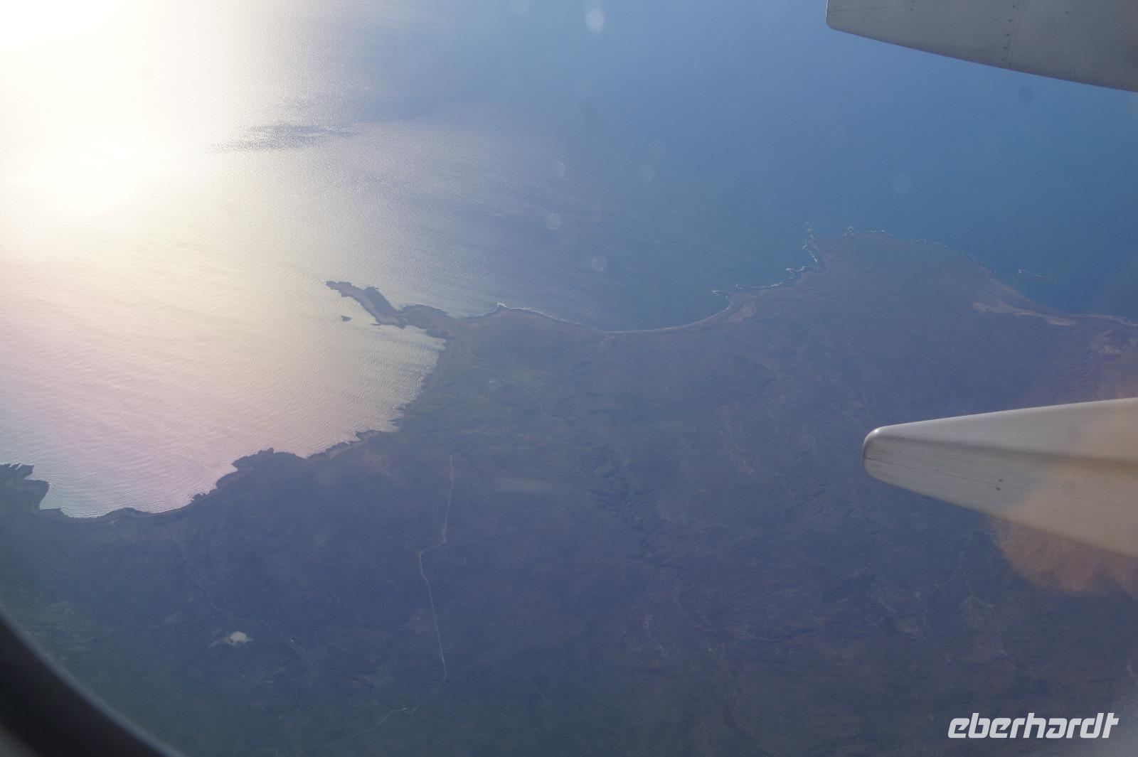 Nachdem wir abgelegt hatten, zeigte uns einer der beiden Bootsführer auf einer Seekarte zuerst einmal unsere Route. Zunächst ging es entlang des auf einer Halbinsel liegenden Flughafens zu einer Brutkolonie der Kormorane. Ich fragte unseren Guide, ob hier auch Guano abgebaut würde, was dieser aber verneinte, woanders ja, aber hier nicht.