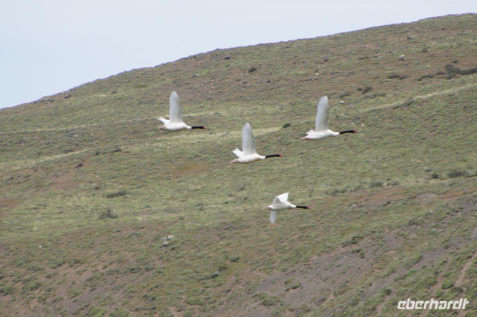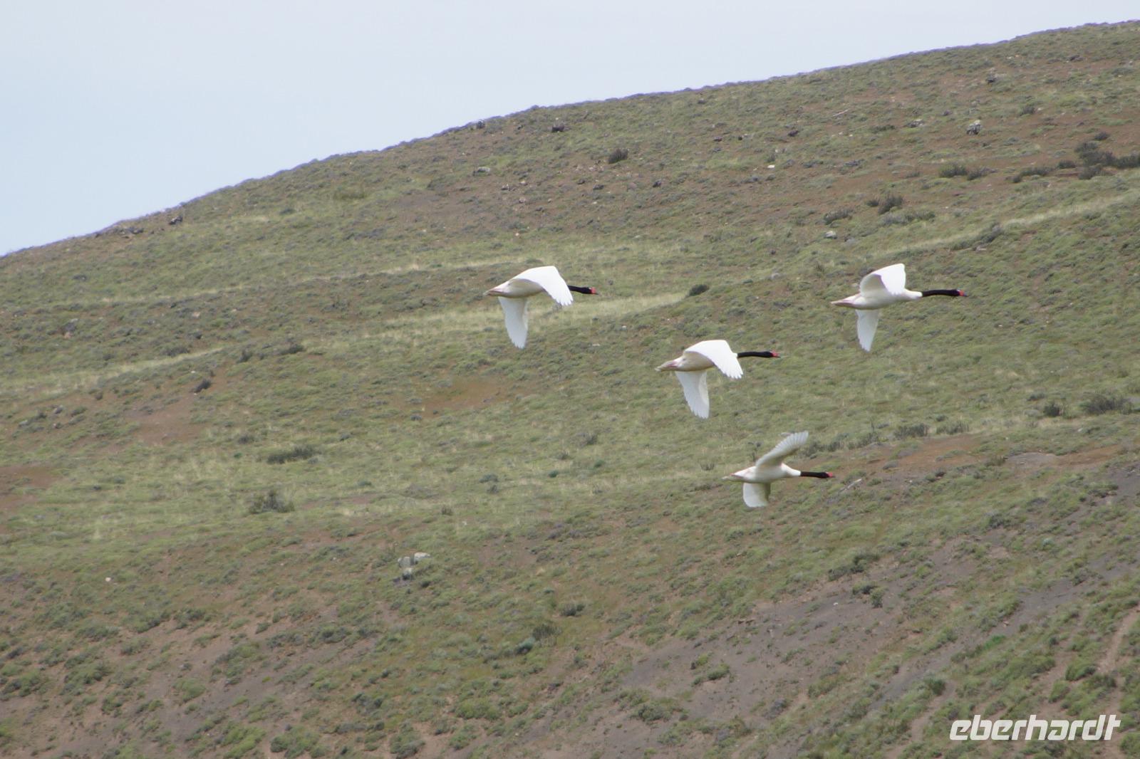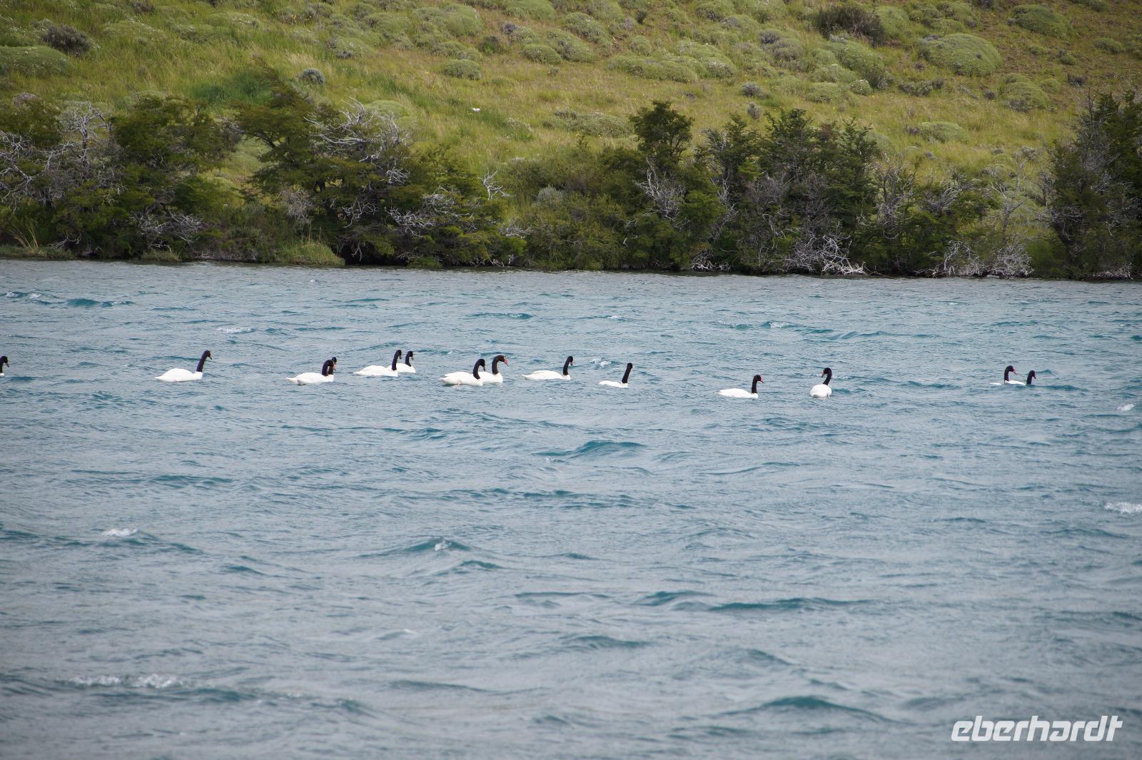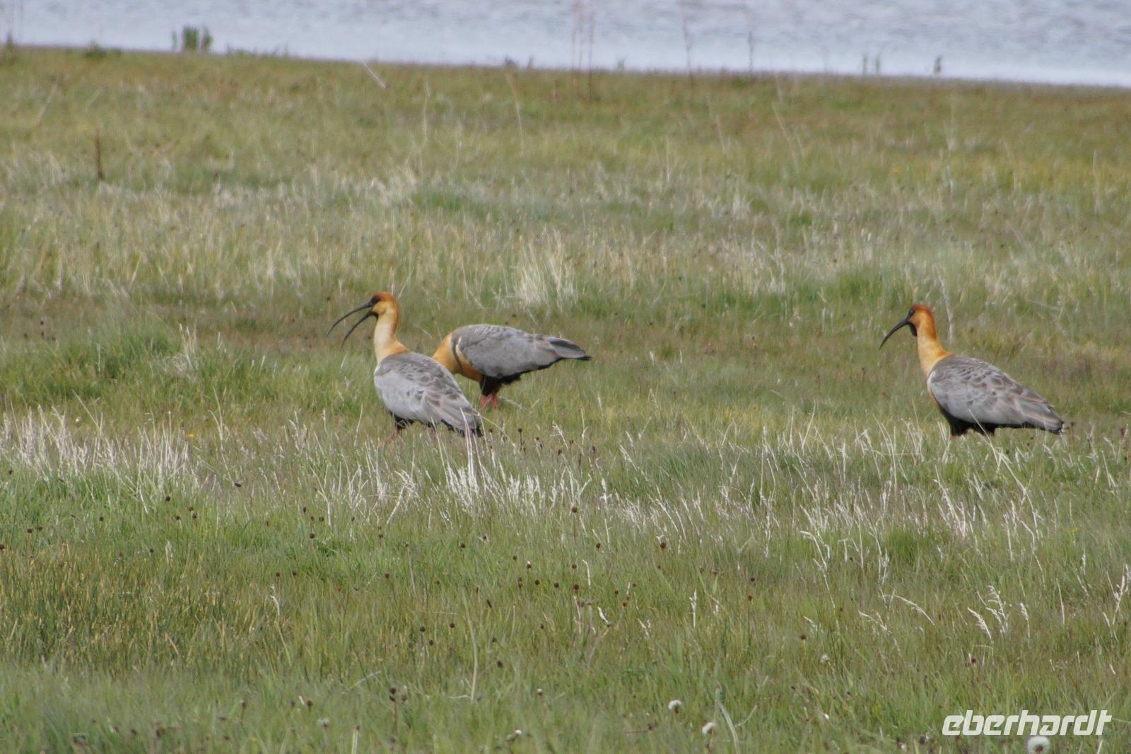 Kurz nach unserer Abfahrt vom Flughafen begegnen wir unseren ersten Ñandús und Guanacos; irgendwo in der Steppe halten wir auch mal an, um von einer kleinen Guanaco-Herde Fotos zu machen. Wir sehen den Lago Argentino und den Lago Viedma.