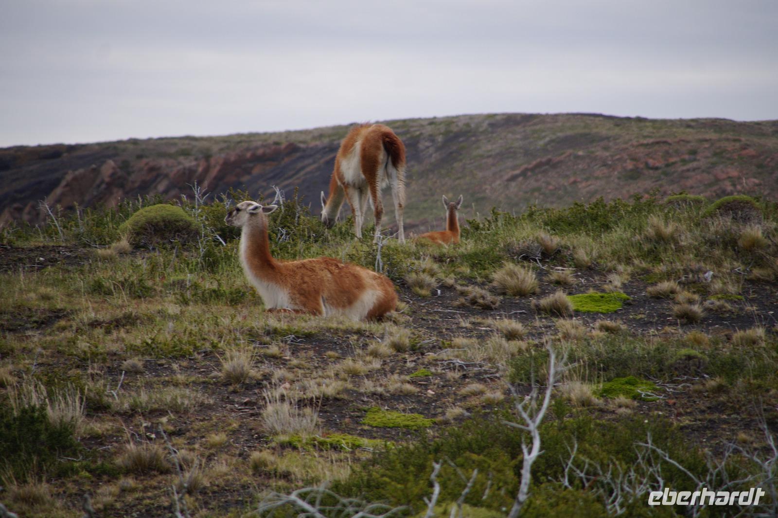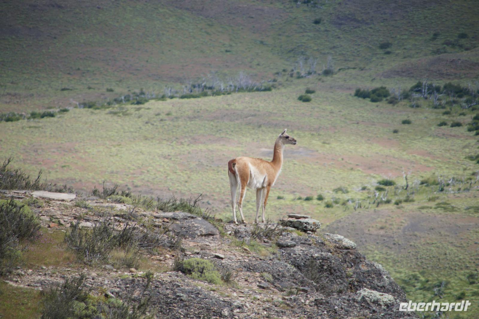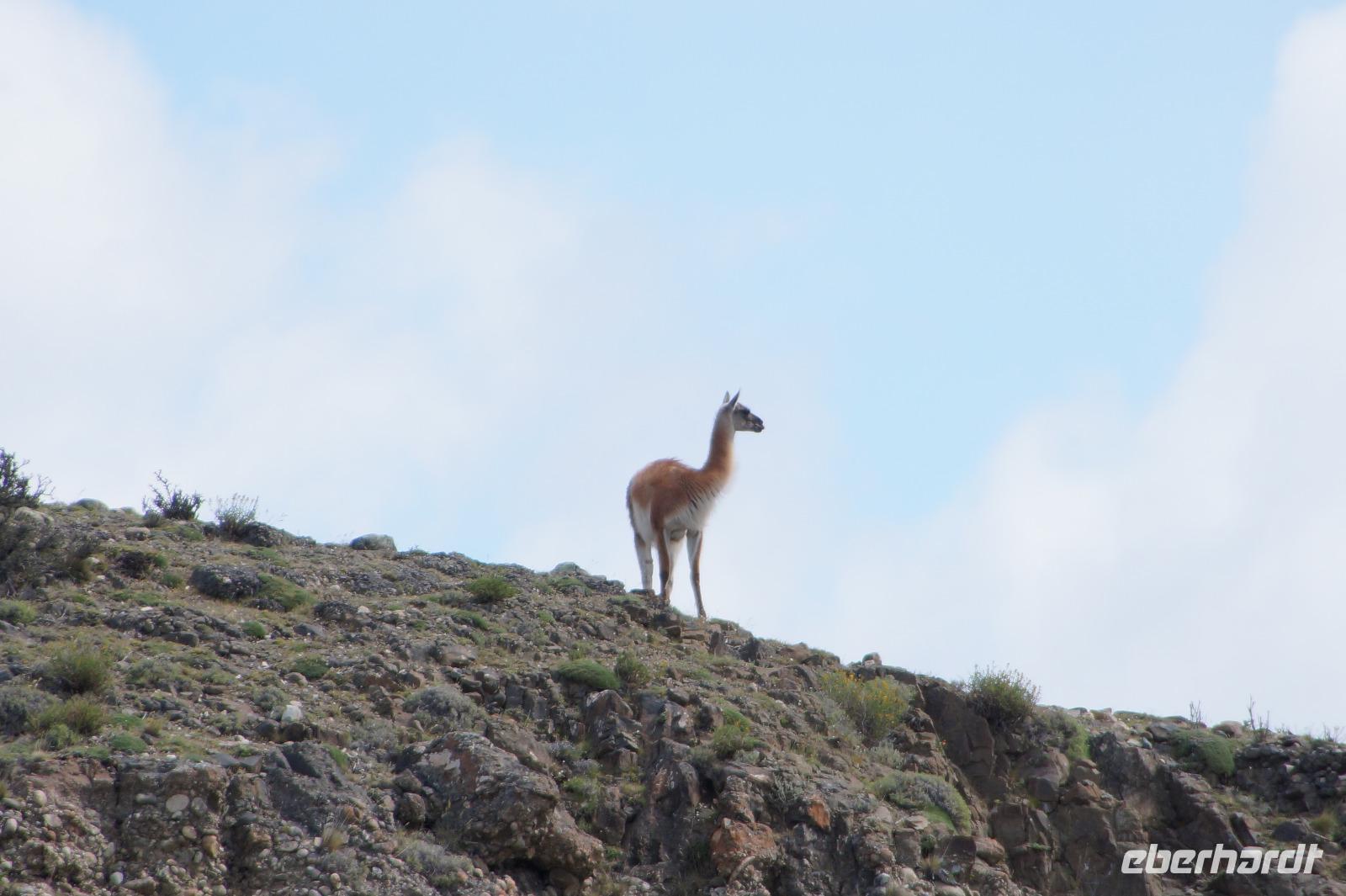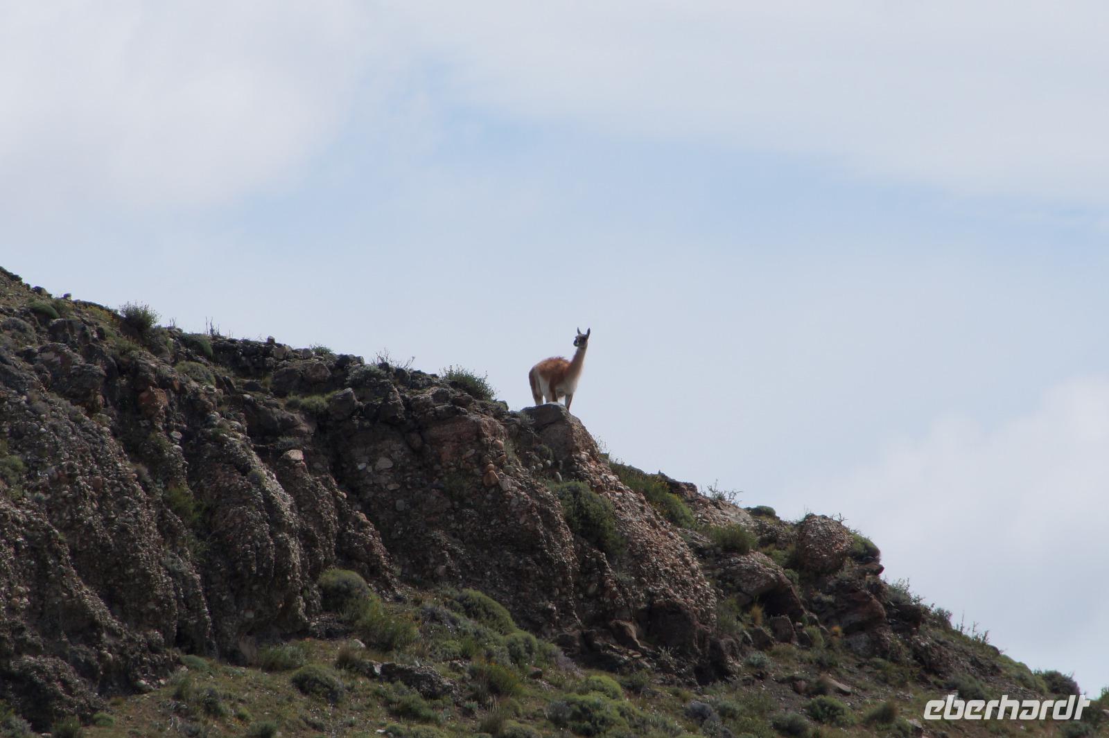 Im weiteren Verlauf unserer Wanderung konnten wir uns davon überzeugen, wie wenig Scheu die Guanacos - mindestens hier im Nationalpark - vor uns Menschen zeigen, aber auch über die Anwesenheit von Pumas. Wir sahen zwar in der Tat keinen einzigen der amerikanischen Silberlöwen - was mancher Schade fand, manch anderer begrüßte - aber überall entlang des Zauns an der Nationalparkgrenze fanden wir in Form von Guanaco-Knochen die Überreste seiner Mahlzeiten.