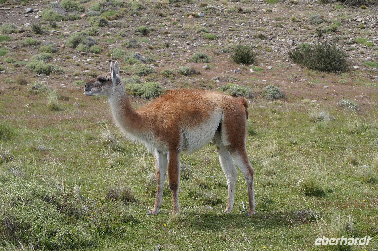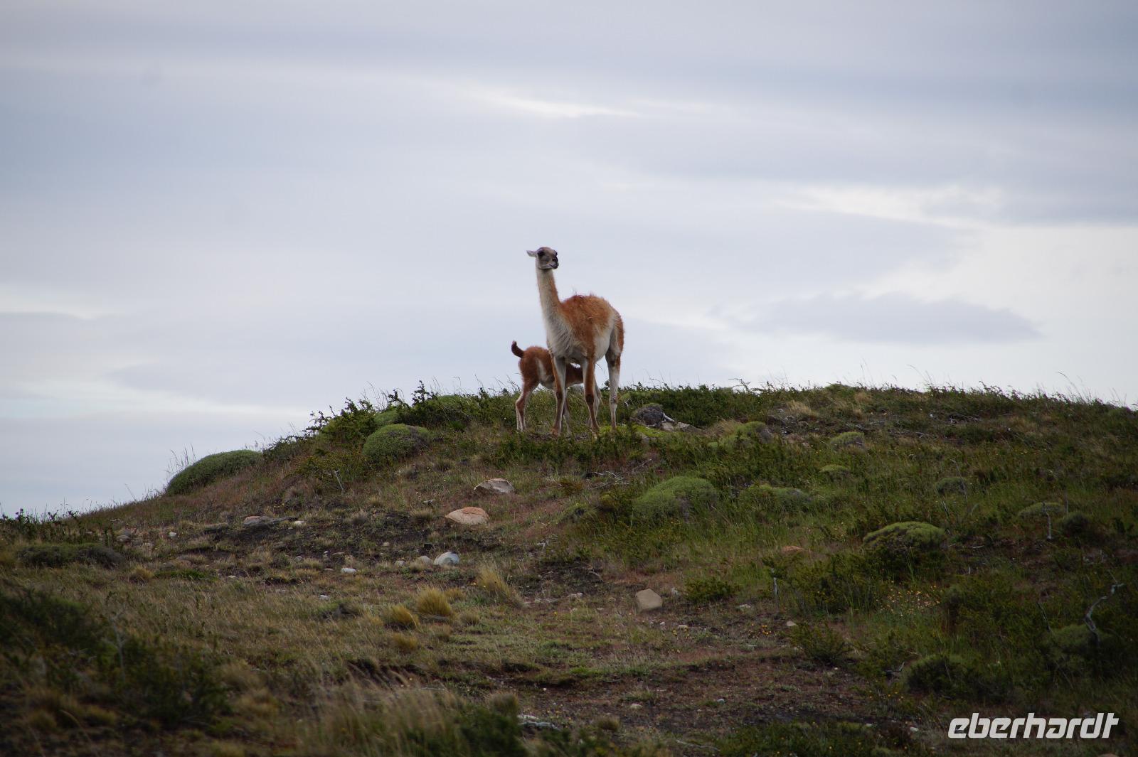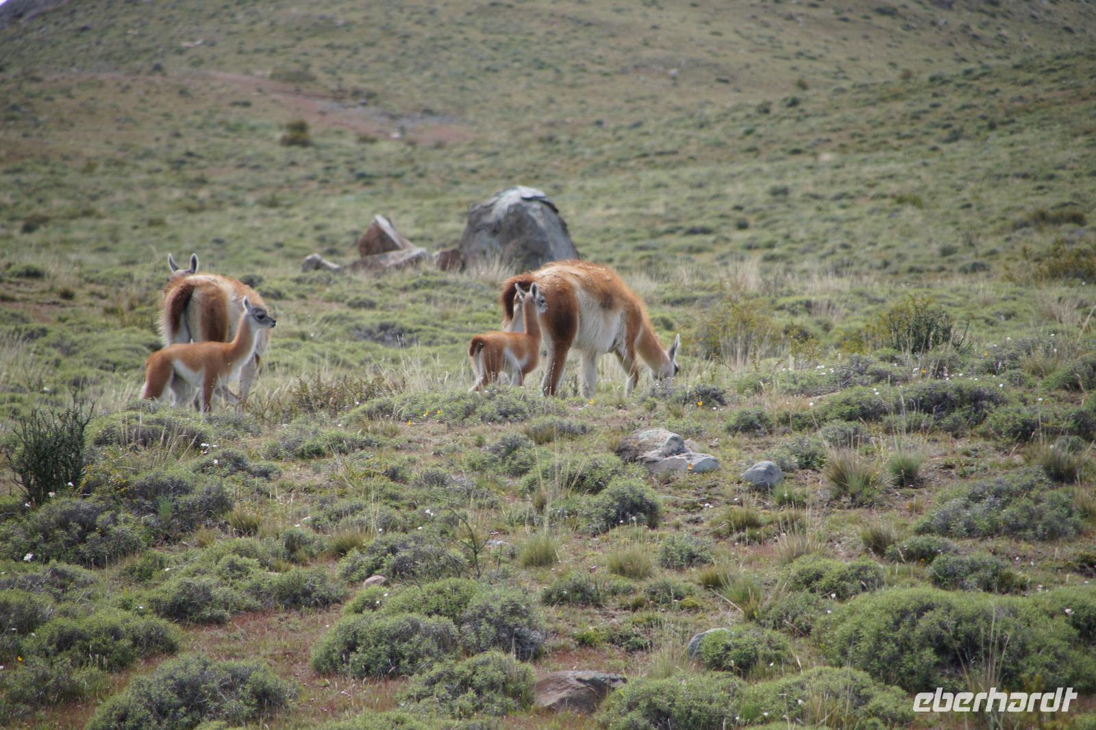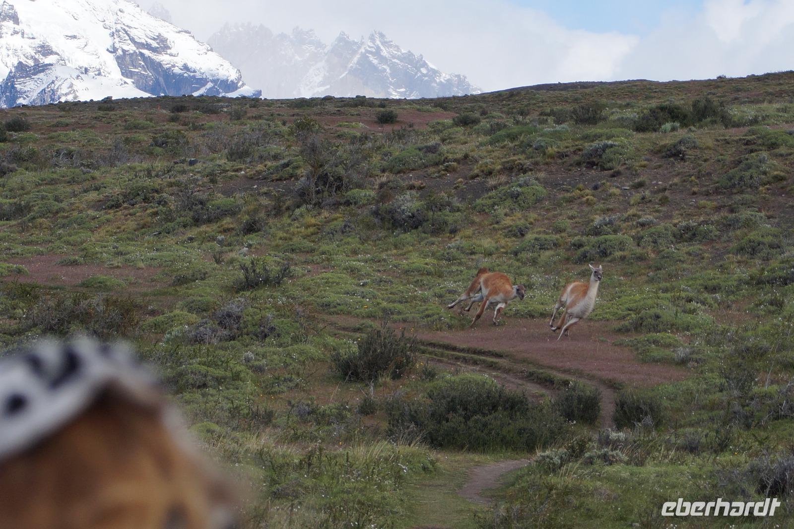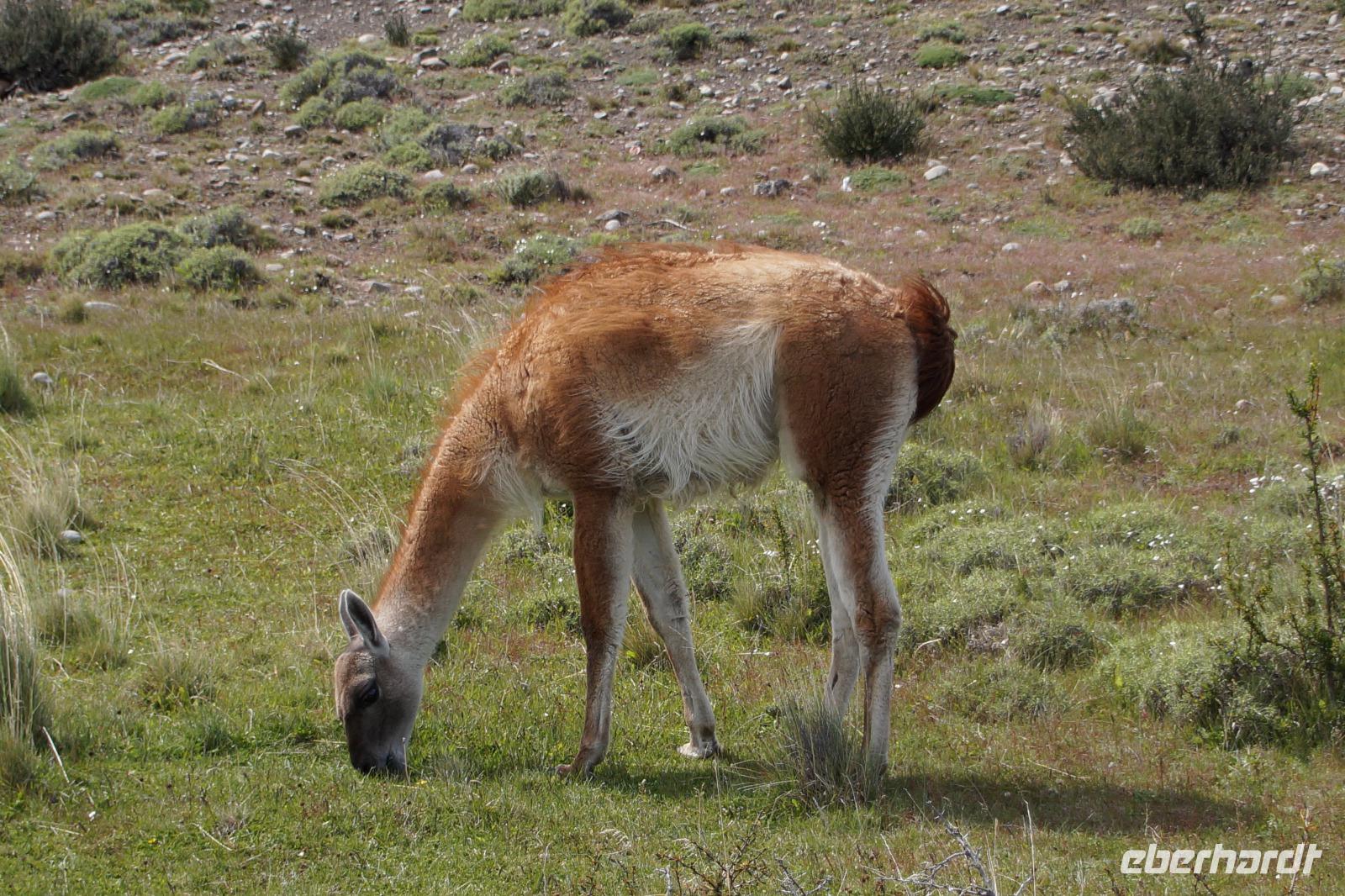 Im weiteren Verlauf unserer Wanderung konnten wir uns davon überzeugen, wie wenig Scheu die Guanacos - mindestens hier im Nationalpark - vor uns Menschen zeigen, aber auch über die Anwesenheit von Pumas. Wir sahen zwar in der Tat keinen einzigen der amerikanischen Silberlöwen - was mancher Schade fand, manch anderer begrüßte - aber überall entlang des Zauns an der Nationalparkgrenze fanden wir in Form von Guanaco-Knochen die Überreste seiner Mahlzeiten.
