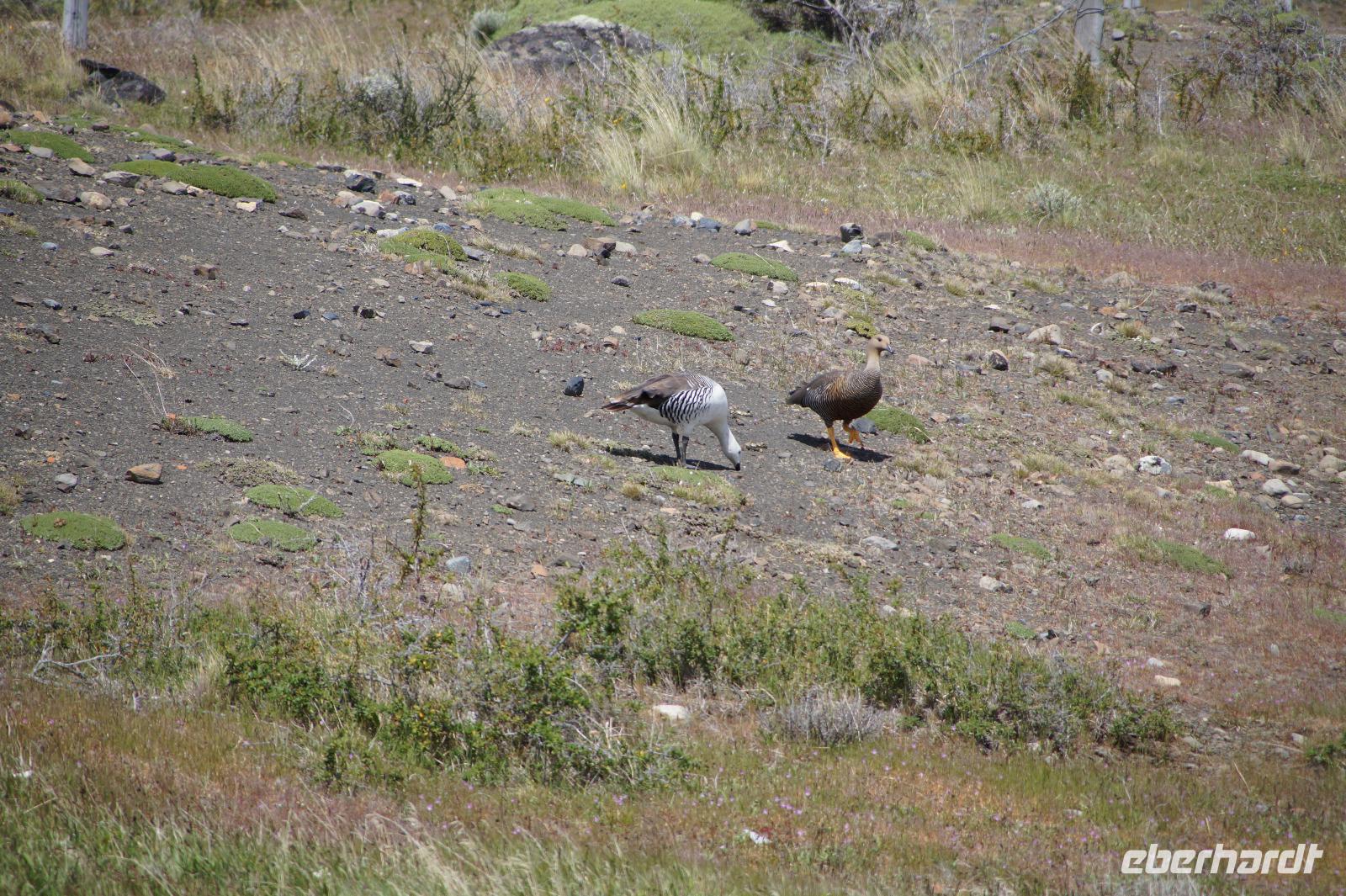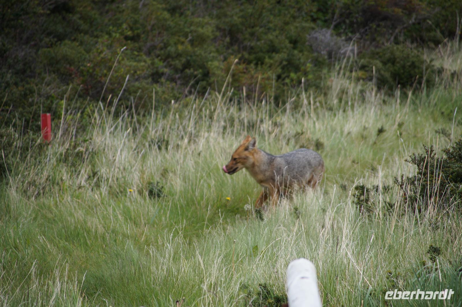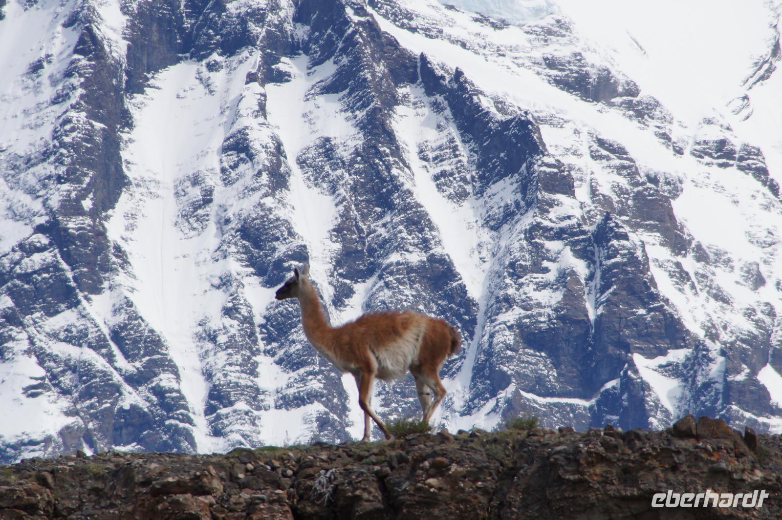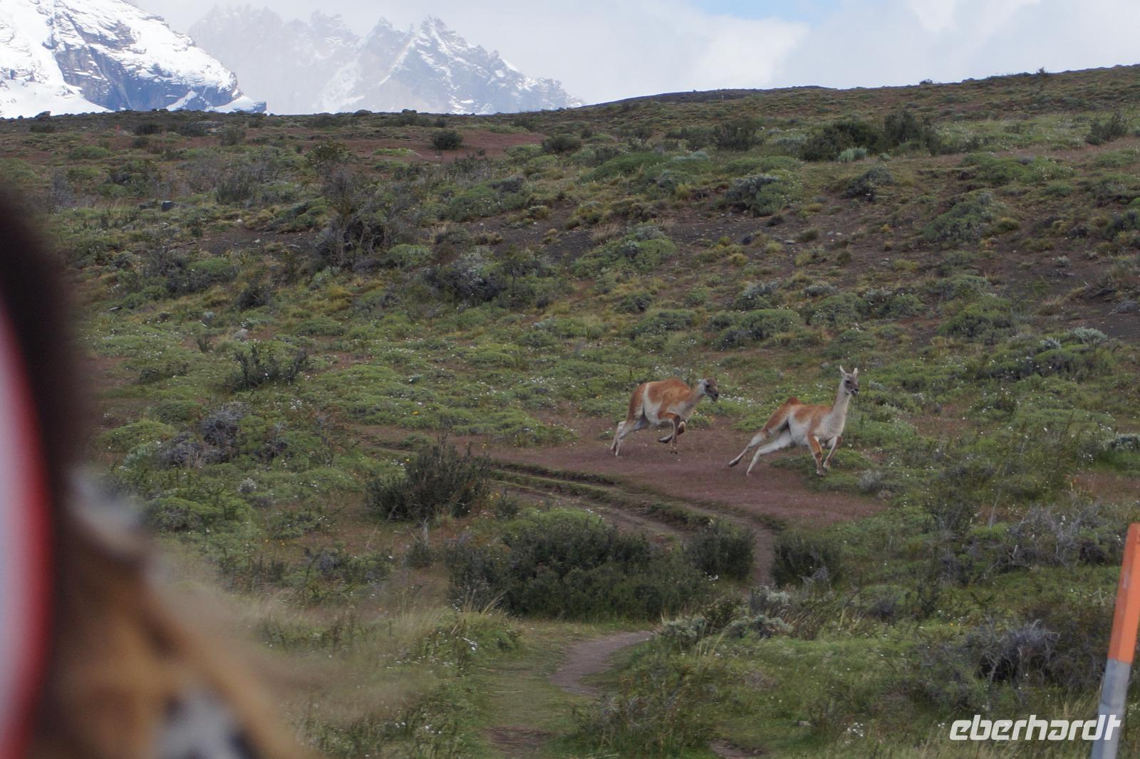 Im weiteren Verlauf unserer Wanderung konnten wir uns davon überzeugen, wie wenig Scheu die Guanacos - mindestens hier im Nationalpark - vor uns Menschen zeigen, aber auch über die Anwesenheit von Pumas. Wir sahen zwar in der Tat keinen einzigen der amerikanischen Silberlöwen - was mancher Schade fand, manch anderer begrüßte - aber überall entlang des Zauns an der Nationalparkgrenze fanden wir in Form von Guanaco-Knochen die Überreste seiner Mahlzeiten.