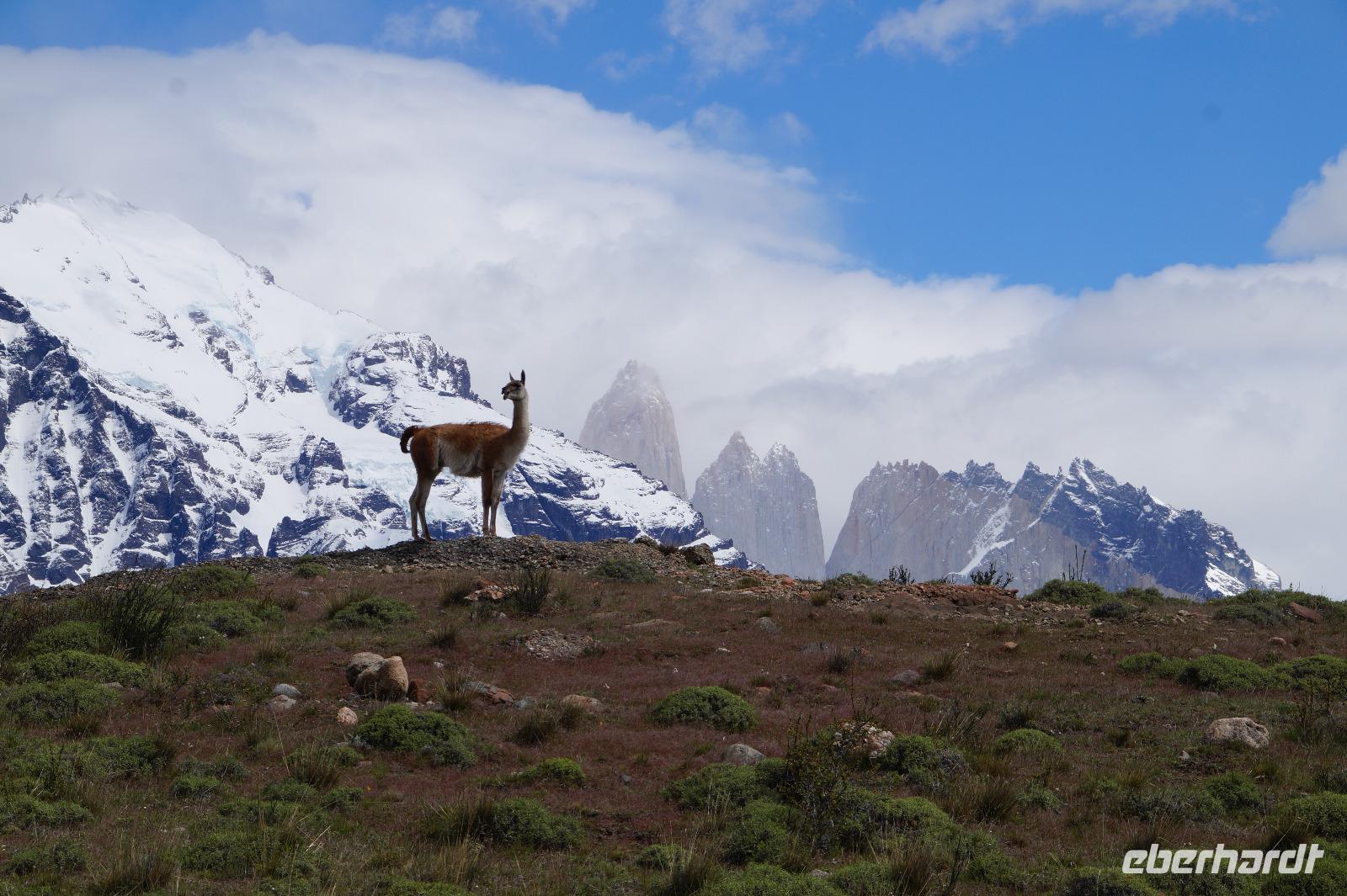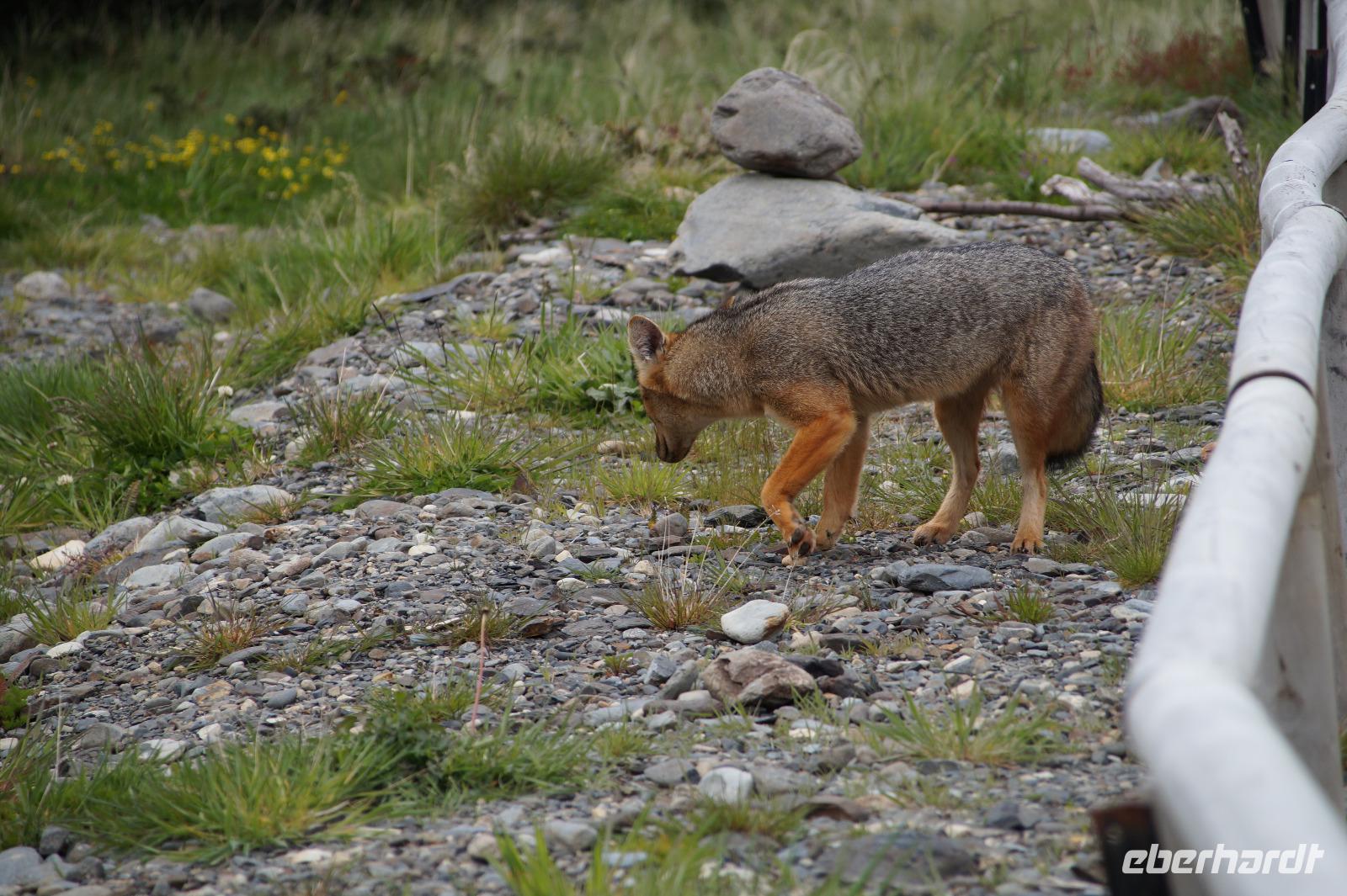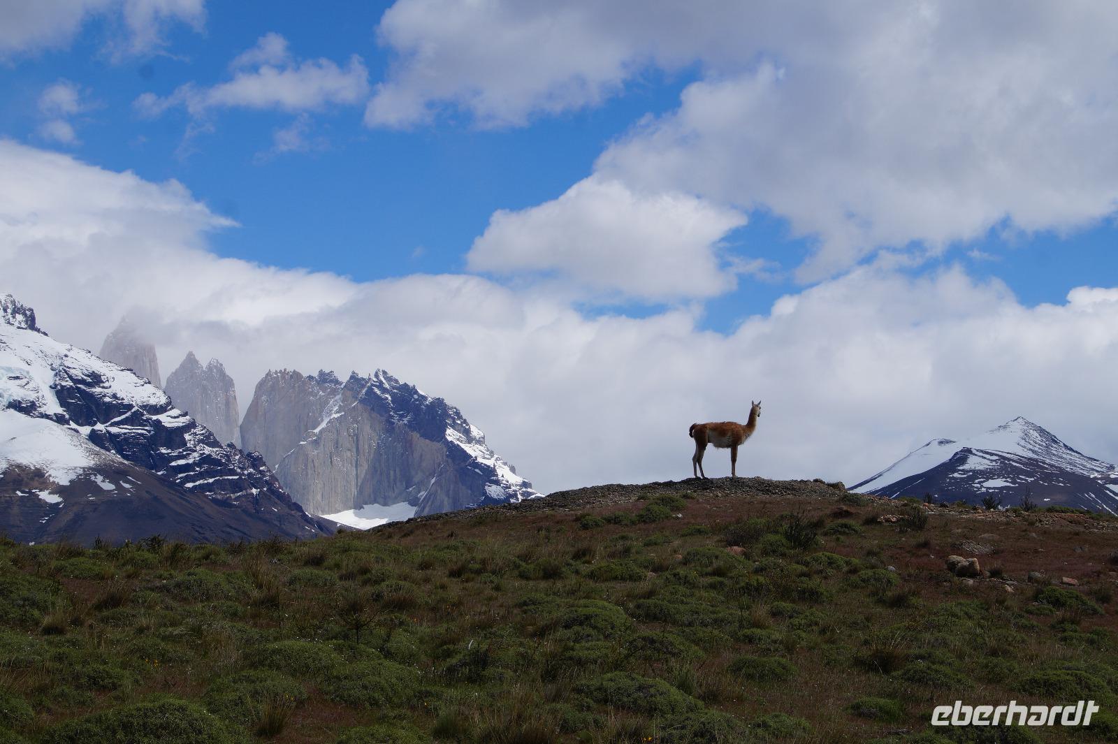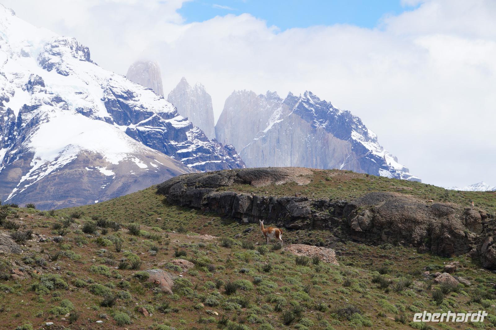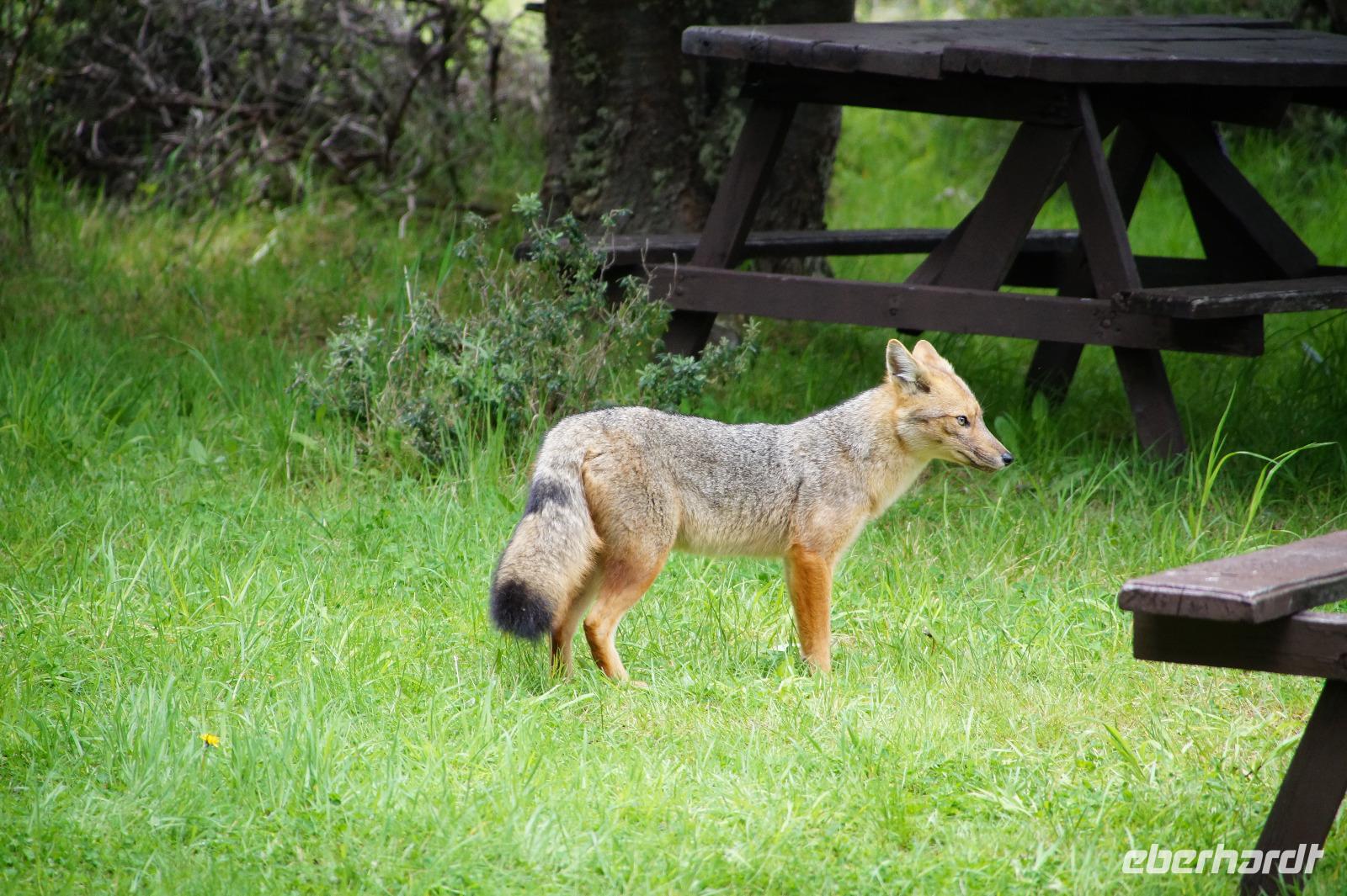 Im weiteren Verlauf unserer Wanderung konnten wir uns davon überzeugen, wie wenig Scheu die Guanacos - mindestens hier im Nationalpark - vor uns Menschen zeigen, aber auch über die Anwesenheit von Pumas. Wir sahen zwar in der Tat keinen einzigen der amerikanischen Silberlöwen - was mancher Schade fand, manch anderer begrüßte - aber überall entlang des Zauns an der Nationalparkgrenze fanden wir in Form von Guanaco-Knochen die Überreste seiner Mahlzeiten.