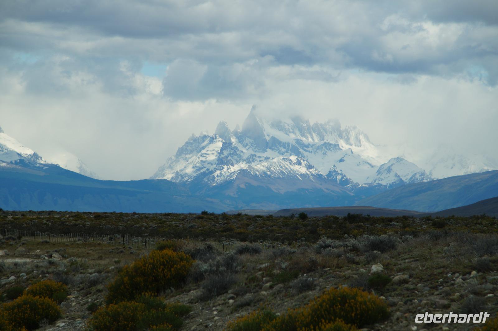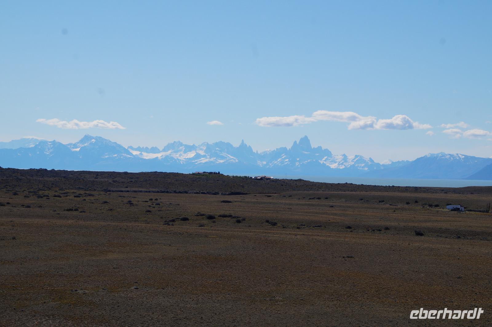 In El Calafate begrüßen uns Eric und Esteban und bald sind wir auf der Fahrt nach El Chaltén, heute ein wachsendes Dorf, das vom Trekkingtourismus lebt, 1985 aber gegründet, um den argentinischen Anspruch auf die Region zu untermauern, da die Grenzzone zwischen Chile und Argentinien im innerpatagonischen Eisfeld nicht genau festgelegt ist.